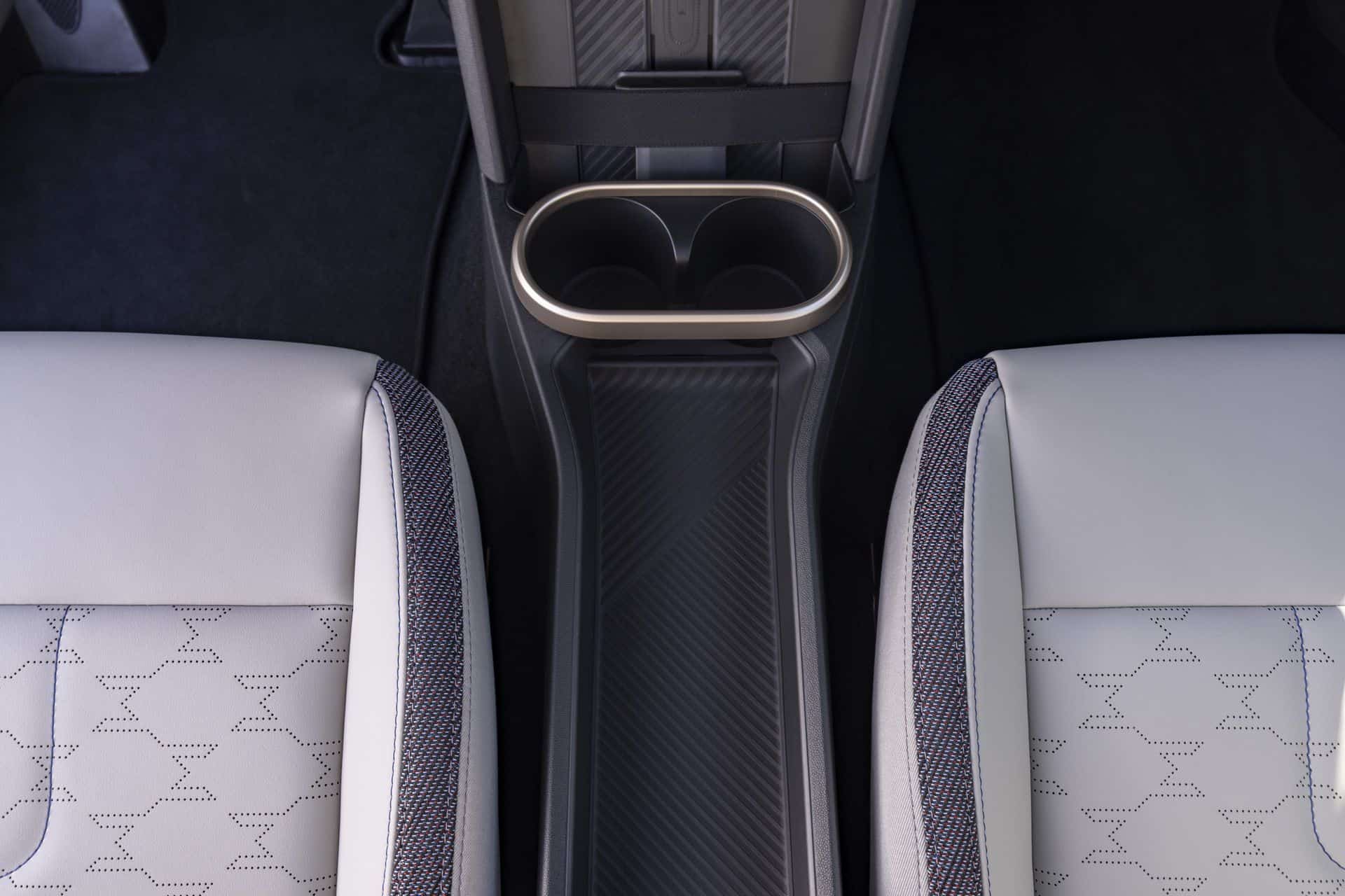 Stepping inside, the Classic Trim boasts a cockpit adorned with black-blue surfaces crafted from two-tone knitted material. Staying with the vegan-only philosophy, Vescin seats available in grey or black, creating a striking contrast within the interior. Nightshade Blue and beige Vescin upholstery are available as part of the Favoured Style. Some more interesting two-tone choices come with the Classic Style. Grey/Blue and Beige/Blue Vescin and cloth upholstery round out the options. Accentuating the new seat design are perforated houndstooth patterns on the backrest and seat, along with blue accent stitching and patterned fabric inserts on the sides.