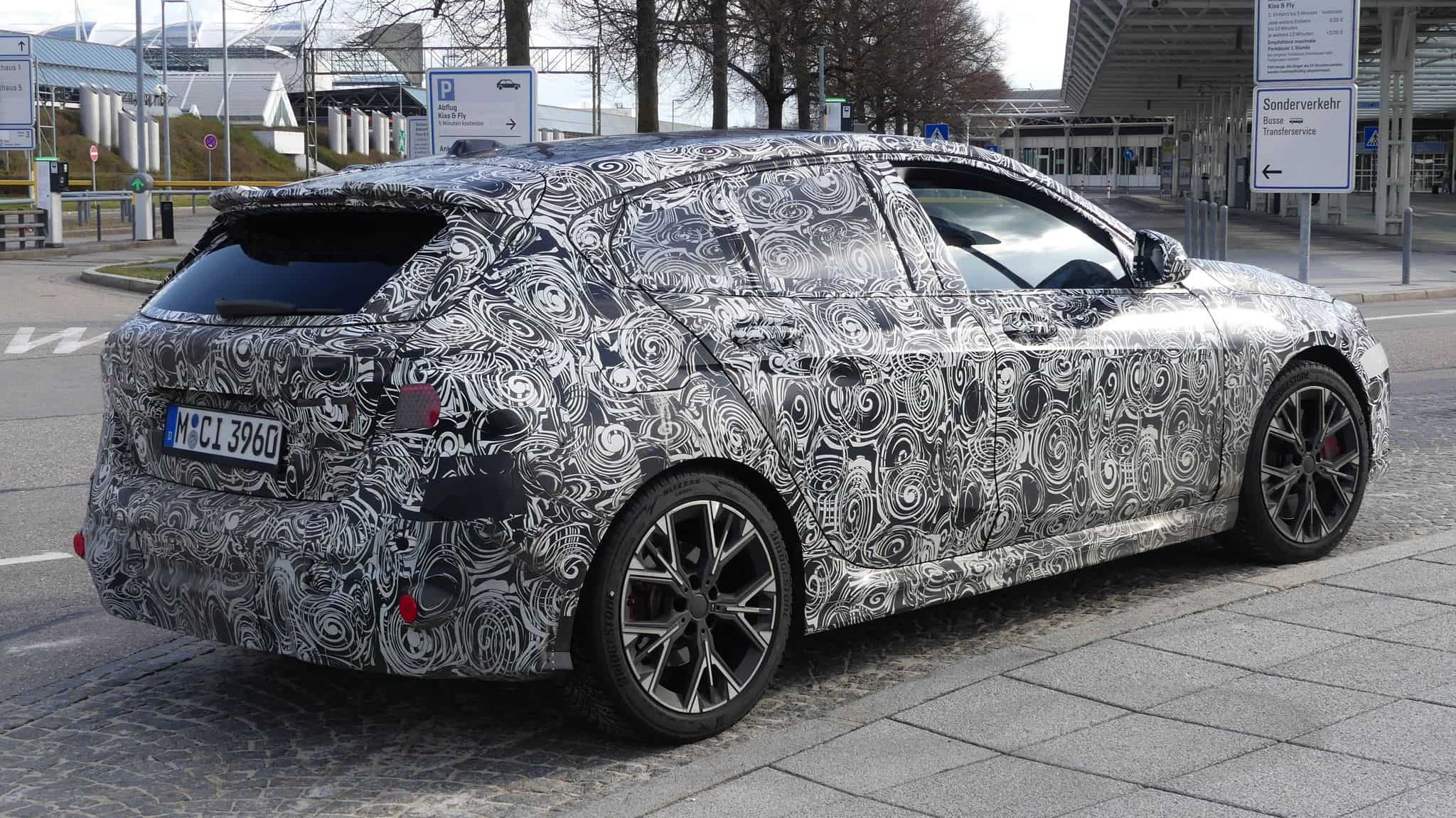The red brake calipers hint we’re looking at a 1er with the M Sport Package but you can never be too sure with prototypes. It doesn’t seem to be the M135 (yes, without the “i”) because the hot hatch has already been spied with a quad exhaust system and M-specific mirrors. One detail we missed pointing out in previous encounters is the large radar sensor right in the center of the kidney grille. On the outgoing 1 Series (F40), it’s not as obvious since it sits lower on the air intake.