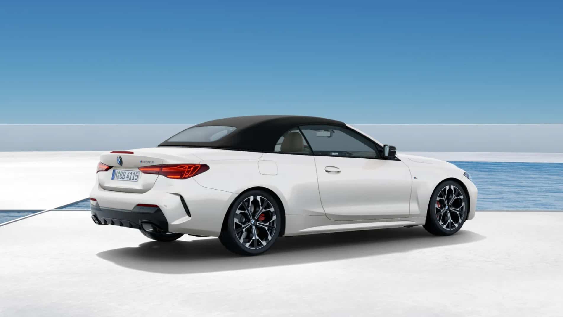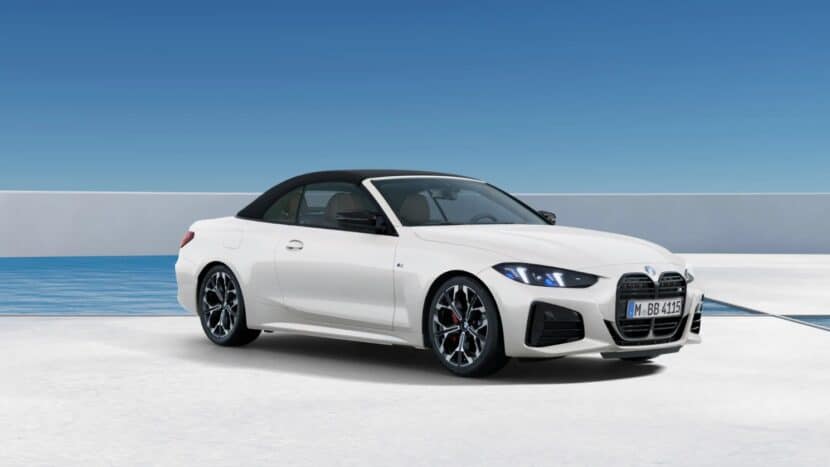 Earlier this year, we filmed the 4 Series Convertible LCI at the BMW Welt as an M4 painted in Velvet Orchid. A different variant of the updated cabrio is there these days in Munich where the M440i can be admired by visitors. It’s not the paint (Mineral White) that makes it special, but the shiny wheels. It’s a new 19-inch Individual set (Style 1038) with a “Y” spoke design and a two-tone finish, introduced with the 4er’s Life Cycle Impulse.