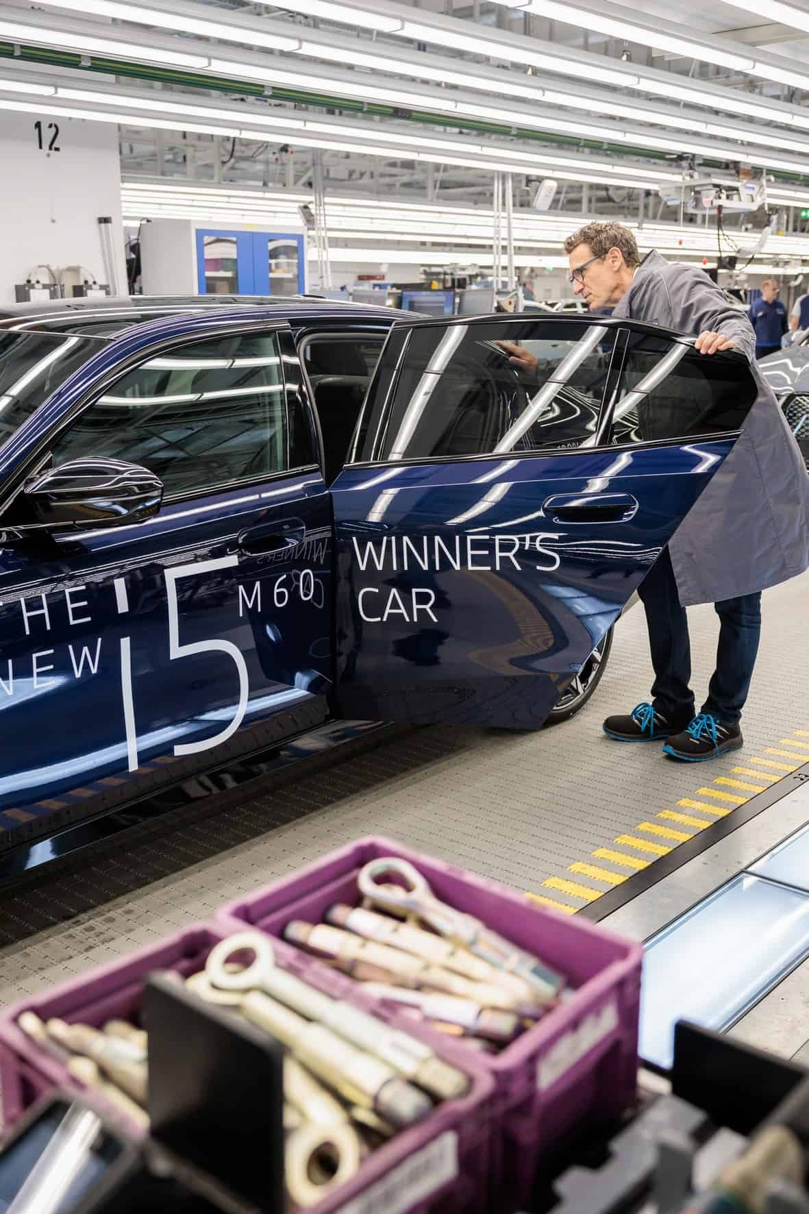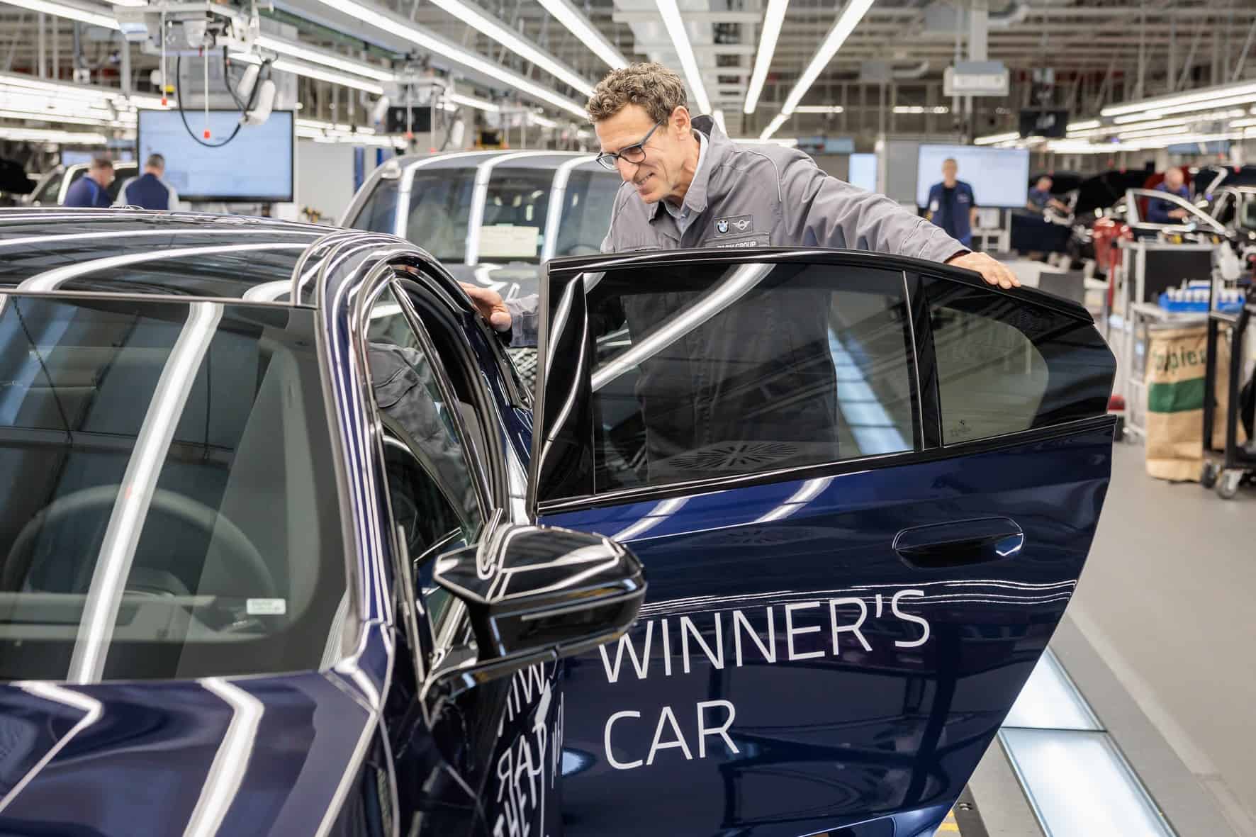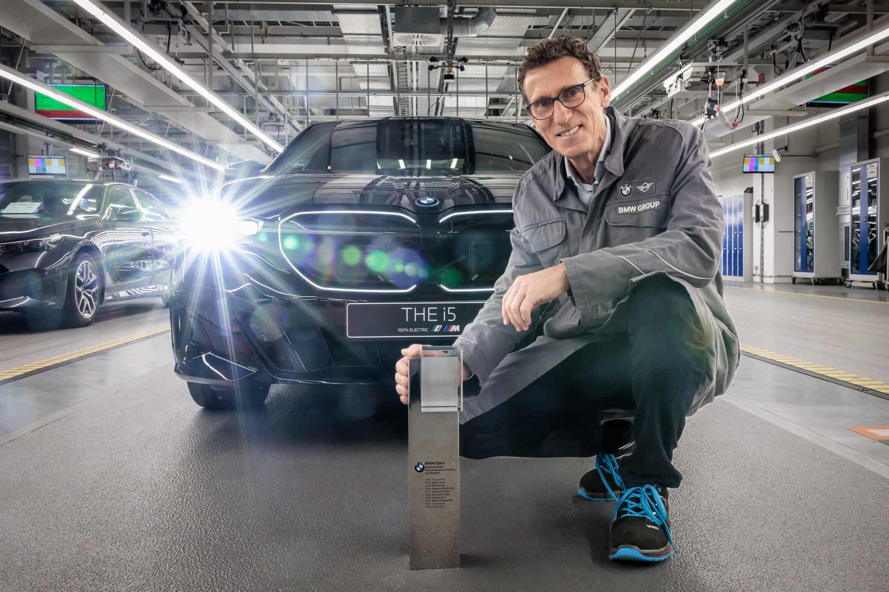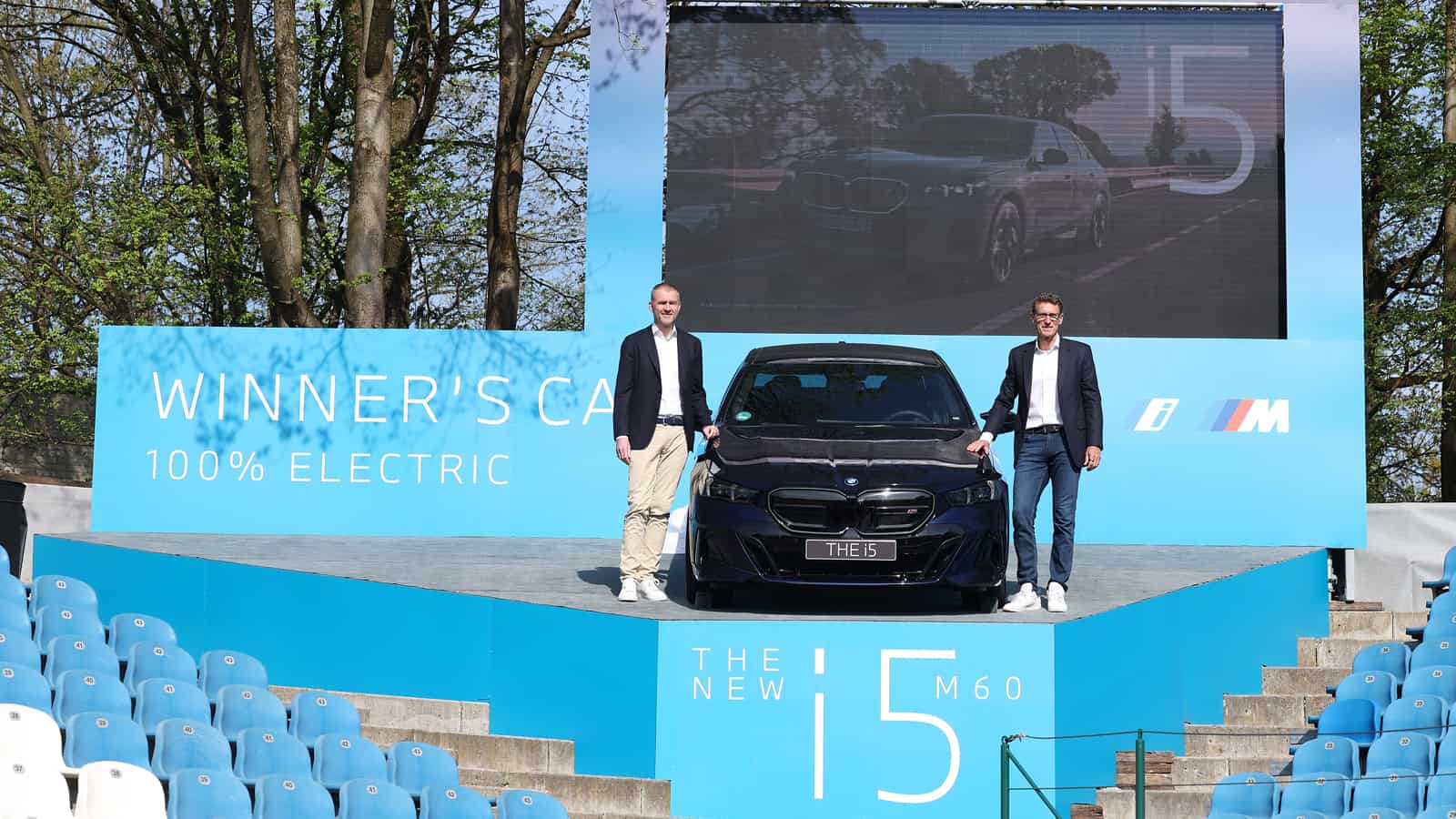 BMW Germany boss Christian Ach took the wraps off the big prize on the center court at the MTTC Iphitos. He was joined at the tennis club in Munich by tournament director Patrik KĂĽhnen. Previously, KĂĽhnen had been invited to the Dingolfing factory to inspect the i5 M60 and even drive it for a bit.