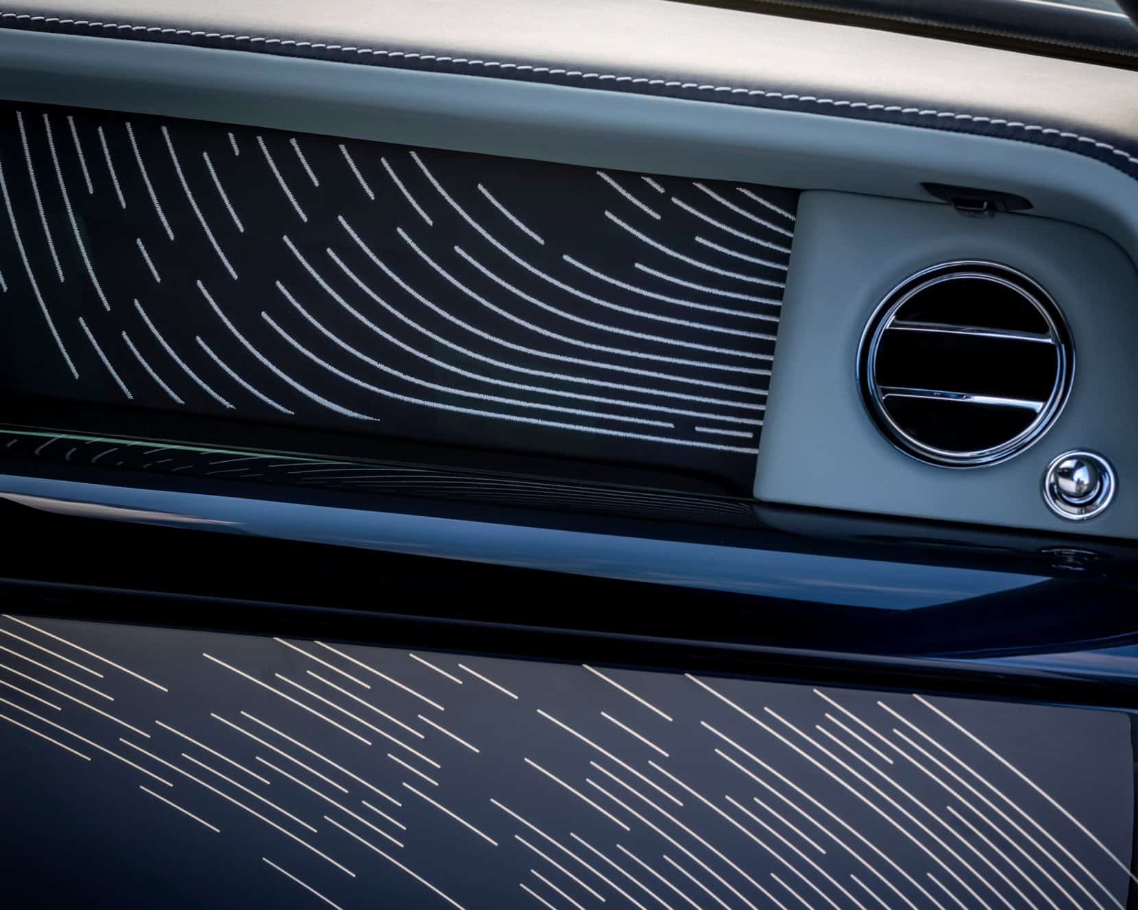 Its interior looks like a work of art with 43,096 stitches across the dashboard along with 768 Galileo Blue and 576 white stars in the headliner. The seats are wrapped in a combination of Blue Grey, Navy Blue, and Arctic White leather with Arctic White stitching for a contrasting effect.