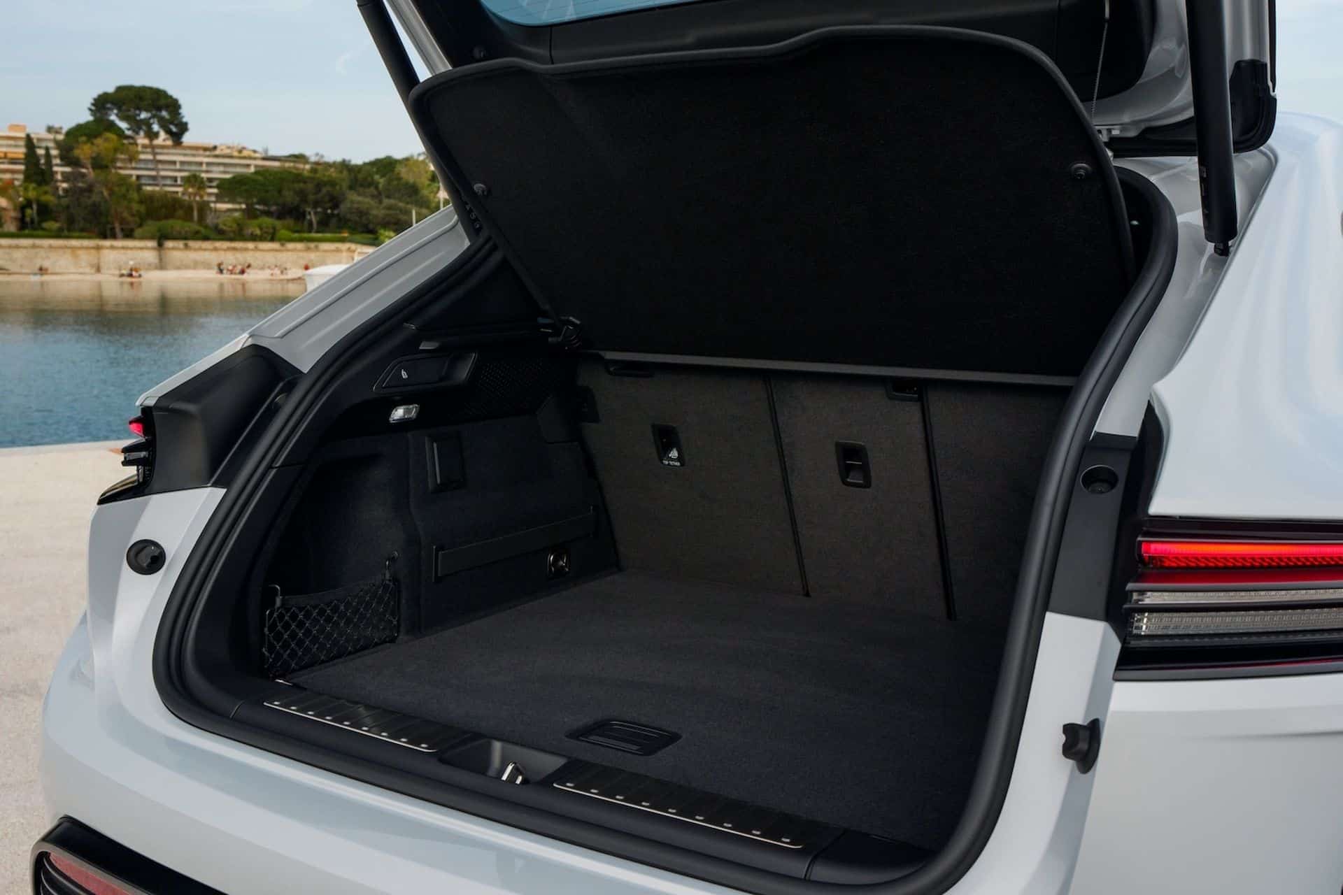 The seats have been noticeably lowered at the front and rear, which contributes to a sportier driving experience. Depending on the model, the load compartment holds between 480 and 1,288 liters. In addition, the front trunk has a generous 84 liters, so that more than just the charging cables can be stored there. The trunk lid can be opened as usual from inside the Macan or by sliding it over the Porsche crest symbol on the hood.