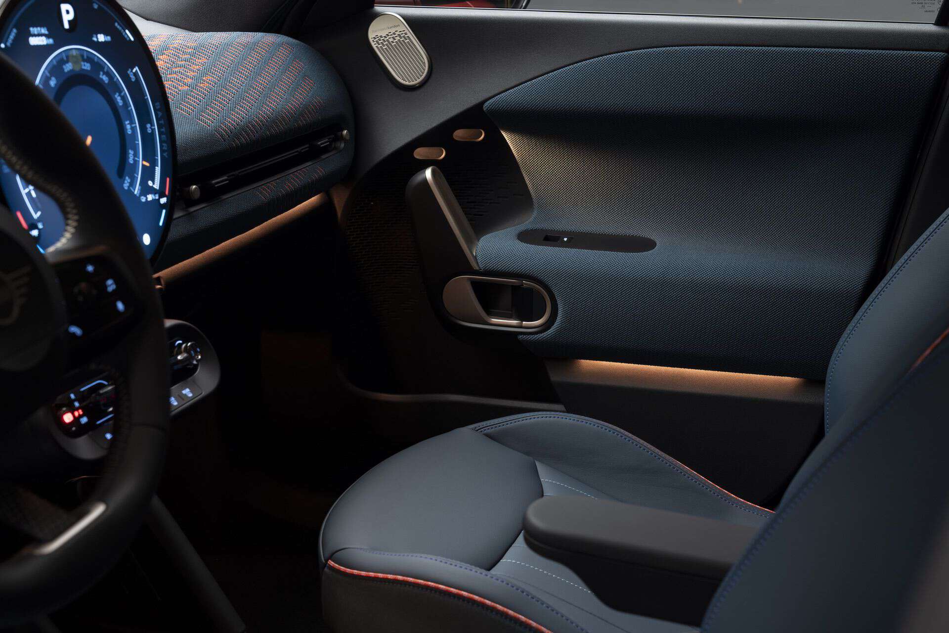 The interior should look instantly familiar since it’s largely carried over from the Cooper. The focal point is unquestionably the circular OLED screen with a 9.4-inch diagonal. It runs on MINI’s equivalent of the iDrive 9 infotainment system and provides access to all relevant information. There’s no digital instrument cluster in front of you but a head-up display is optional.