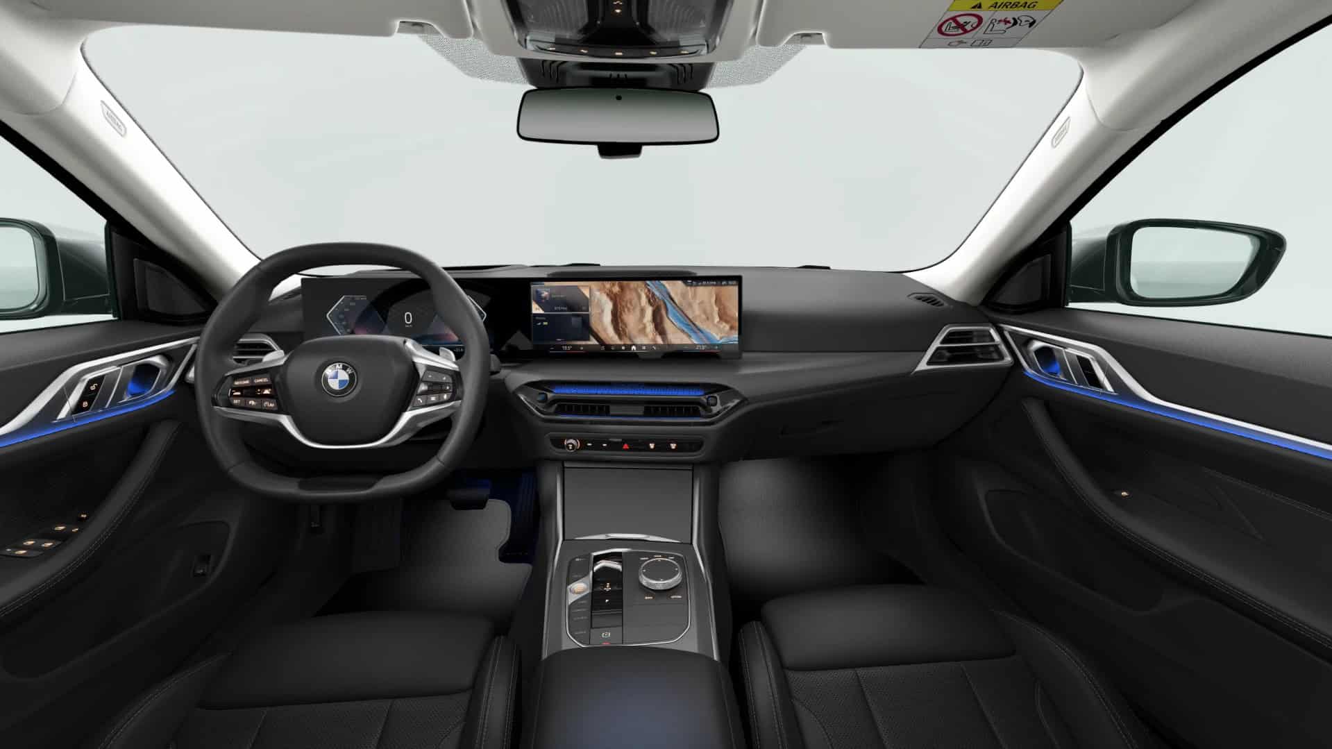 If the black interior with perforated synthetic leather looks dull, you can step up to a fancier cabin. As with the fully electric i4, its ICE sibling can be had with genuine leather in multiple colors. This Sensatec upholstery can also be ordered in several other hues if you’re finding this black too mundane. BMW’s visualizer tool also allows you to pick from four different trim finishes for the dashboard and center console.