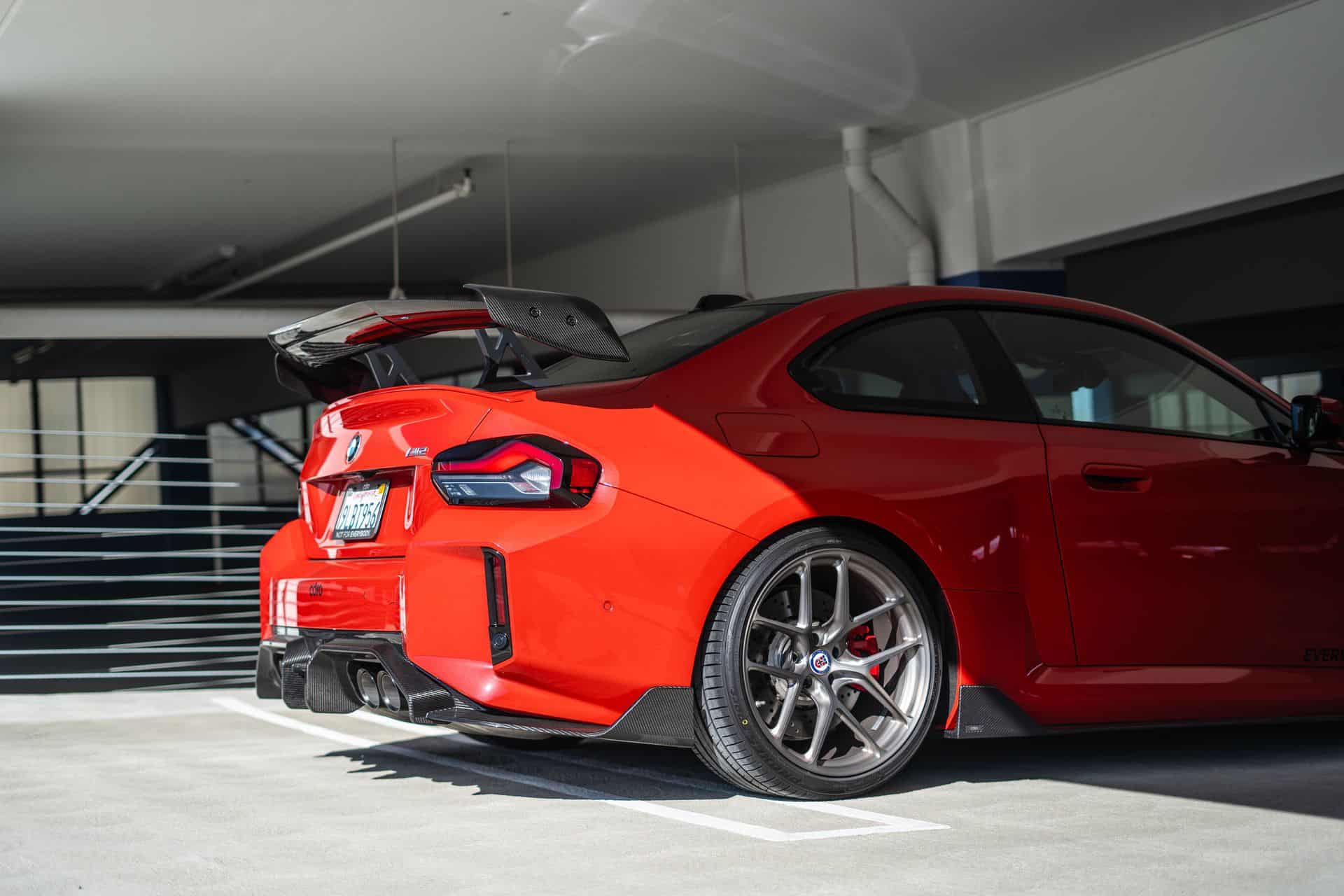 Although the i4 M50 was the best-selling product from BMW M in 2023 (and the year before), the M2 also posted strong results. With a growing customer base, the G87 is attracting the attention of more and more tuners. Case in point, ADRO can give the “baby M” a meaner attitude thanks to a comprehensive appearance package. The focal point is unquestionably the fixed wing at the rear. Made from carbon fiber, the massive aero element weighs 45% less than an equivalent aluminum piece. It’s more than just for show since the tuner mentions it adds 277.7 pounds of downforce at 110 mph. The massive wing costs $3,850 and reminds us of BMW’s own M2 CS Racing, the M division’s entry-level race car.