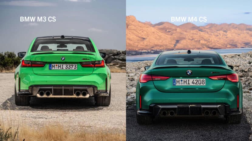 Both the M4 CS and M3 CS inherit their aggressive aesthetics from the M4 CSL, featuring bold front air intakes and distinctive hood stripes. However, the 2025 BMW M4 CS, as a two-door coupe, and the G80 M3 CS, a four-door sedan, present notable differences in body style. The M4 CS continues with a sleeker, coupe-specific design that includes updated adaptive LED front lights and a rear laser setup—elements shared with the lesser 4 Series models but first seen on the M4 CSL. Both cars feature a similar, if not identical rear spoiler made of carbon fiber. The diffuser and exhaust are also very close in design.