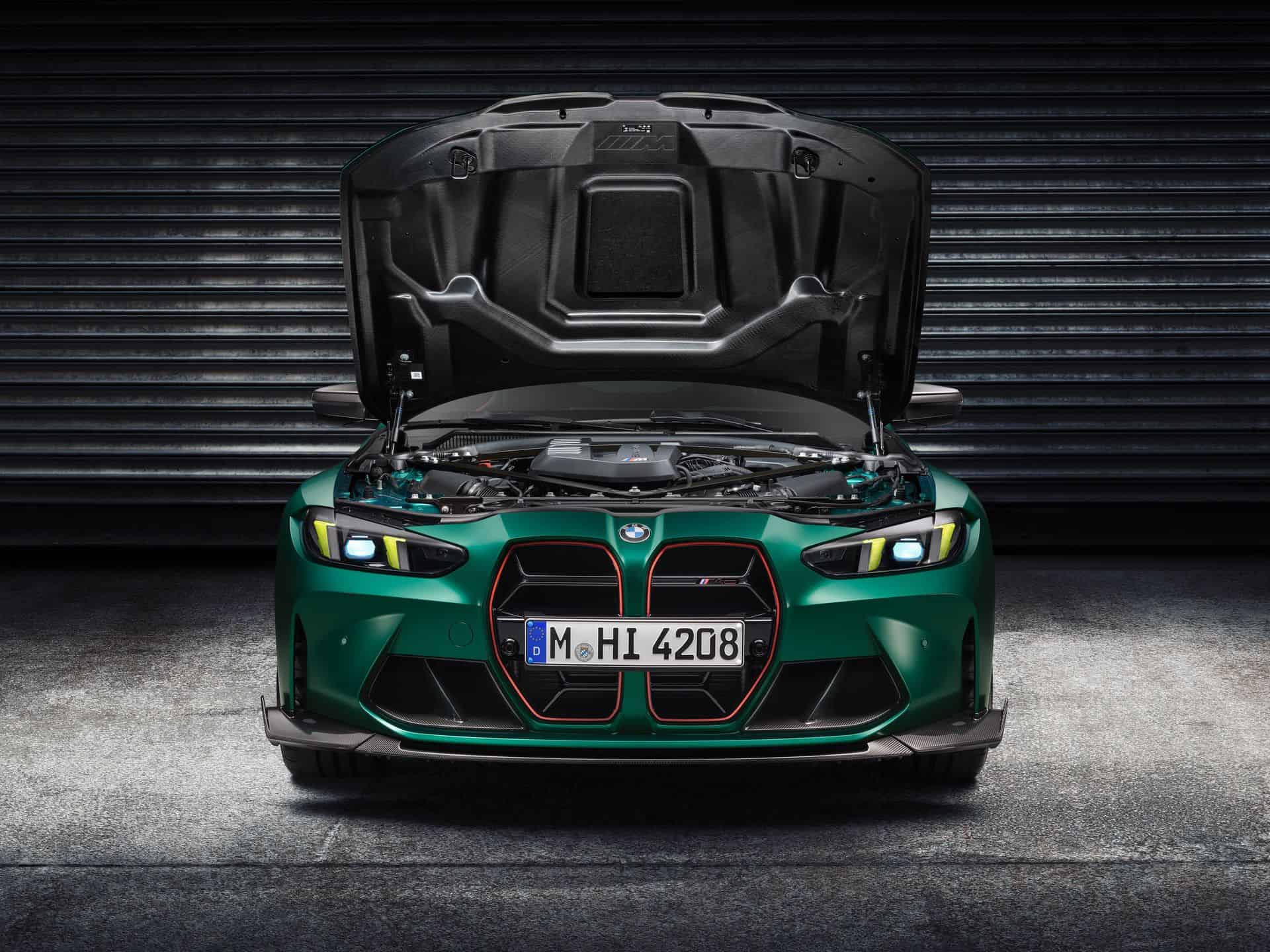 Just like the super sedan, its coupe equivalent gets a wide array of standard carbon fiber goodies. Compared to the donor car – the M4 Competition xDrive Coupe – the CS shaves off approximately 77 lbs pounds of fat. The exhaust system alone is over 8 pounds lighter than the standard setup thanks to its titanium rear silencer. The CSL lost 240 pounds since it went through a more extreme diet, including a rear seat delete. BMW says the G82 M4 CS has a curb weight of 3,902 lbs.