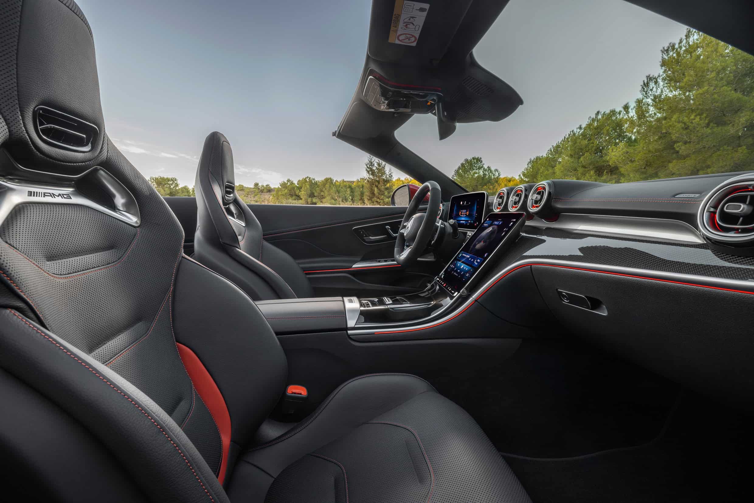 Akin to BMW, Mercedes has largely moved away from conventional controls. Instead, there’s an 11.9-inch portrait touchscreen that tilts from 15 to 40 degrees. It’s joined by a tablet-like digital instrument cluster measuring 12.3 inches. We’re being told the seats benefit from special coating to remain cool even on a hot summer’s day.