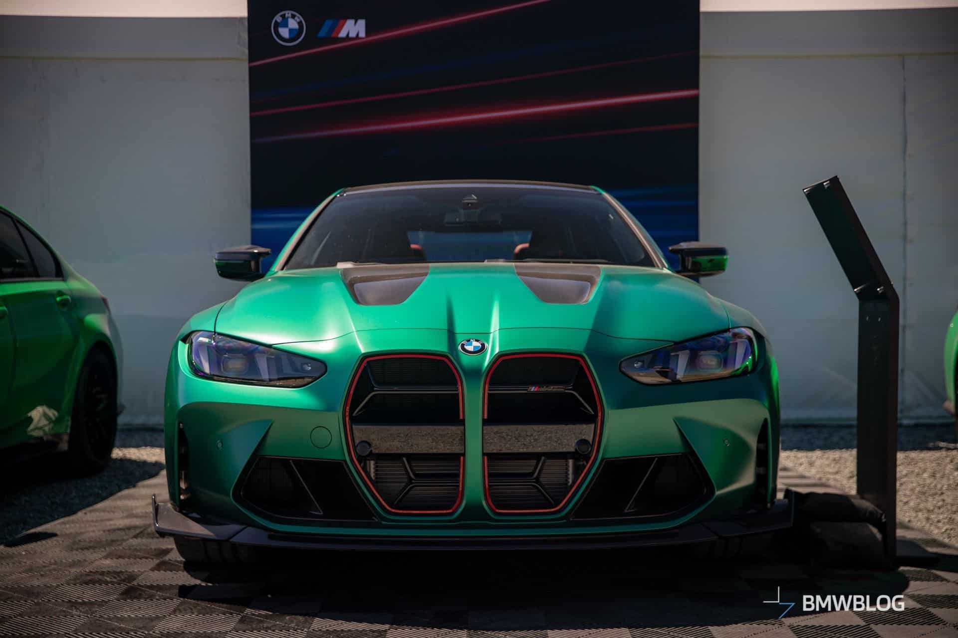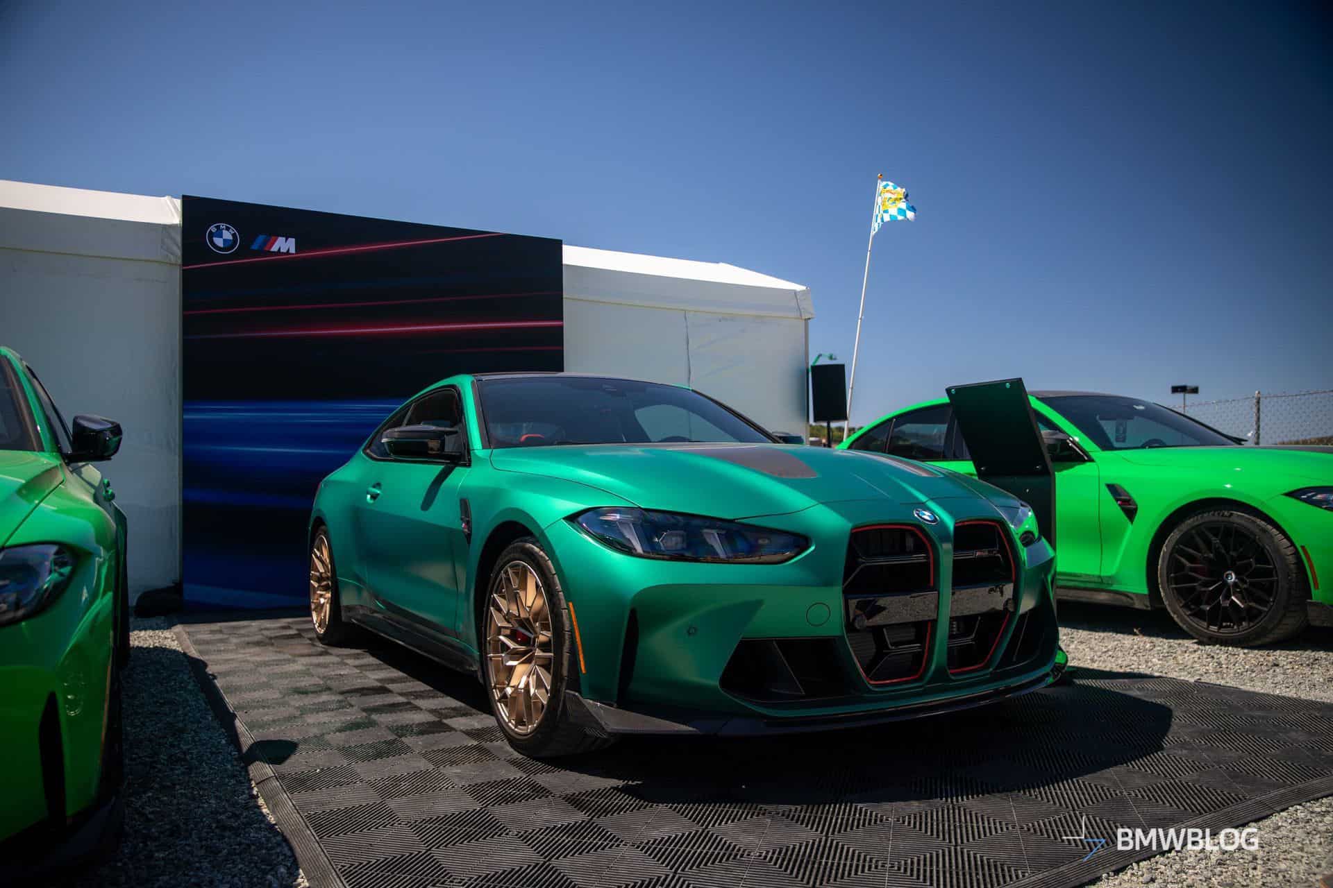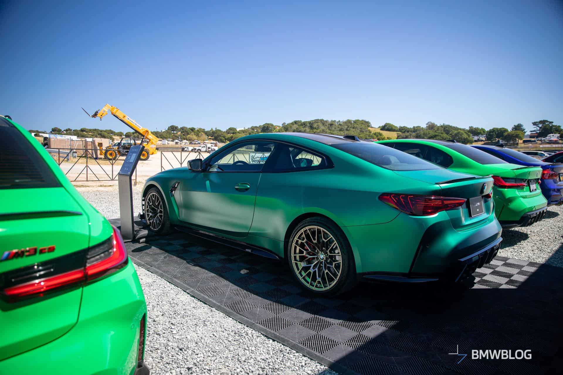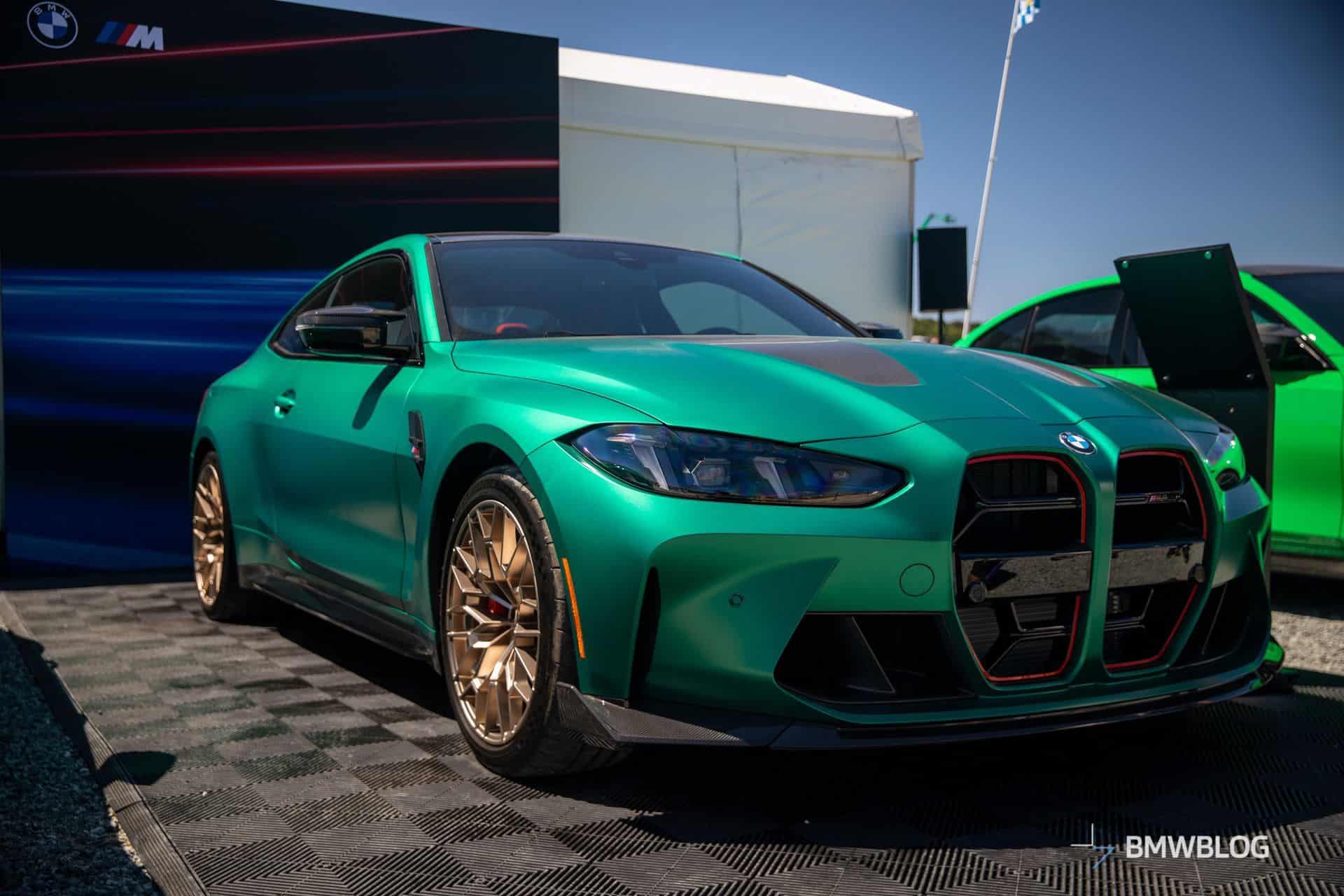 The M4 CS was in good company considering BMW displayed its latest special edition between the M3 CS. The two sedans flanking the two-door equivalent were finished in Signal Green to compliment the Frozen Isle of Men Green coupe. The luxury brand chose to show off the new M with the matte gold wheels. Alternatively, you can have the same design in matte black.