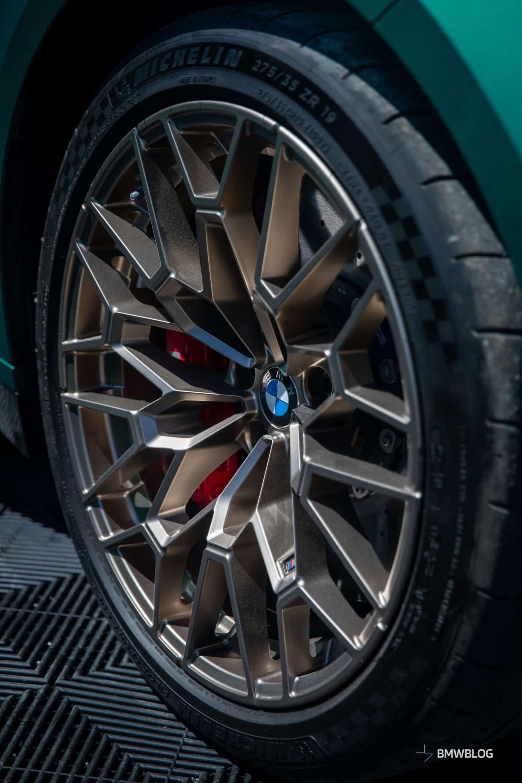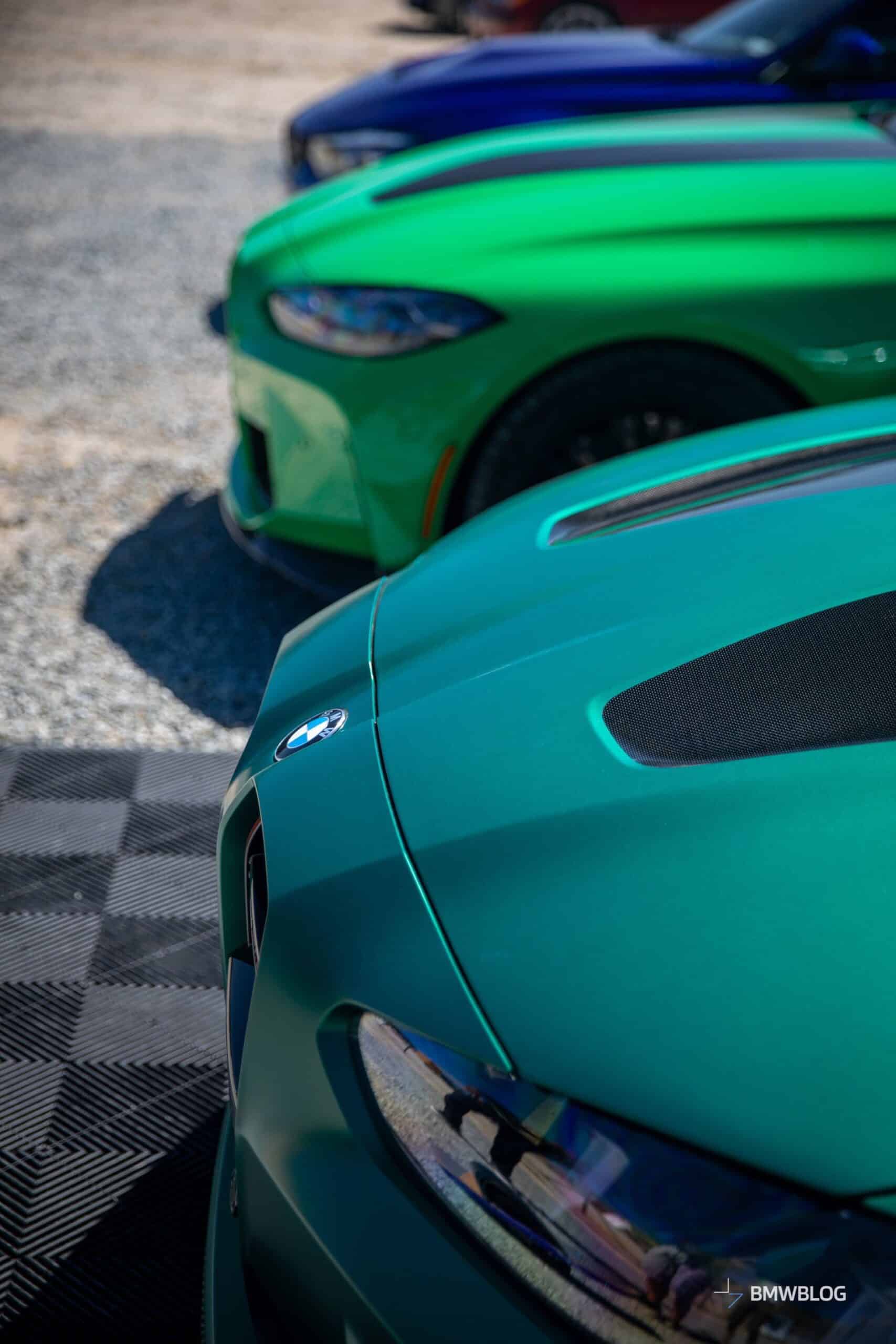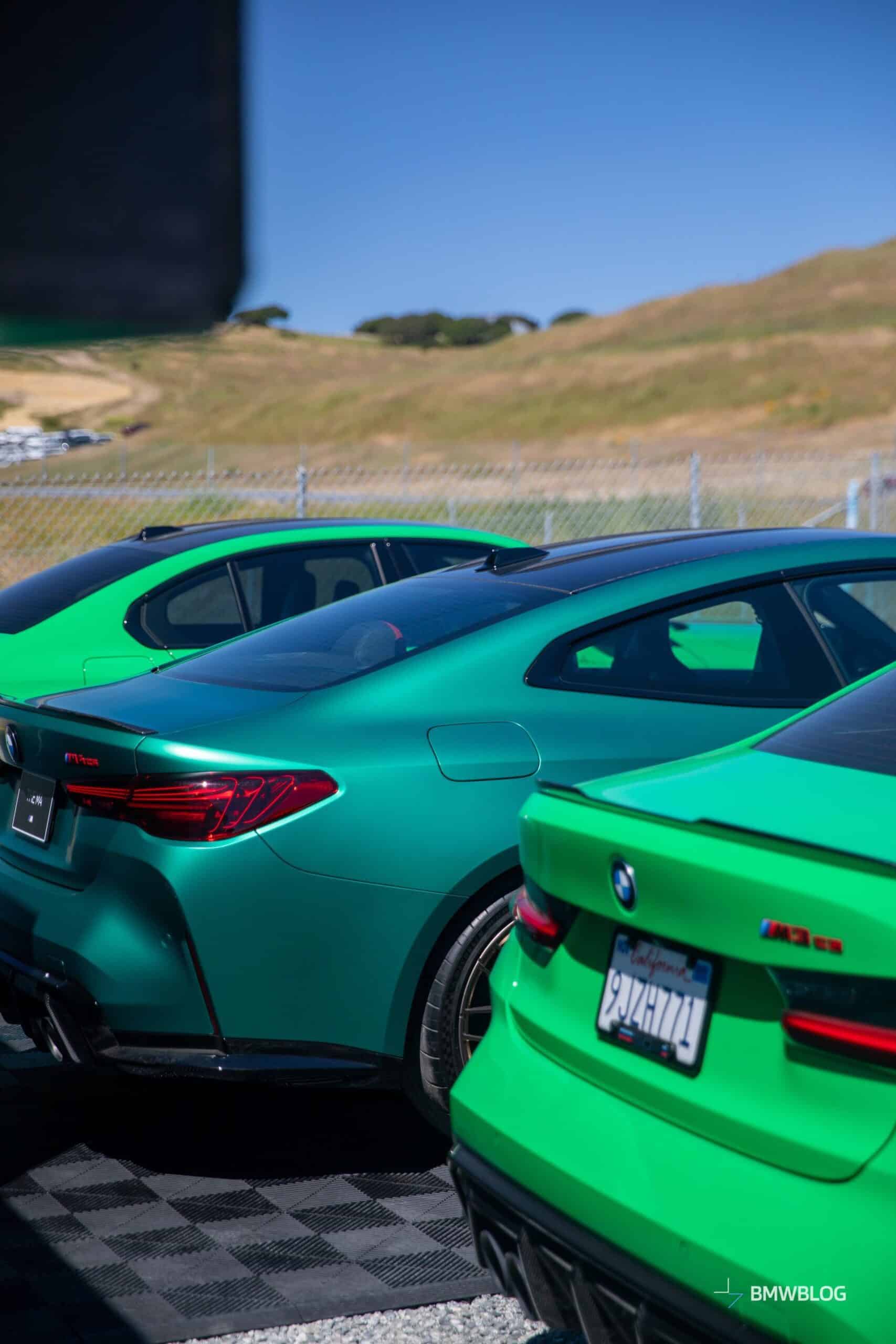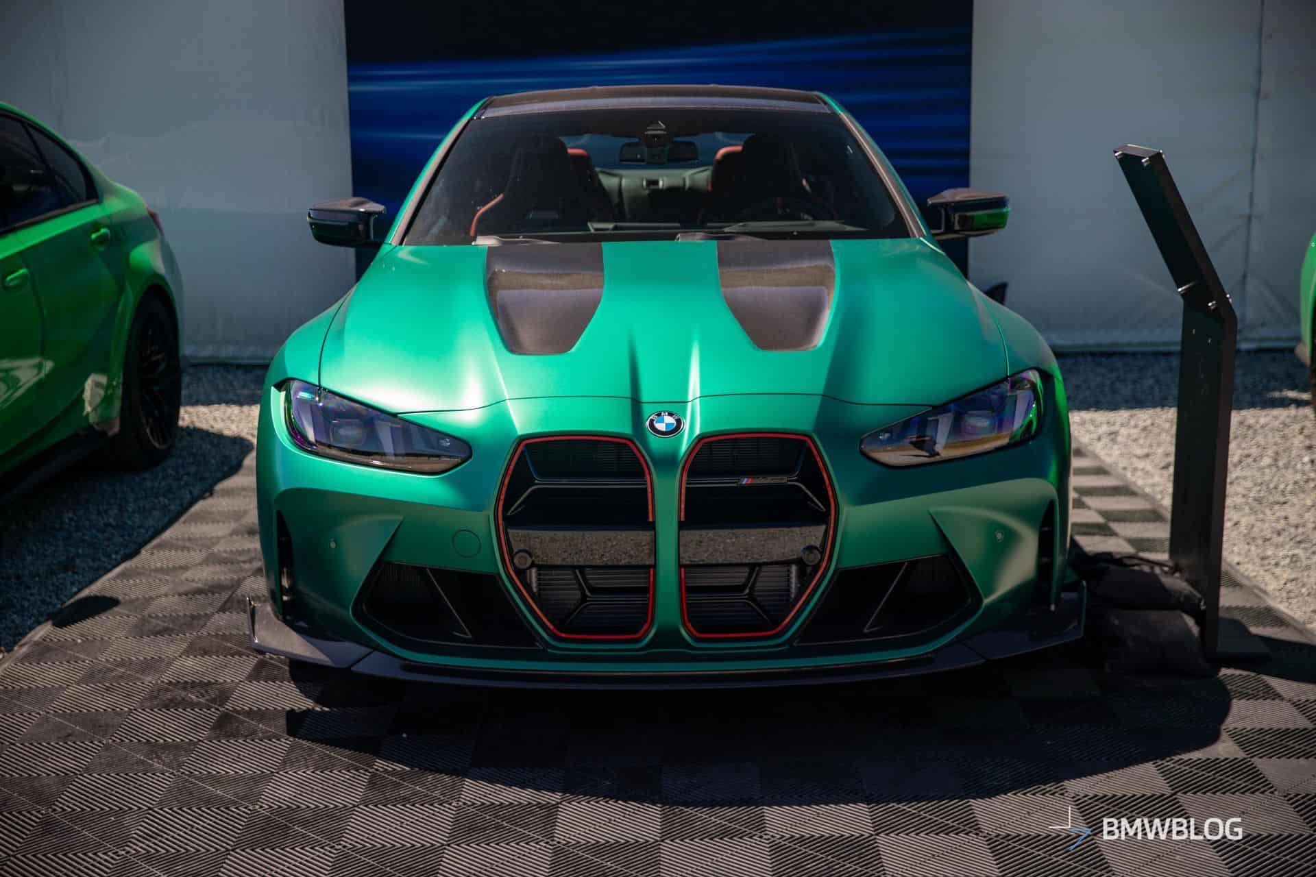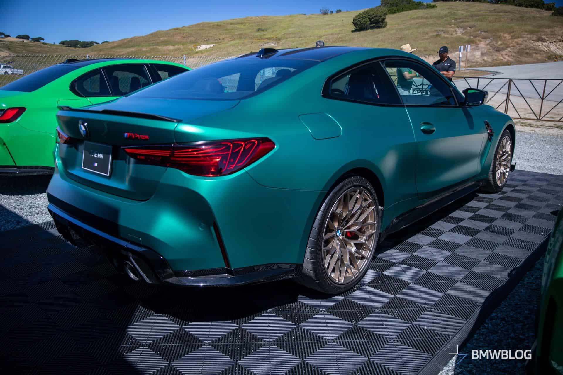 The M4 CS was in good company considering BMW displayed its latest special edition between the M3 CS. The two sedans flanking the two-door equivalent were finished in Signal Green to compliment the Frozen Isle of Men Green coupe. The luxury brand chose to show off the new M with the matte gold wheels. Alternatively, you can have the same design in matte black.