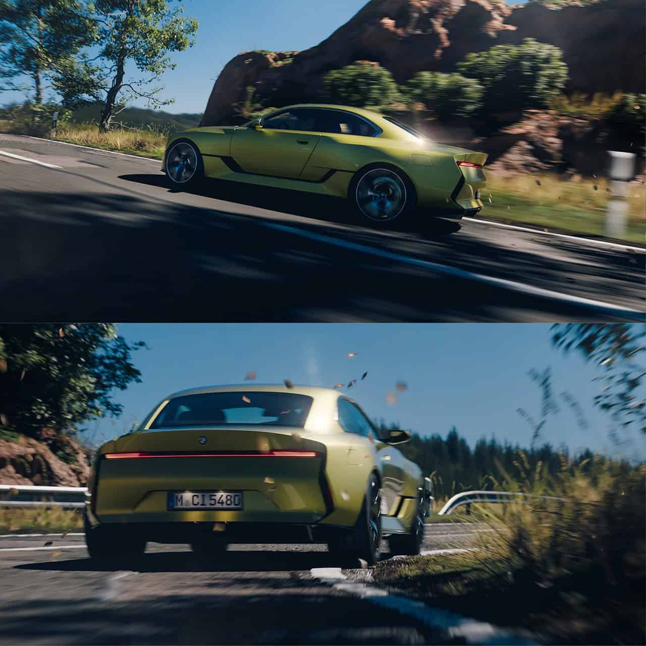 The front grille takes after the kidneys BMW gave to the ultra-rare 3.0 CSL but here they’re flanked by ultra-slim LED headlights. The absence of an exhaust system denotes we’re dealing with an EV, as do the short front overhang and smaller air intakes. We’re particularly fond of the stealthy black 03 Coupe but the design lines pop better with that mustard-like color. The daring shade reminds us of BMW’s own 2015 3.0 CSL Hommage concept.