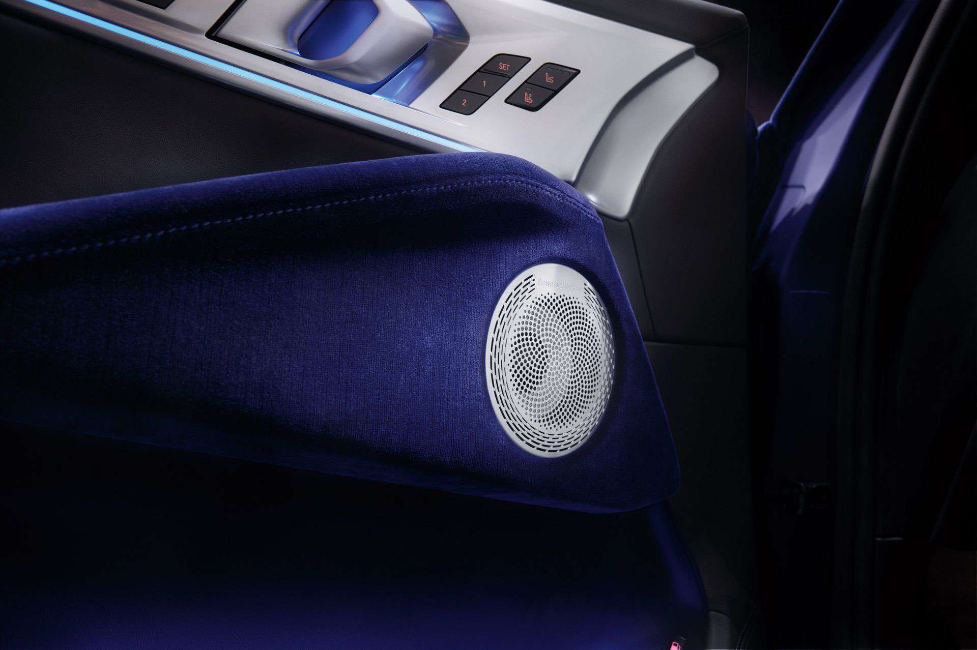 BMW says that in order to achieve a truly luxurious feel, mixing different materials was essential—a principle often seen in fashion, where combining various textures enhances the overall aesthetic. Silky and knitted fabrics, for example, complement each other, highlighting their unique characteristics. For this car, BMW used different shades of ultramarine, and by blending complementary materials—intensely saturated velvet and a fabric covered with sequins in a frozen metallic look—the result is a unique color.