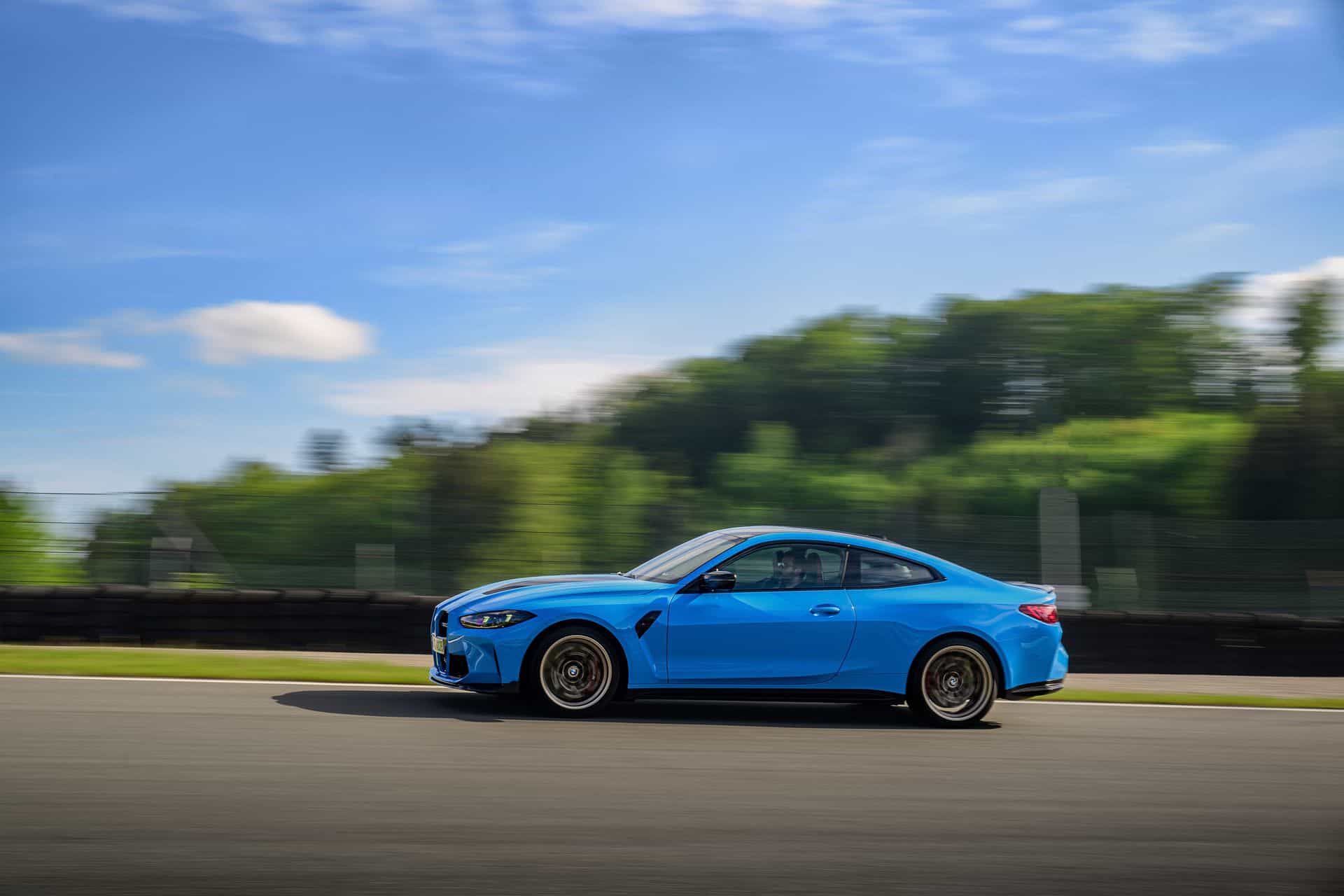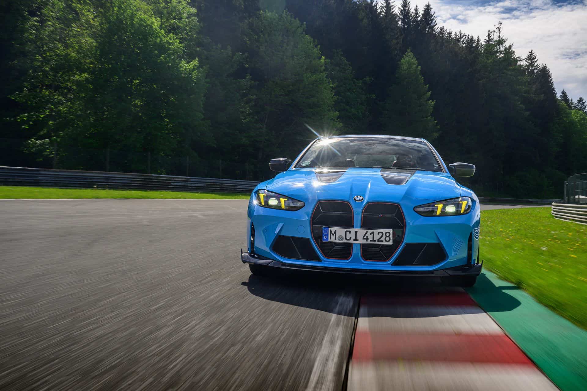 A lead car takes me through a reconnaissance lap to re-acquaint myself with the Austrian race track. I start in Sport Plus Mode, with all the sporty settings saved to the M1 button, and equipped with Cup 2 R tires, which are perfect for dry and sticky surfaces. From the get-go, the new BMW M4 CS impresses with its grip. Pedal to the metal, you might expect the traction light to come on, but it doesn’t. This Riviera Blue monster pulls ahead with such velocity that it pushes you back into the seat.
