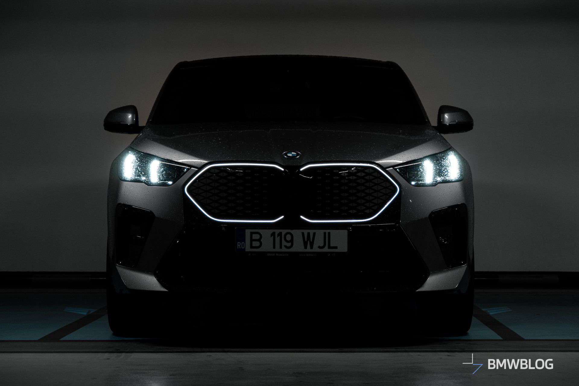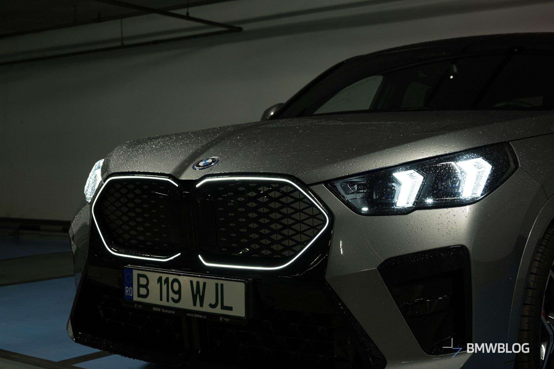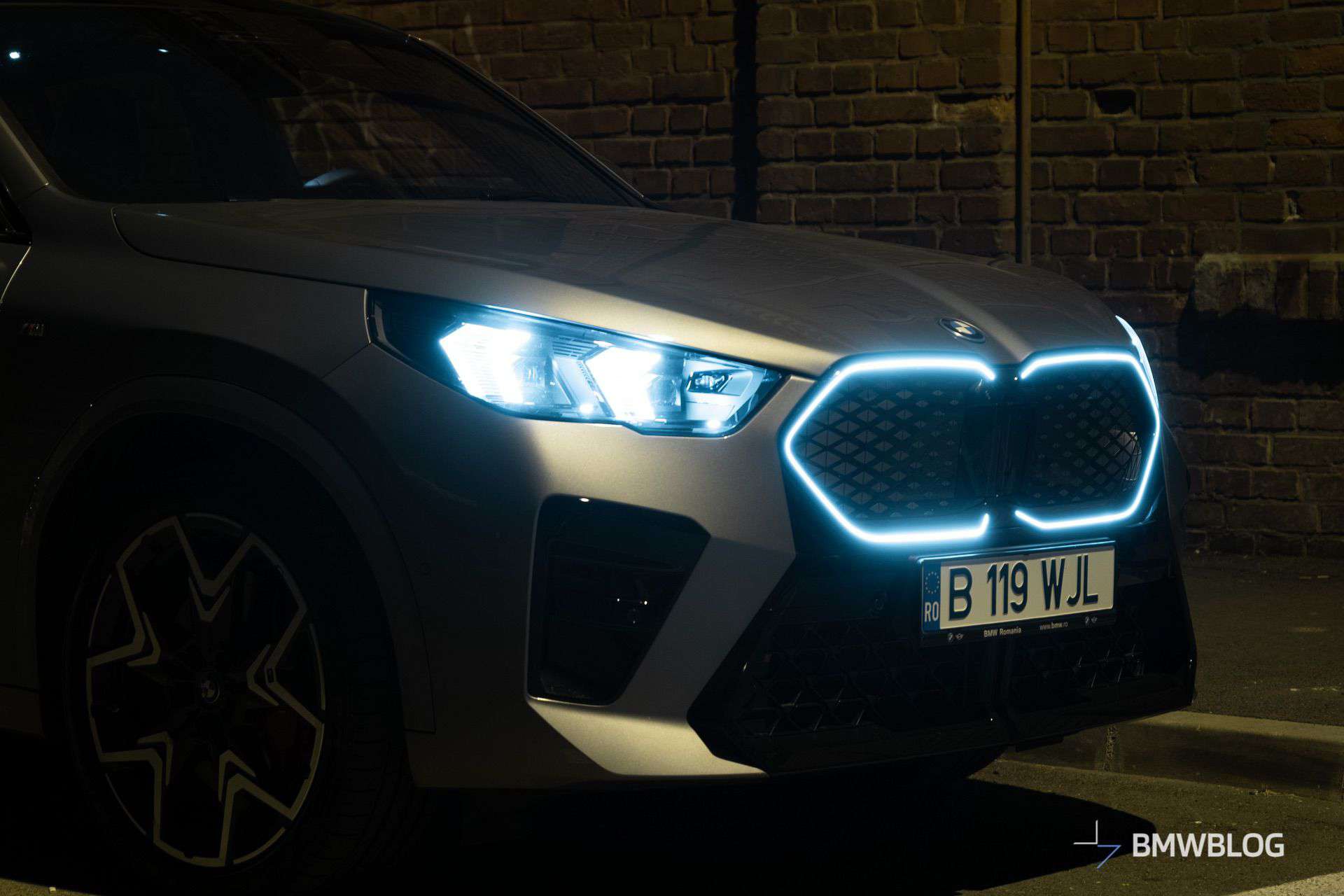 The iX2 retains the same size grille as the combustion X2, but it’s completely covered up. As far as BMW’s oversized grilles go, this one looks pretty good, and it works surprisingly well with the light-up grille surround that my tester has. This really makes the iX2 pop at night, especially when you see one in your rear-view mirrors.
