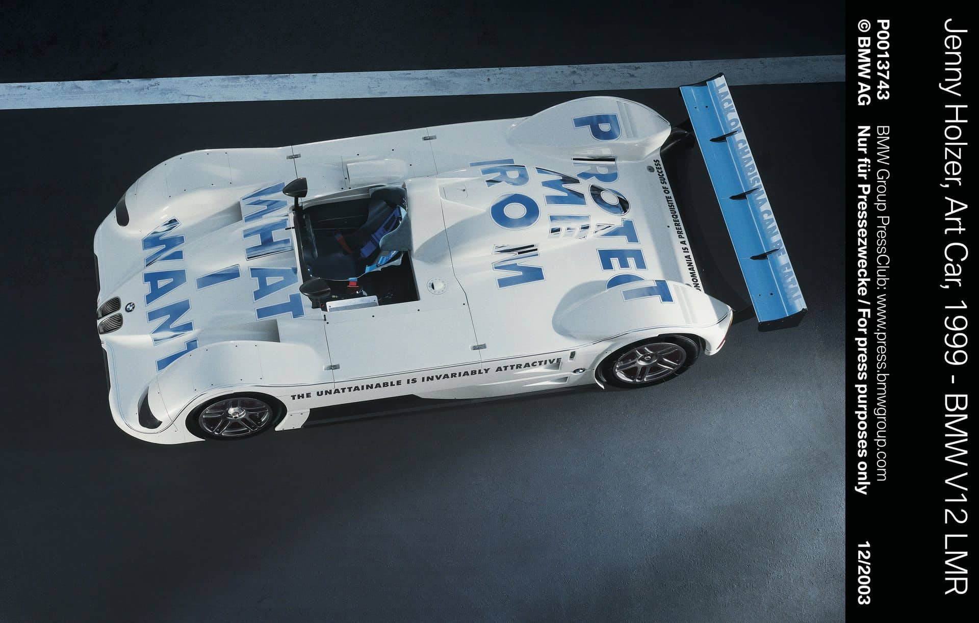 Another notable mention was Jenny Holzer’s car, which bears the phrase “Protect me from what I want” in her typical truism style. Thomas Girst, Head of Cultural Engagement at BMW pointed out, “Those are actually letters that light up at night, so you can also read them during the 24-hour race.”