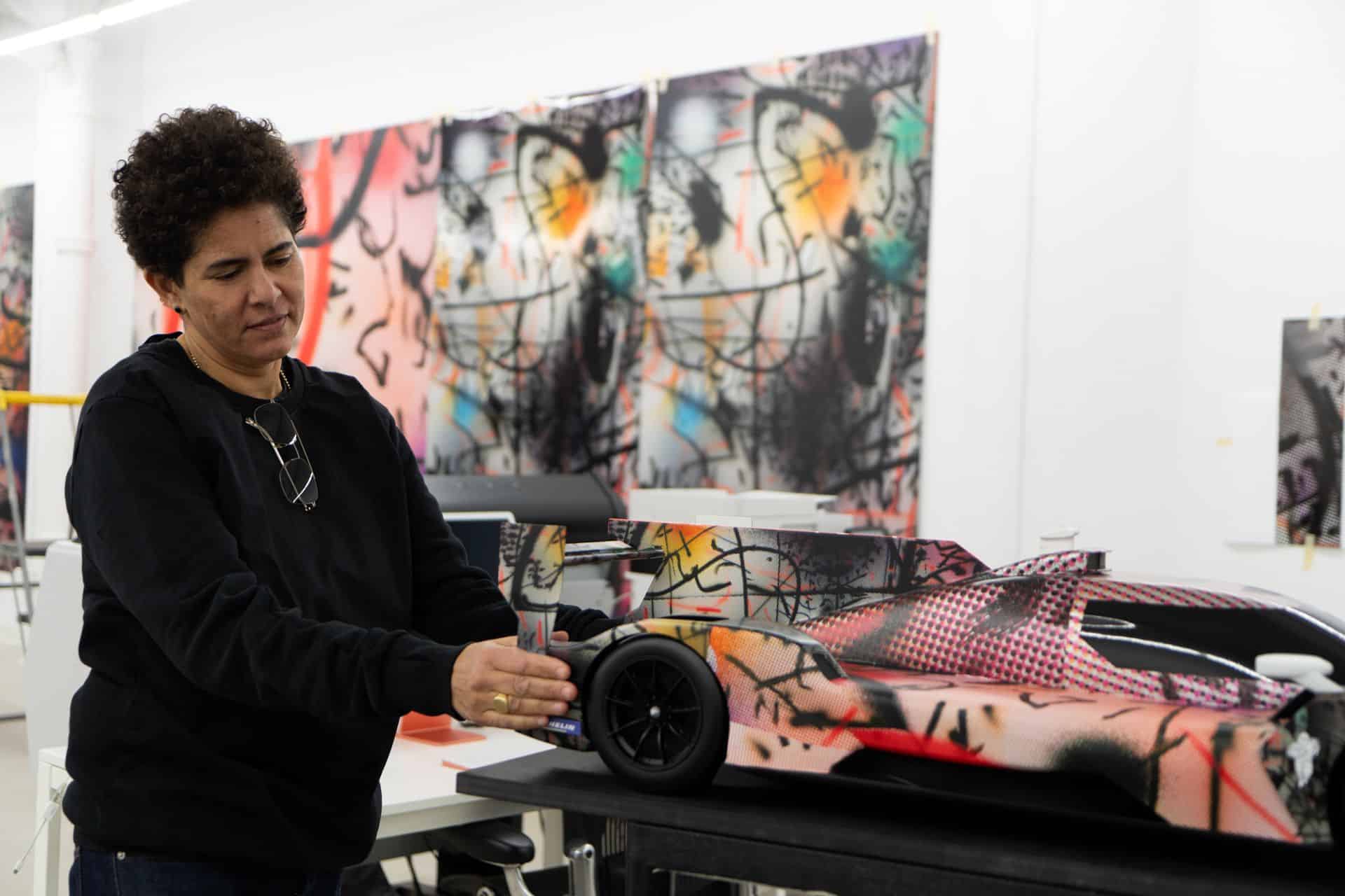 When asked about balancing her artistic vision with the car’s purpose of speed and winning, Mehretu offered a profound perspective. “I think for me, it was more of a metaphor kind of play with that,” she explained. Unlike some artists who might radically alter the car, Mehretu chose to embrace its racing essence. “The idea is, it’s a race car. I wanted it to be something we could play with in that language,” she added.