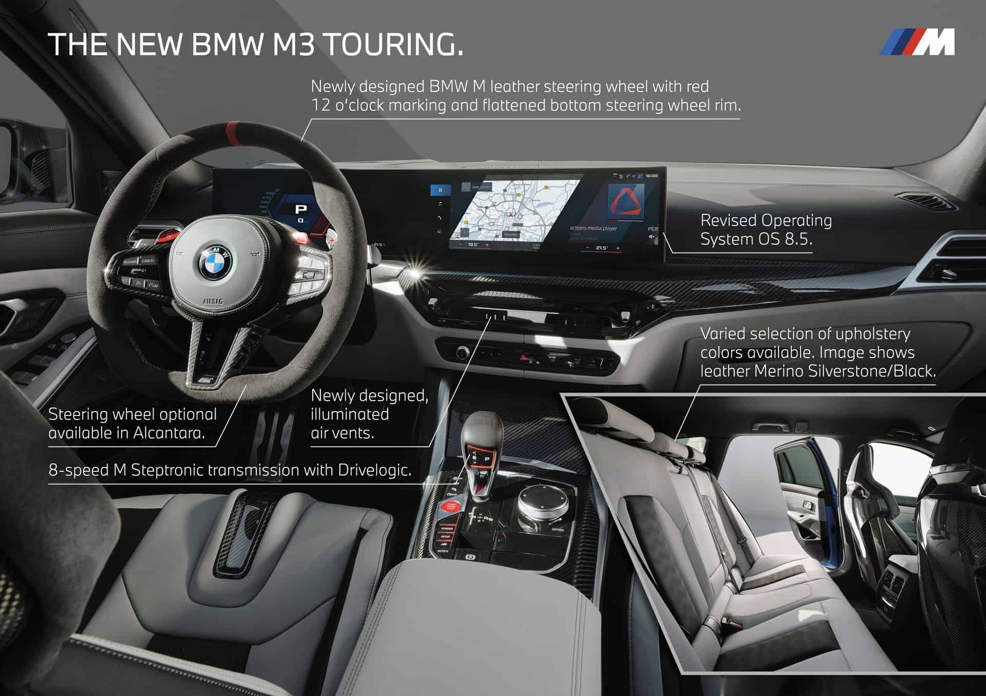 This upgraded engine, also used in the BMW M4 GT3 race car, generates peak torque of 479 lb-ft between 2,750 and 5,730 rpm. This enhanced performance results in the BMW M3 Competition Sedan with M xDrive accelerating from 0 to 60 mph in just 3.4 seconds. All variants of the new BMW M3 have an electronically limited top speed of 155 mph as standard. However, if the optional M Driver’s Package is specified, this figure rises to 180 mph.