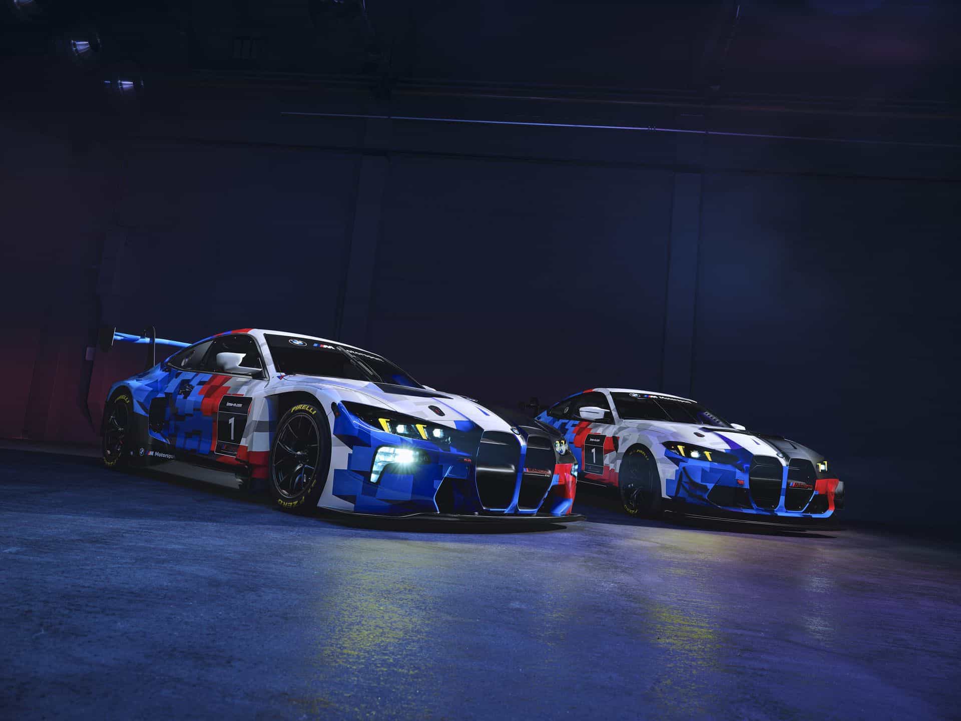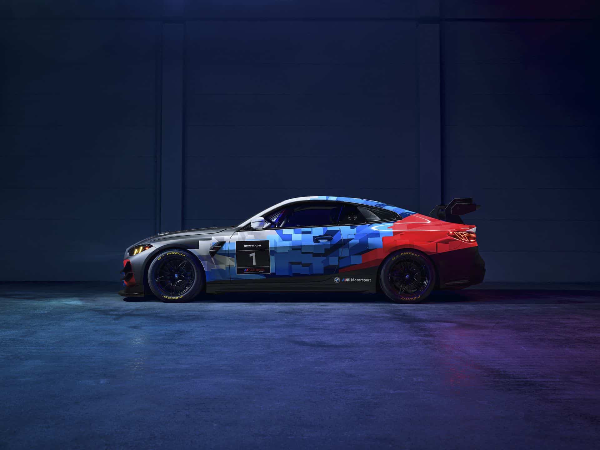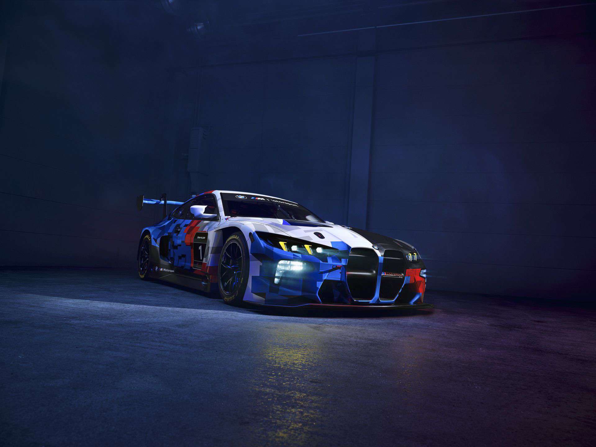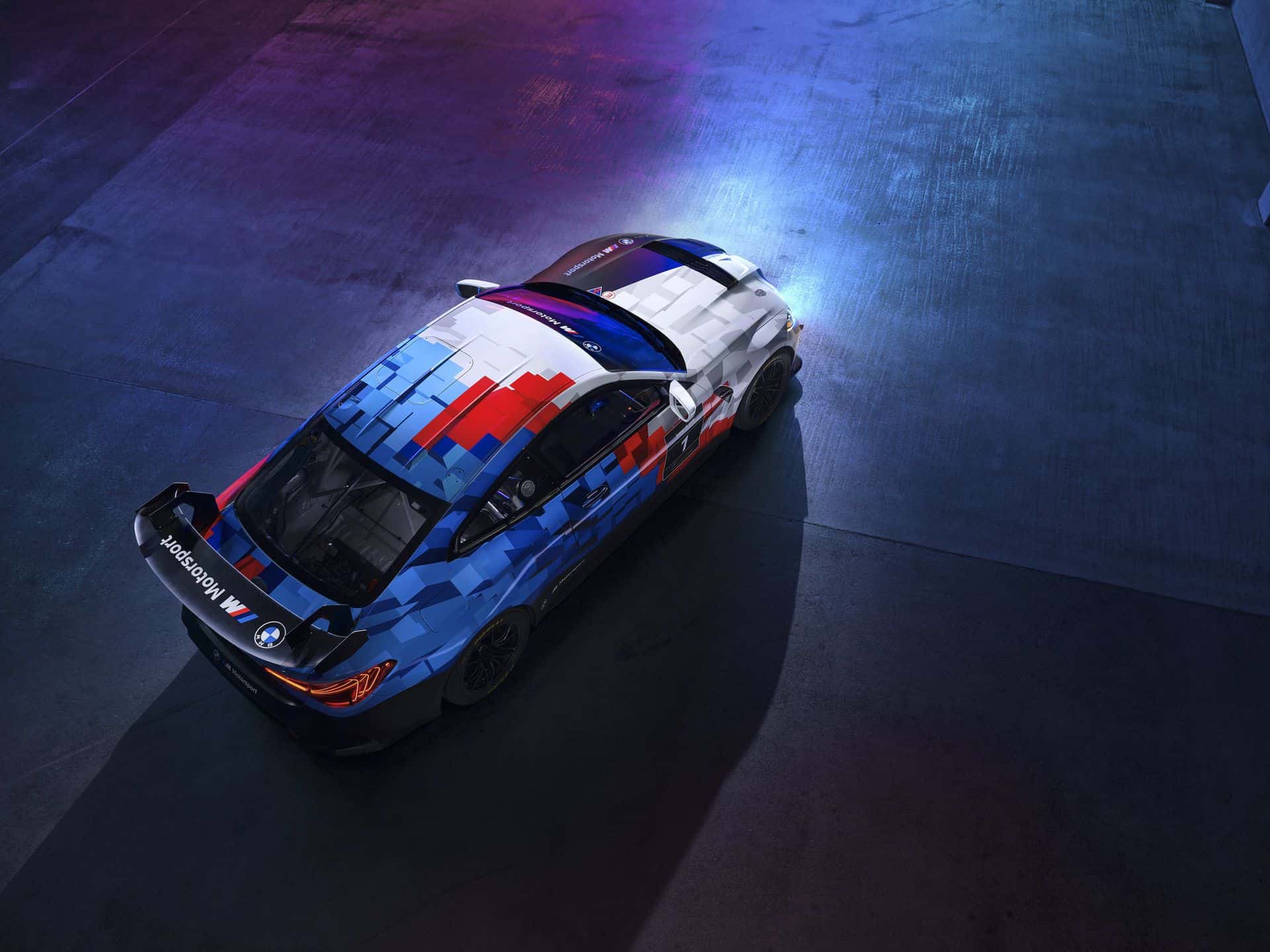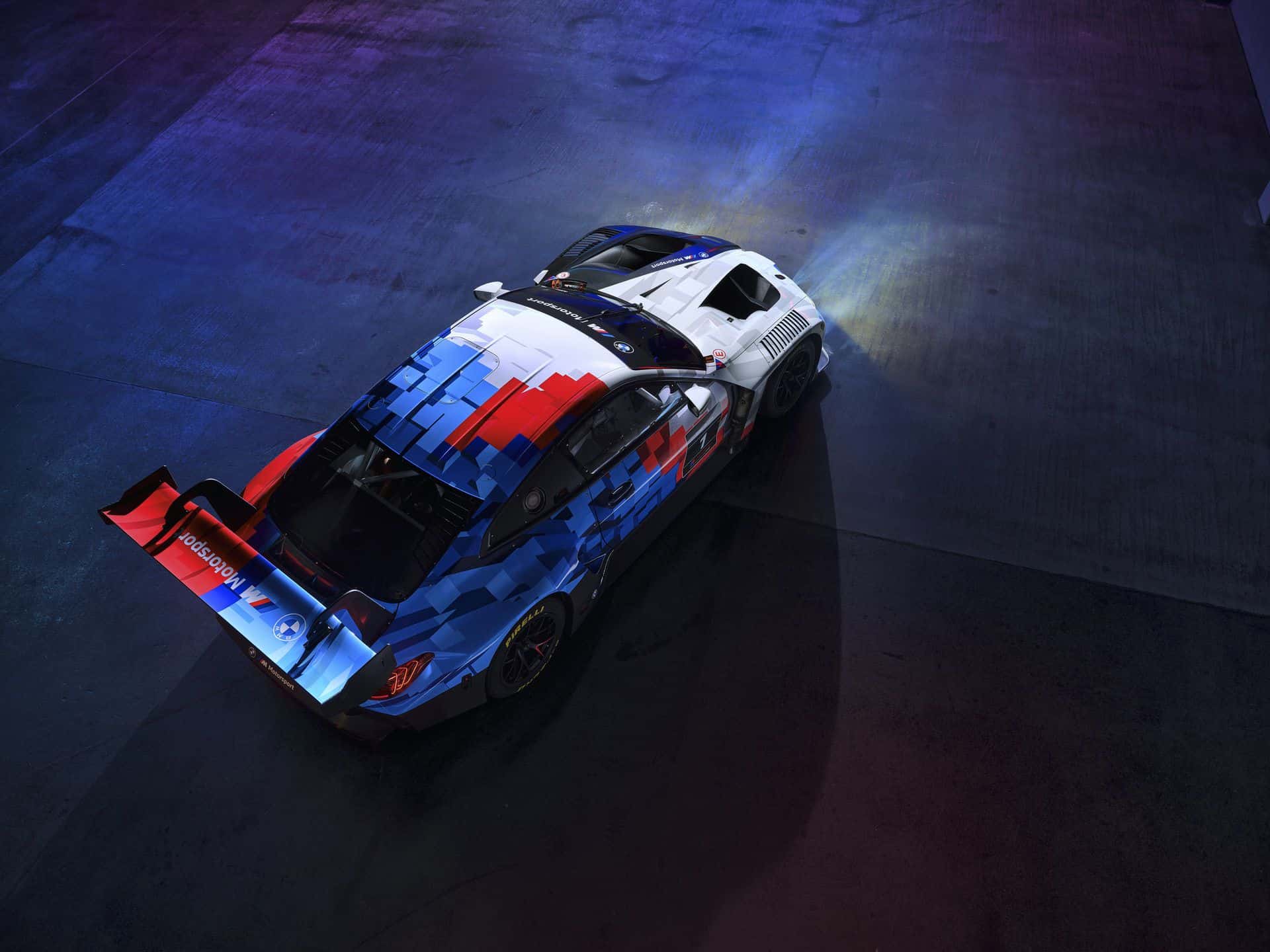 New headlights at the front and rear feature an LCI (Life Cycle Impulse) design, enhancing visibility and modernizing the car’s appearance. The car’s livery embodies a bold “Inception” design, integrating themes of digitality and dimensionality. The iconic M colors are presented in a high-contrast mosaic, with light blue on the left, dark blue in the middle, and red on the right, arranged in an asymmetrical layout. Additionally, the livery features a non-reflective matte black section ahead of the driver to aid focus and weight-saving by omitting foil in dark areas, revealing the carbon fiber construction.