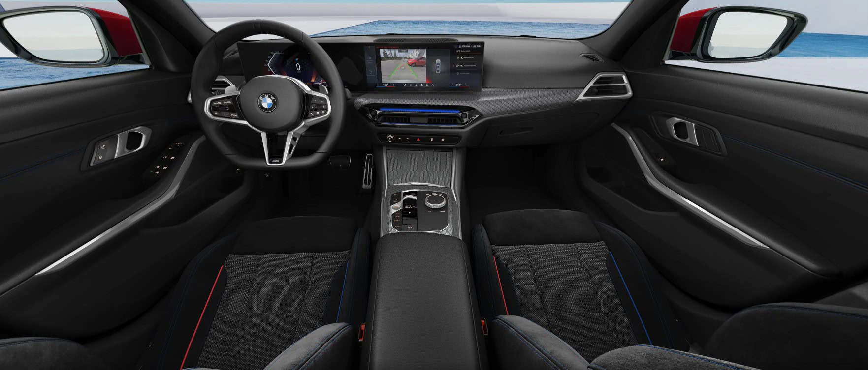 The interior has been largely carried over, although there are a few changes. M Performance cars and those with the M Sport Package get a flat-bottomed steering wheel. In addition, the central air vents have a different look and incorporate contour lighting. M Performtex upholstery is standard on the M340i/M340d and with the M Sport Package. When equipped, the 3 Series has black cloth and velour seats with M-colored piping.