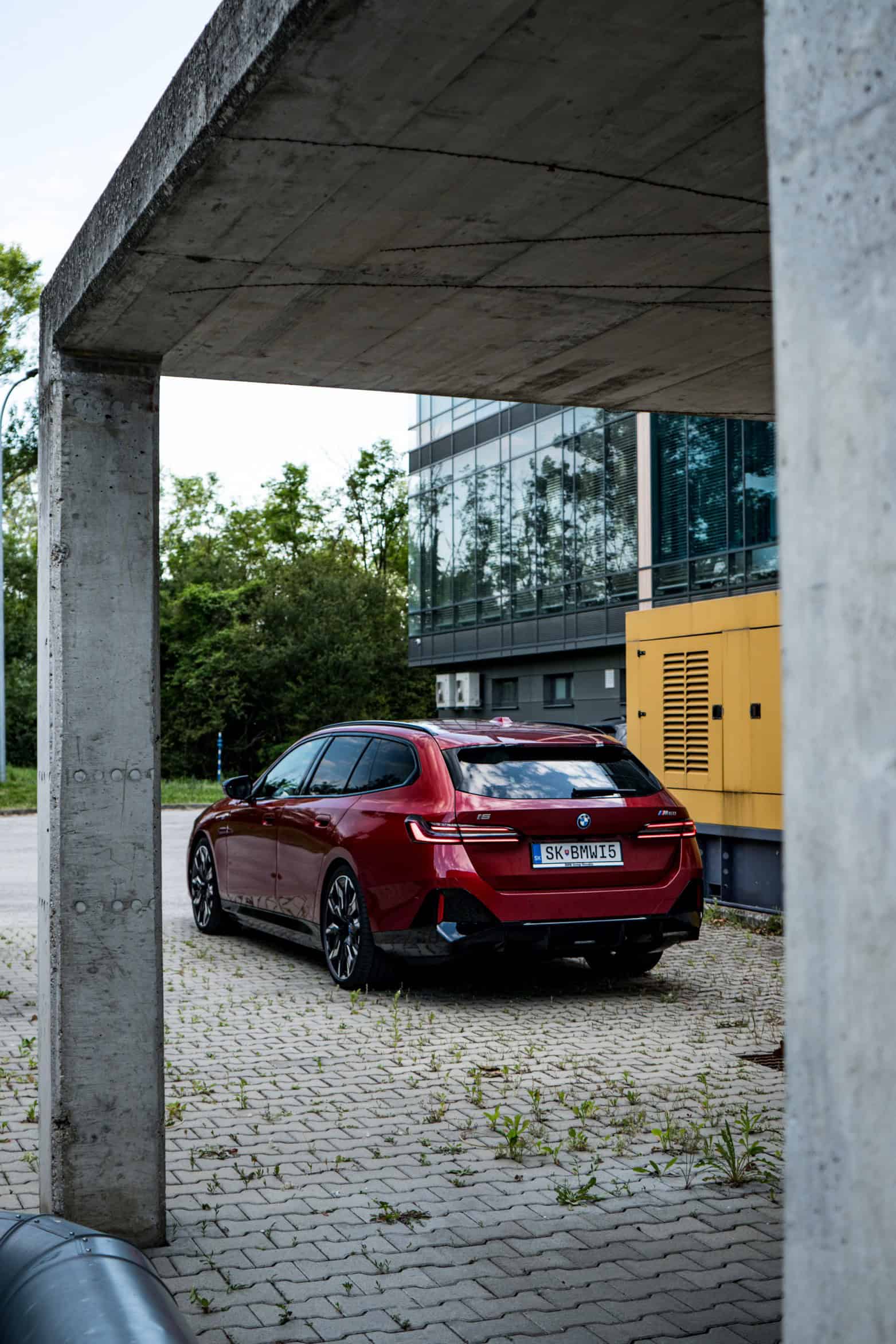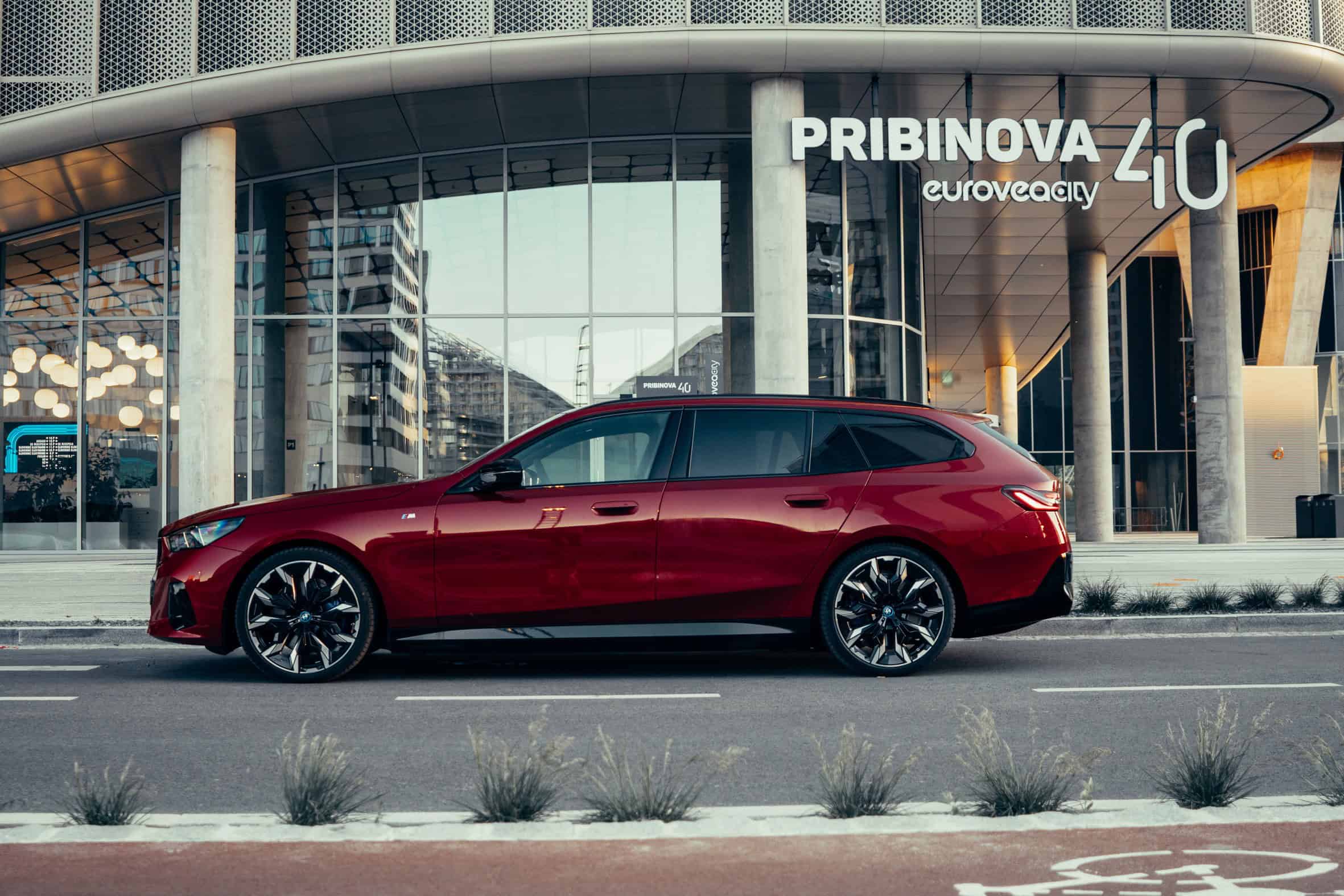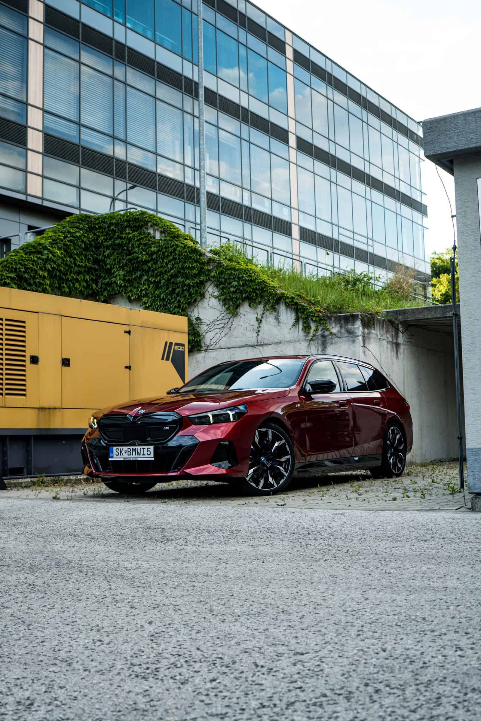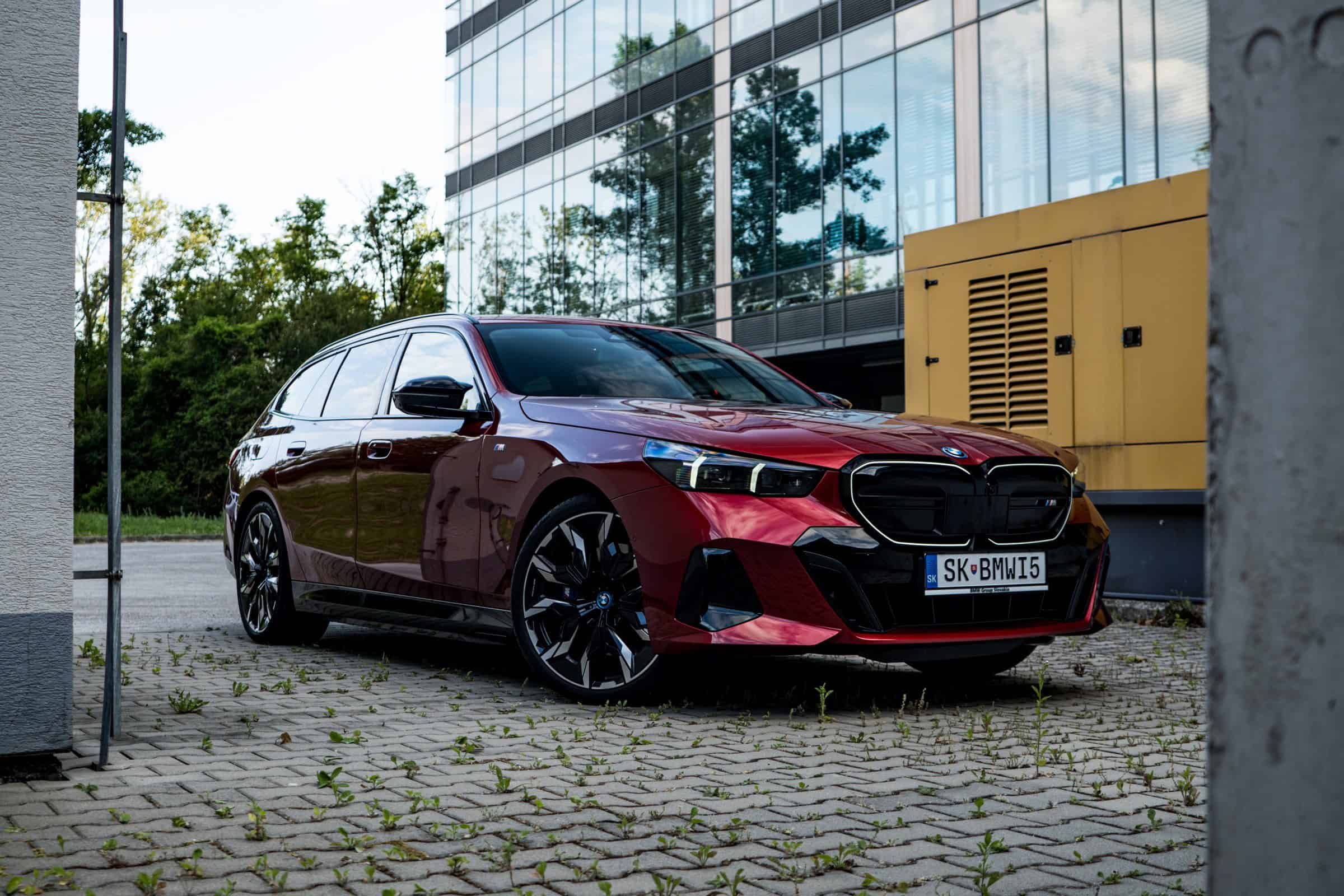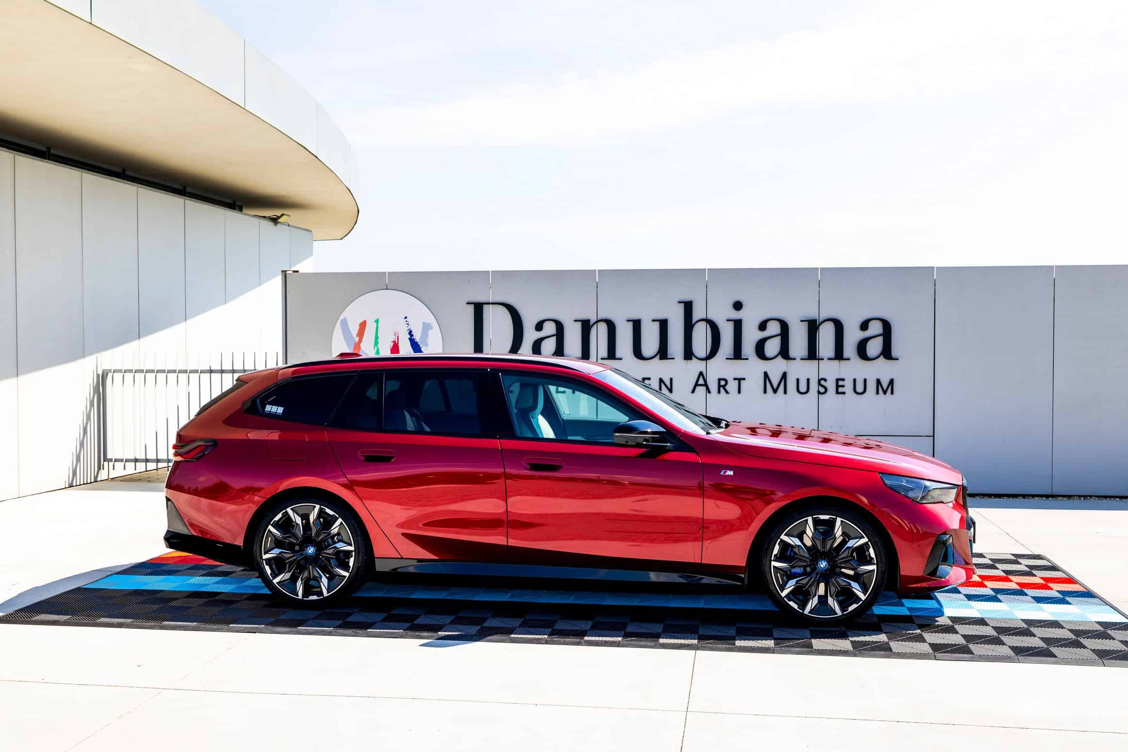 For the bigger 7 Series, the German luxury brand does offer an M760e as a plug-in hybrid with an inline-six. We haven’t heard anything about a hot PHEV being planned for the 5 Series. Consequently, the not-quite-M 5 Series is strictly an electric affair. BMW is showing it off as a more practical Touring with Fire Red paint. This color has a different name in North America where it’s called Vegas Red.