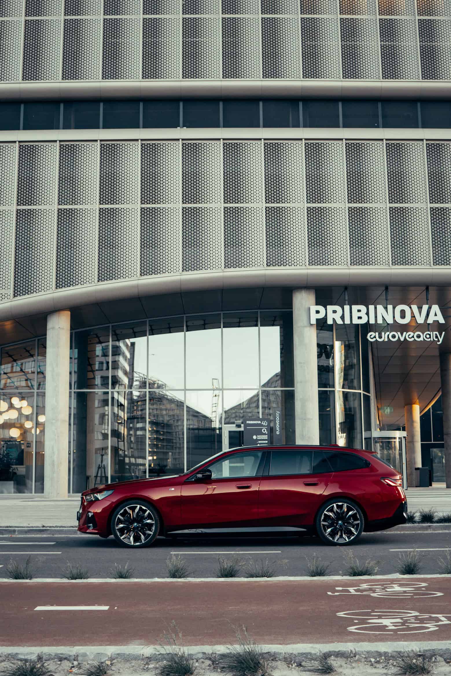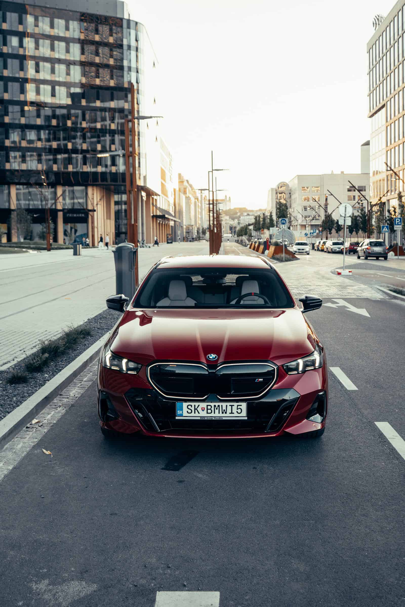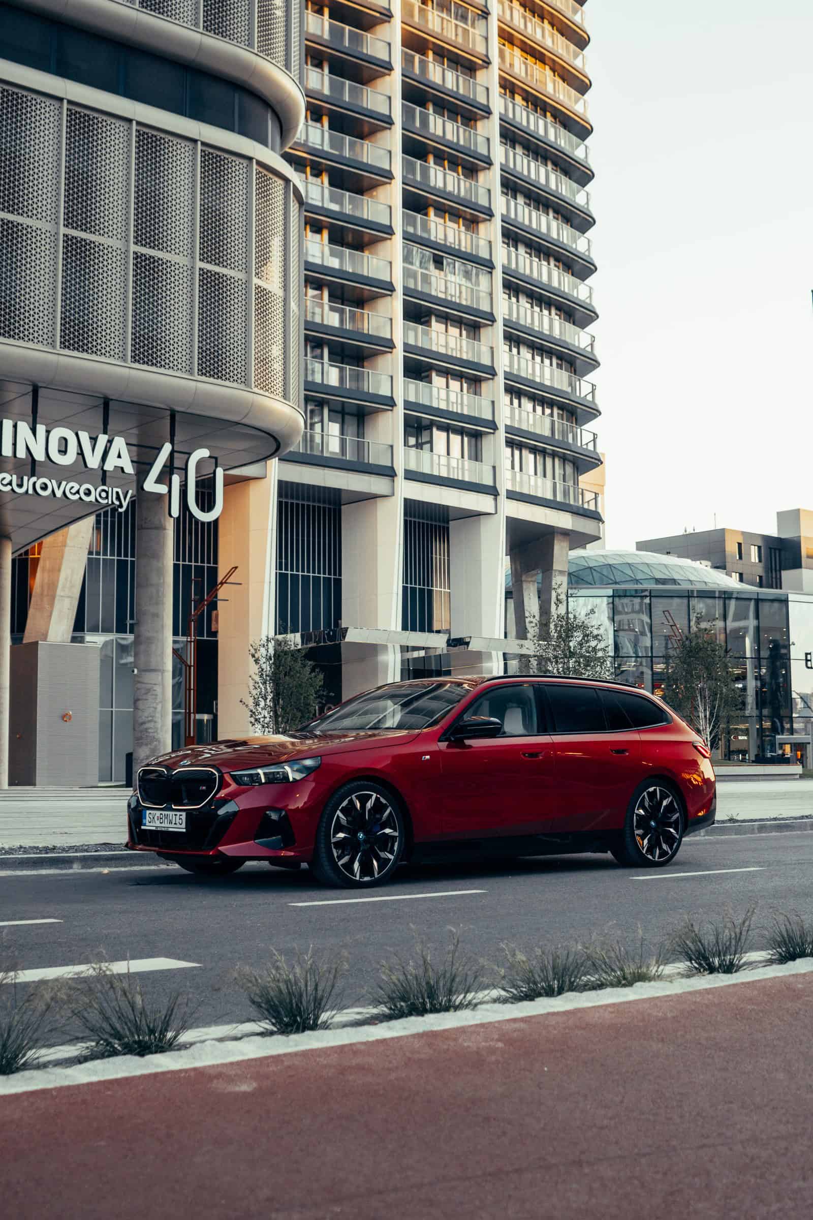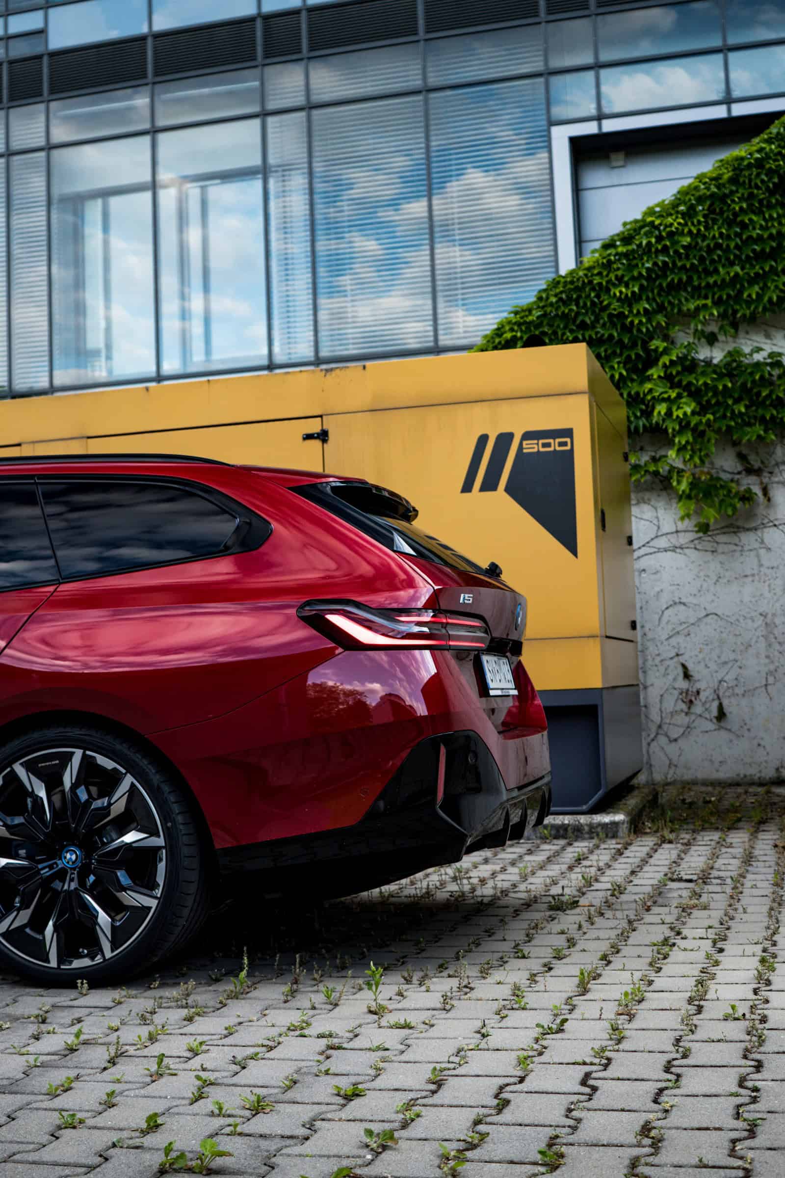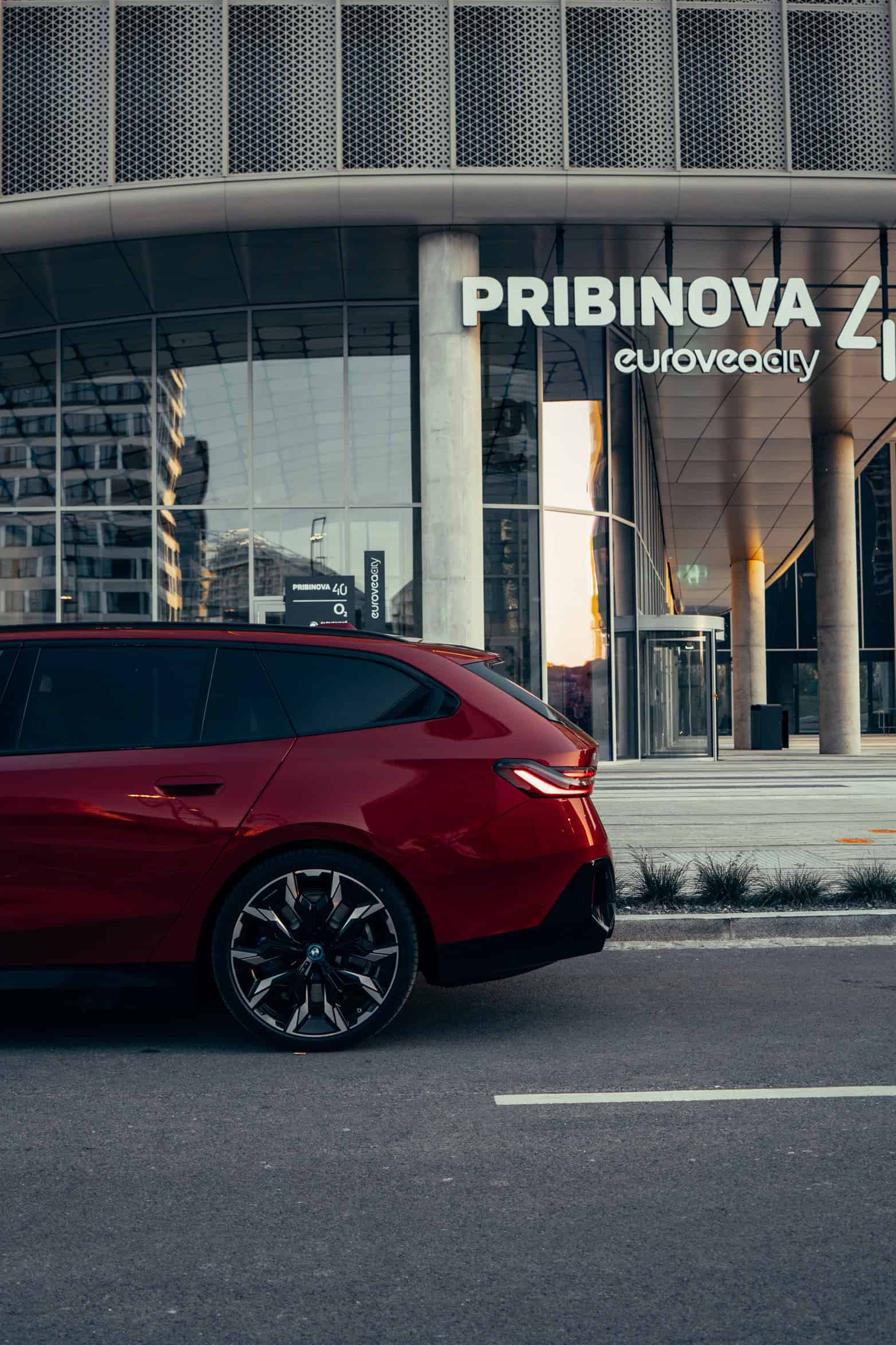 For the bigger 7 Series, the German luxury brand does offer an M760e as a plug-in hybrid with an inline-six. We haven’t heard anything about a hot PHEV being planned for the 5 Series. Consequently, the not-quite-M 5 Series is strictly an electric affair. BMW is showing it off as a more practical Touring with Fire Red paint. This color has a different name in North America where it’s called Vegas Red.