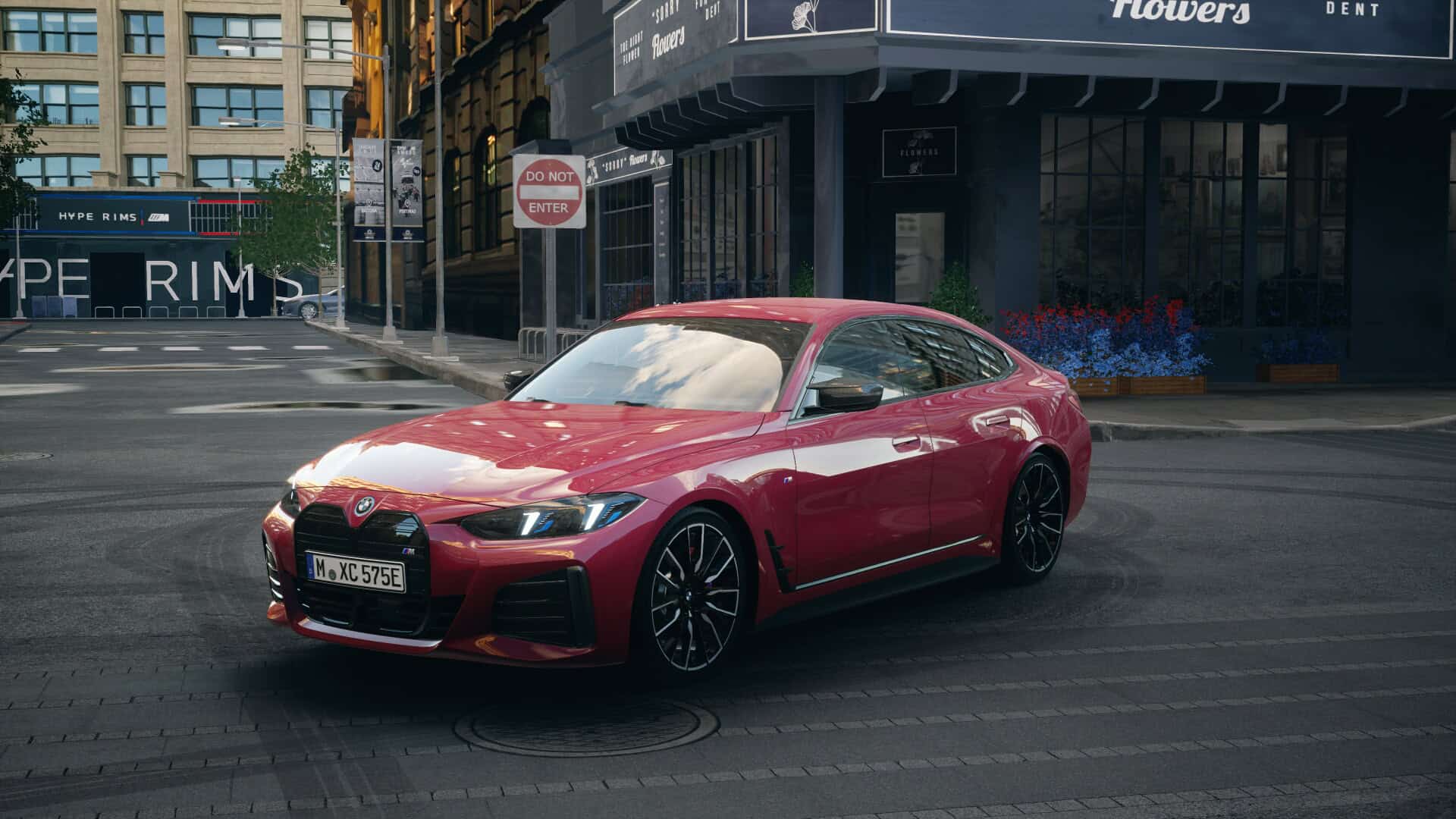 BMW shows off the pricy i4 M50 with the largest wheels, a 20-inch set (868 M style). If you know where to look, there are other noticeable tweaks. The car has black badges, a red tow strap, M Performance side decals, and carbon mirror caps. With the LCI, the sportiest i4 of the bunch has gained a different kidney grille design with horizontal slats.