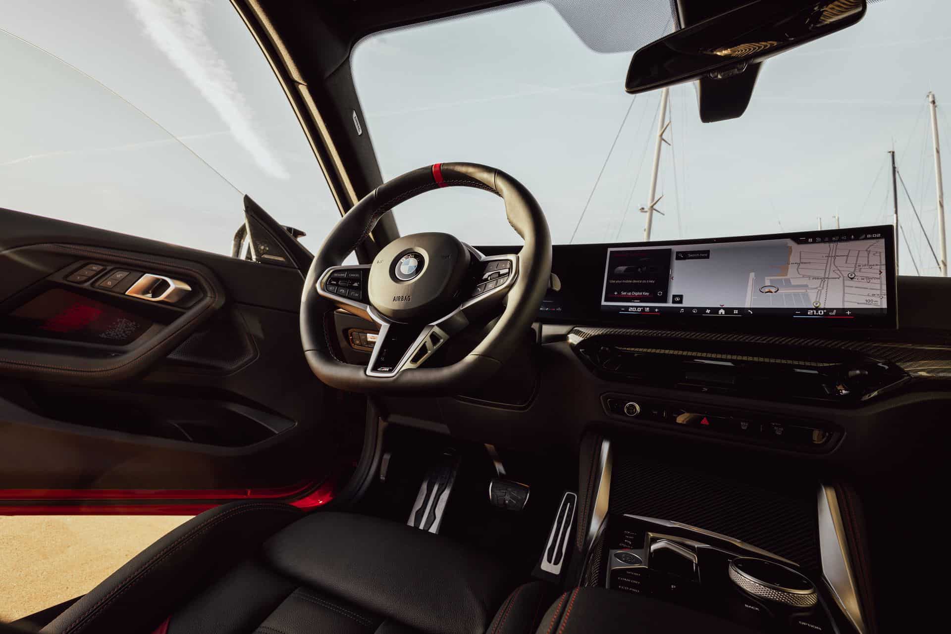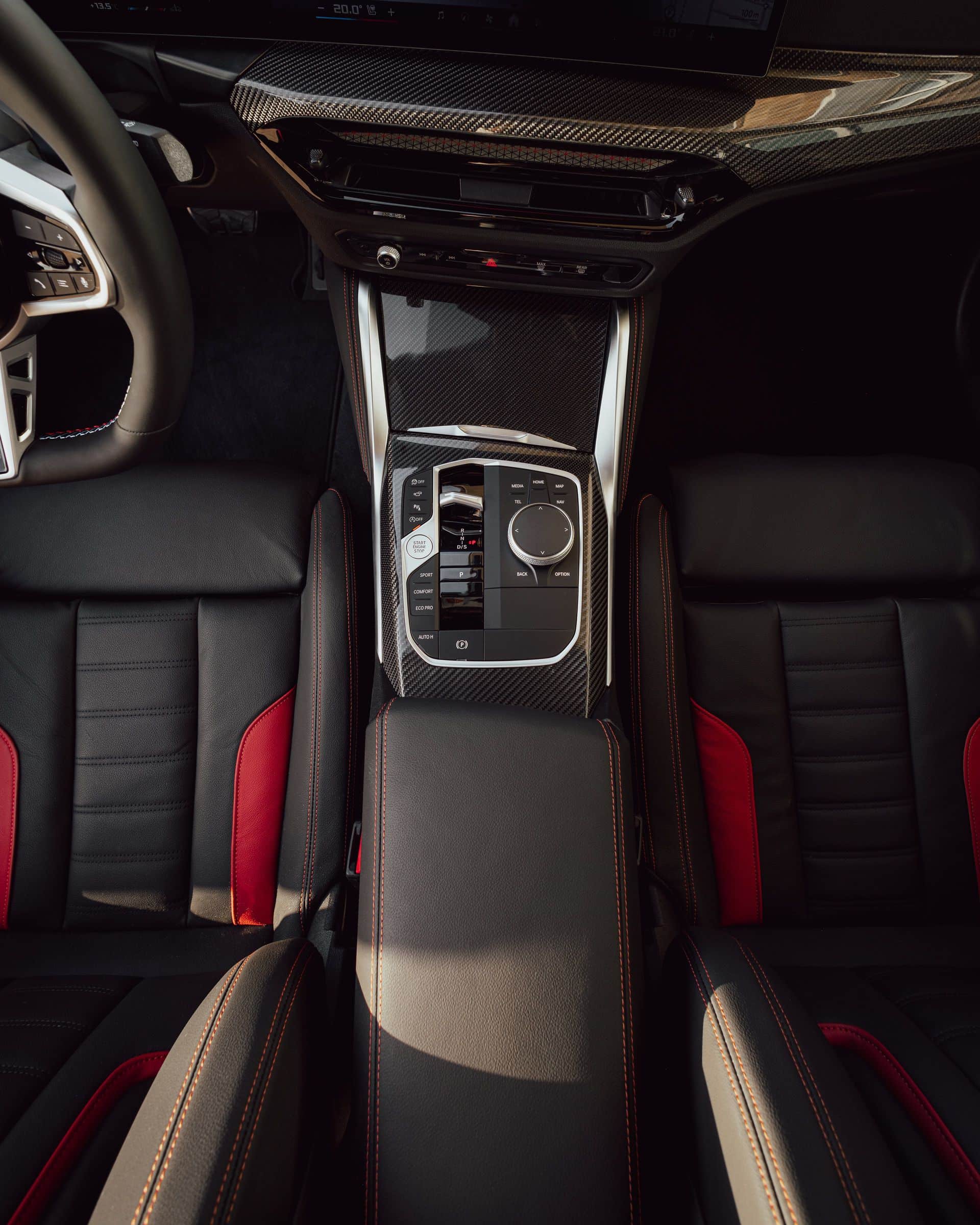 What else is new? Well, not much. The iDrive runs on 8.5 and there’s now nine-color customizable ambient lighting surrounding the central air vents. The seats can be covered in perforated Sensatec (synthetic leather) available in four colors, such as the newly added Tacora Red. Optionally, you can have Vernasca (real leather) in four colors, including a black and red combo.