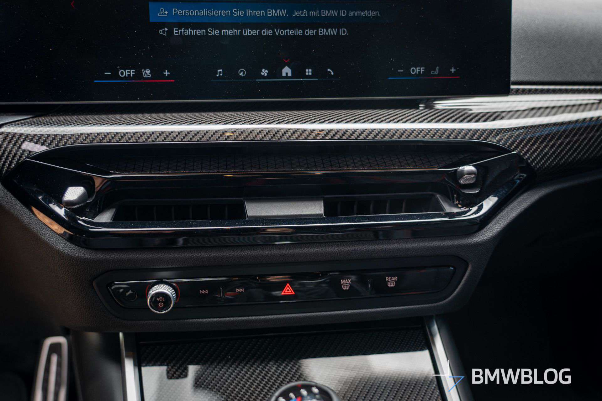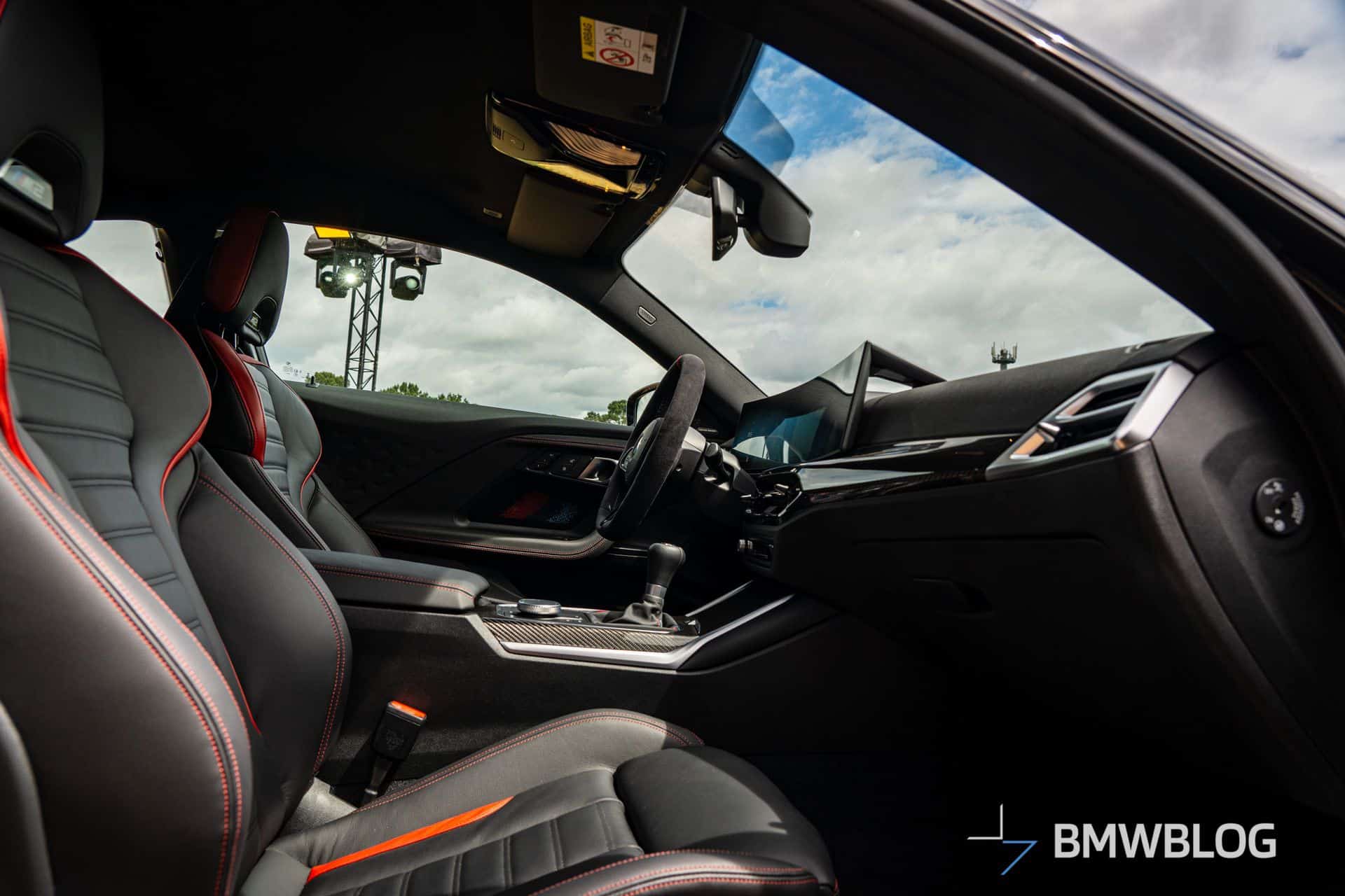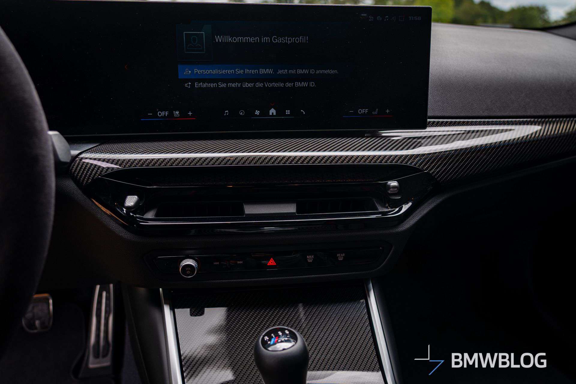 Eagle-eyed readers will see the slightly modified adjustment controls for the air vents. BMW opted to showcase the mildly revised M2 with the black and red Vernasca leather, another novelty for 2025. While a Dark Graphite matt trim is now standard in Europe, this manual-equipped car flaunts carbon fiber on the dashboard and center console.