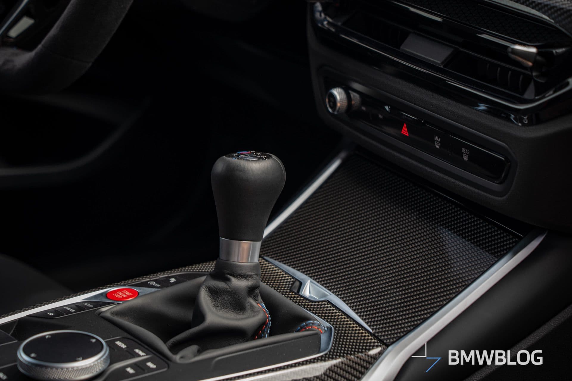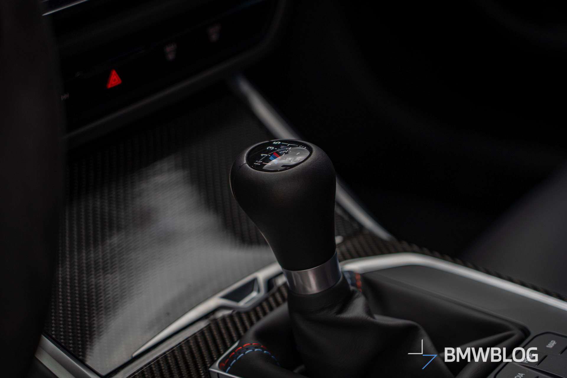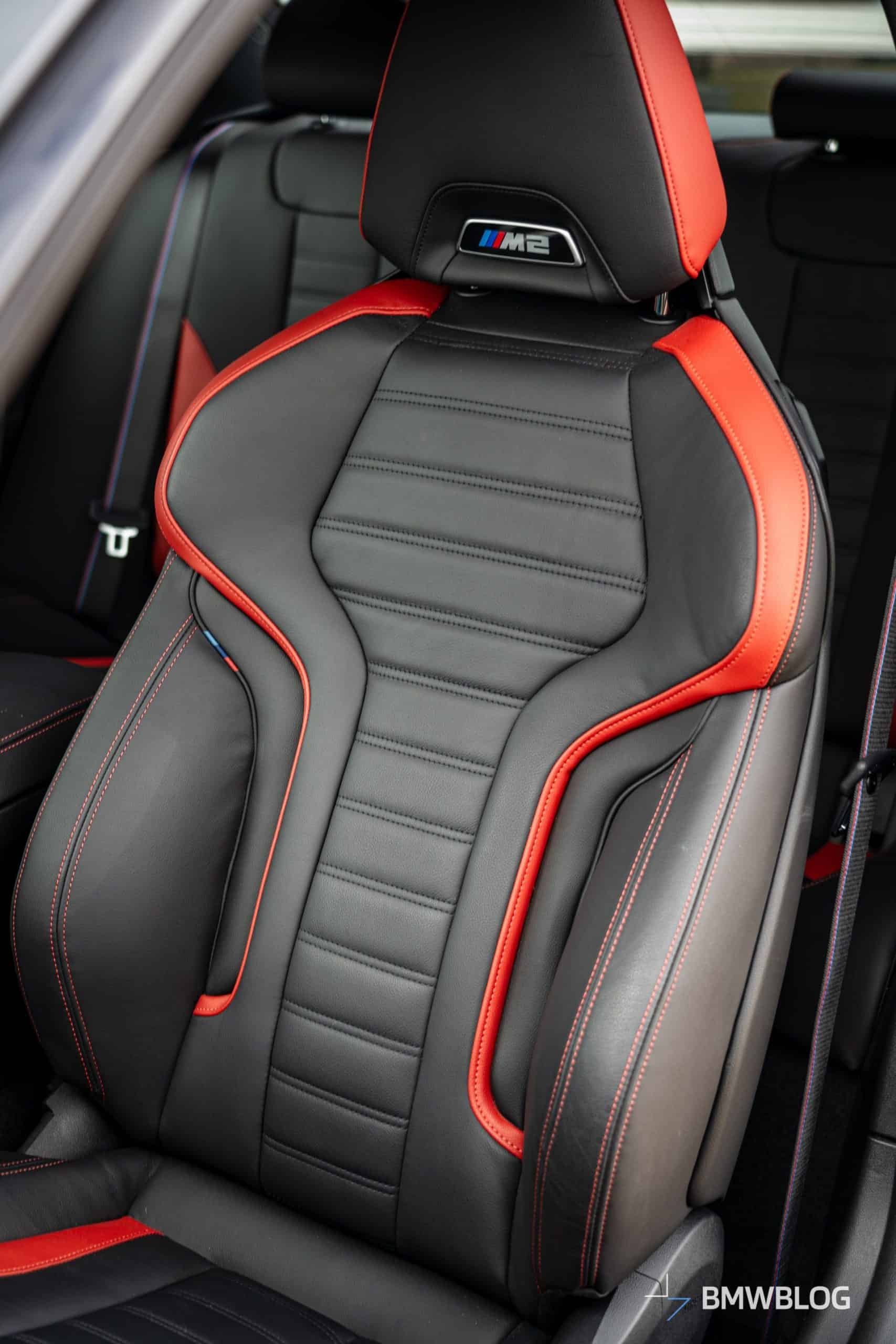 Eagle-eyed readers will see the slightly modified adjustment controls for the air vents. BMW opted to showcase the mildly revised M2 with the black and red Vernasca leather, another novelty for 2025. While a Dark Graphite matt trim is now standard in Europe, this manual-equipped car flaunts carbon fiber on the dashboard and center console.