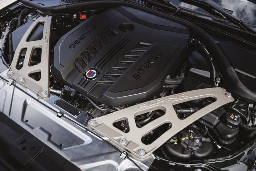The final touches are the ALPINA crest on the carbon dashboard inlay and the newly designed production number plate with the car’s individual serial number. The new engine compartment badge also bears this individual number, plus the signatures of all three ALPINA family members: Andreas, Burkard, and Florian Bovensiepen.