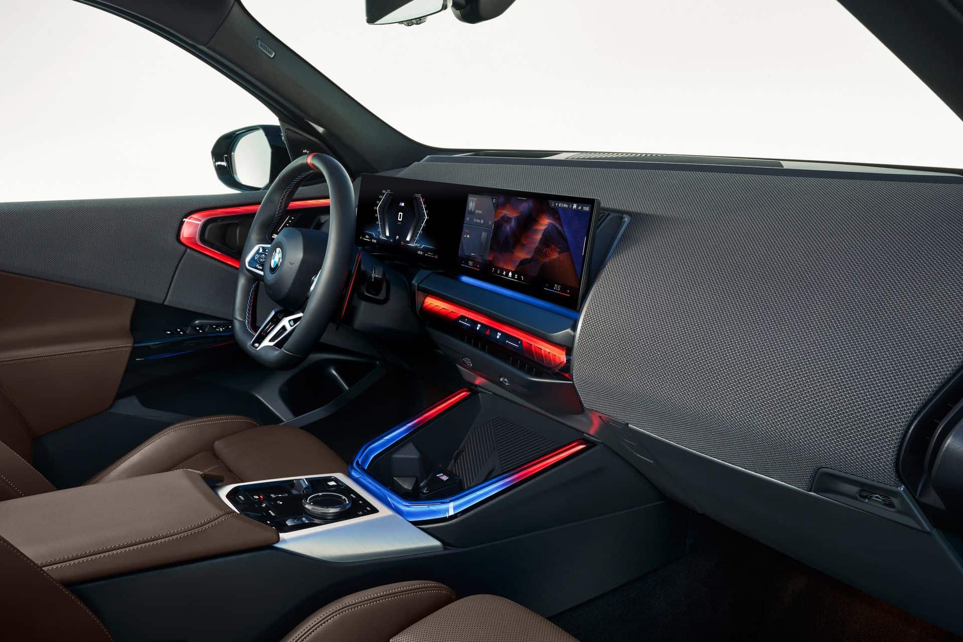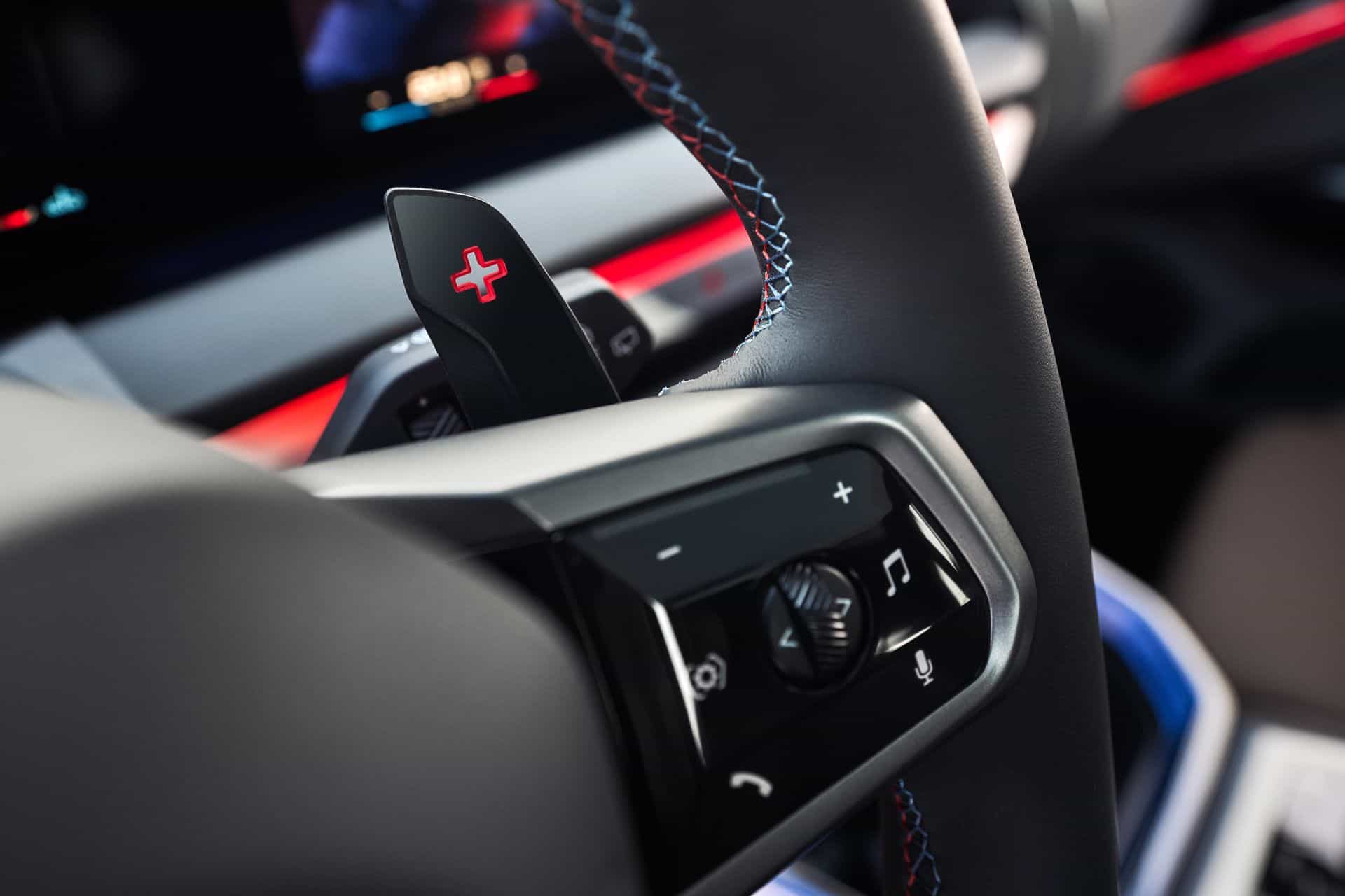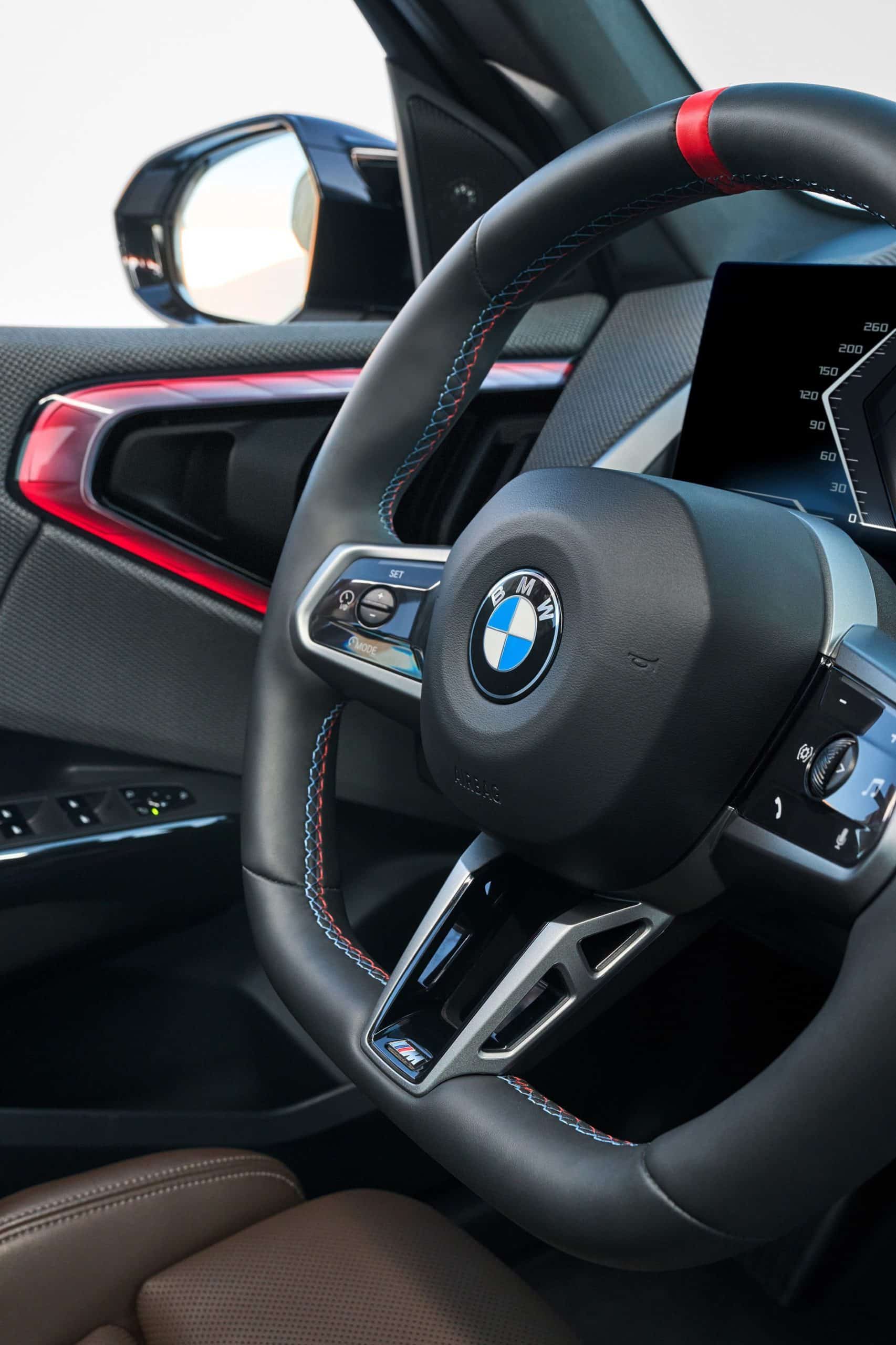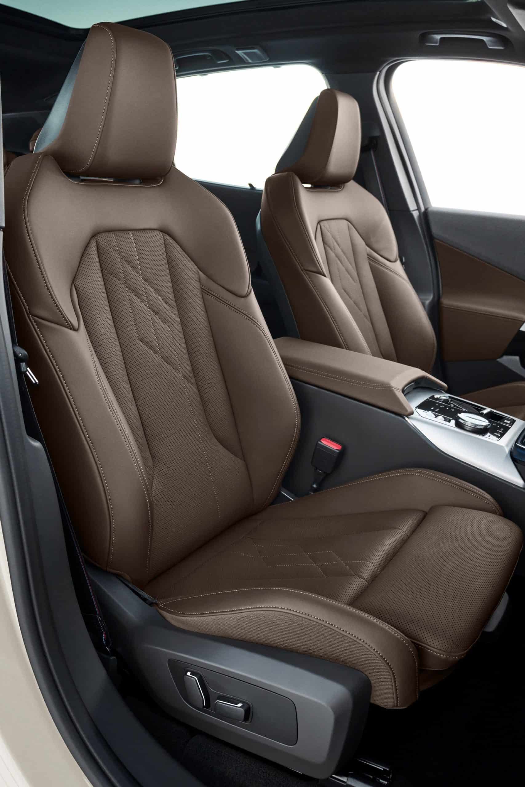 The visual upgrades continue inside where the X3 M50 features a flat-bottomed steering wheel. It has sports seats wrapped in Veganza (artificial leather) and Alcantara, with a red 12 o’clock mark. BMW managed to sneak in an M logo on the center console, ahead of the wireless charging pad. The “world’s most powerful letter” can also be found on the regular X3s with the M Sport Package.