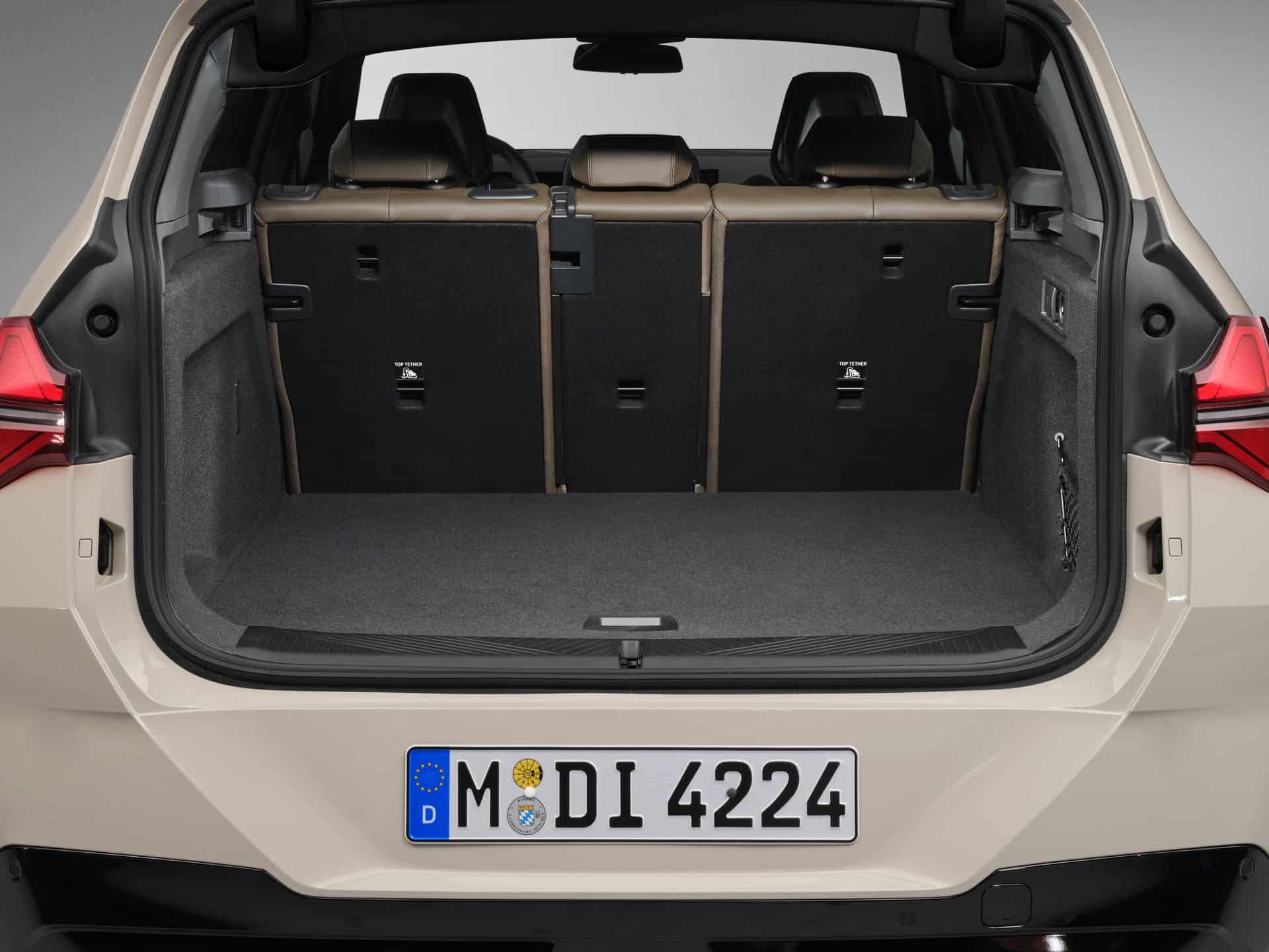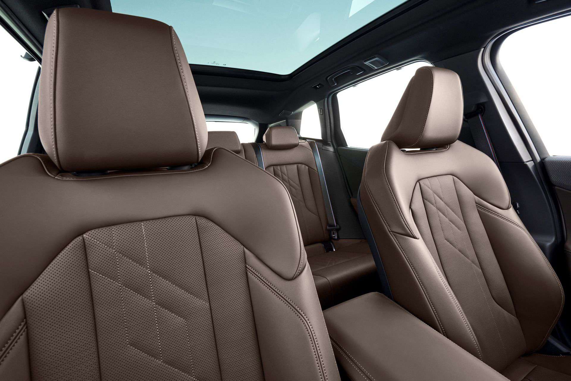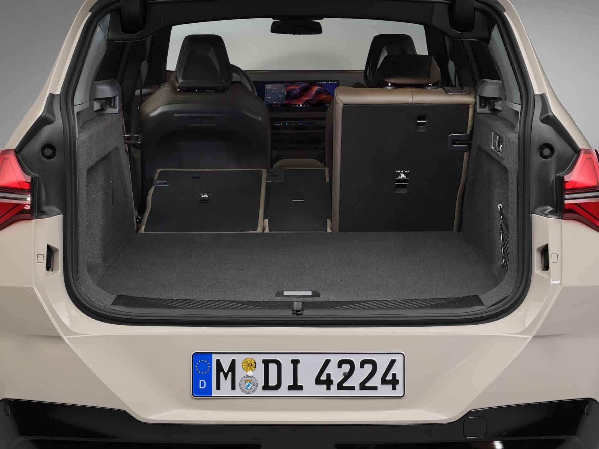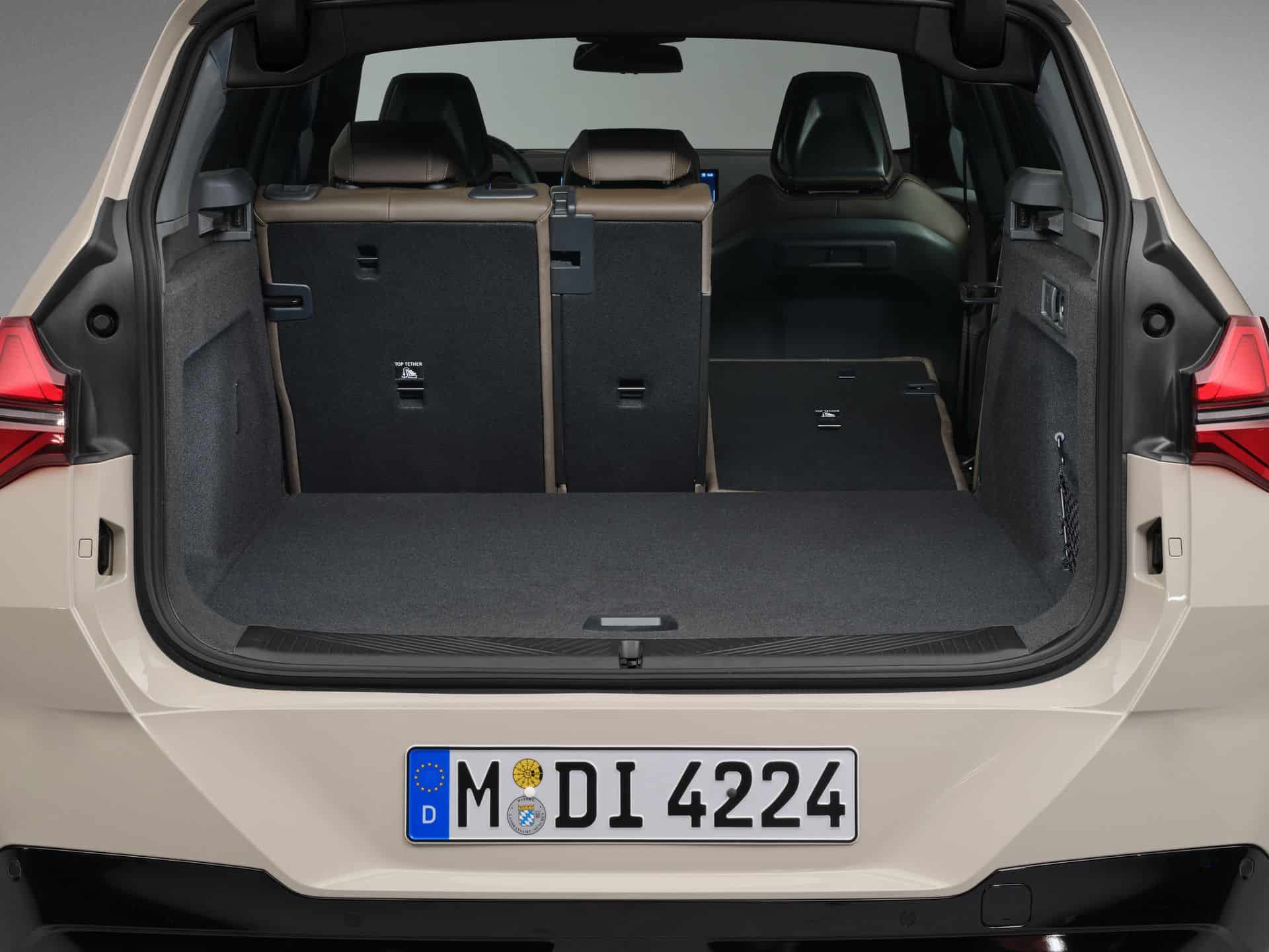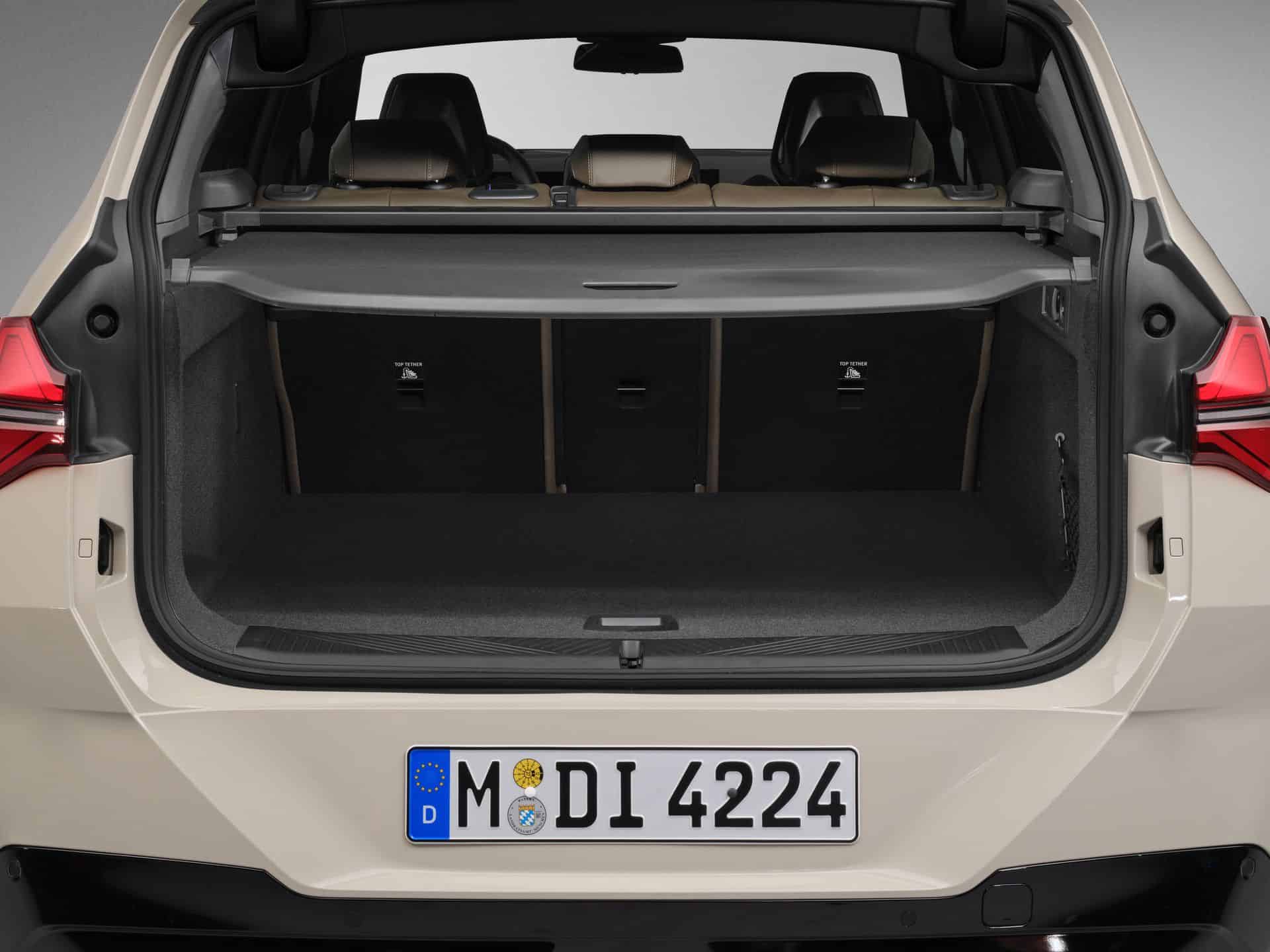 The visual upgrades continue inside where the X3 M50 features a flat-bottomed steering wheel. It has sports seats wrapped in Veganza (artificial leather) and Alcantara, with a red 12 o’clock mark. BMW managed to sneak in an M logo on the center console, ahead of the wireless charging pad. The “world’s most powerful letter” can also be found on the regular X3s with the M Sport Package.