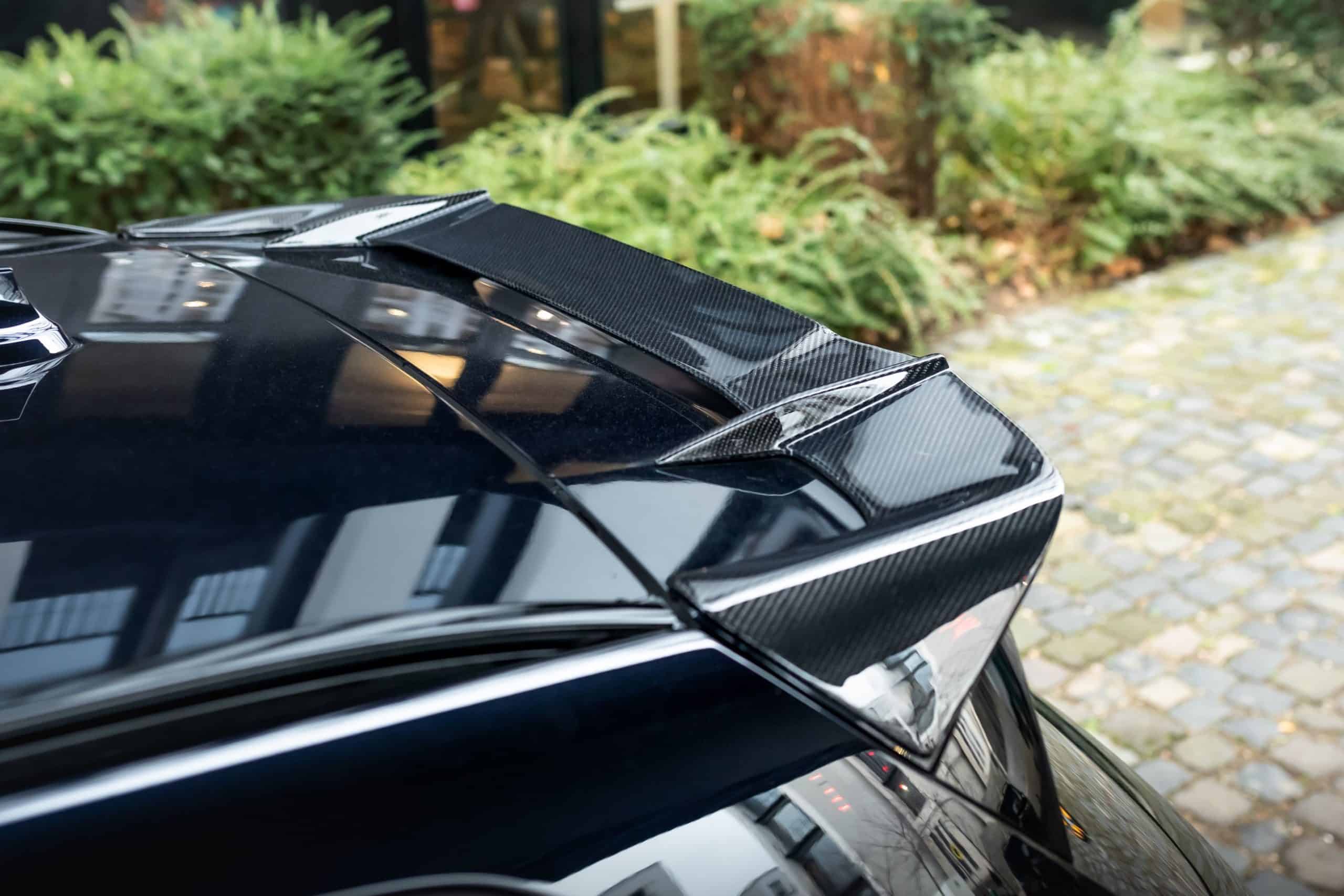 Elsewhere, Manhart fiddled with the vehicle’s appearance by mounting a subtle aerodynamic body kit. The tasteful appearance package made from carbon fiber comprises a front spoiler and side skirts. At the back, the diffuser and roof spoiler lend the X3 M Competition a more aggressive stance. The tuner is known for applying striking accents in gold but went with more subdued dark blue stripes for this build.