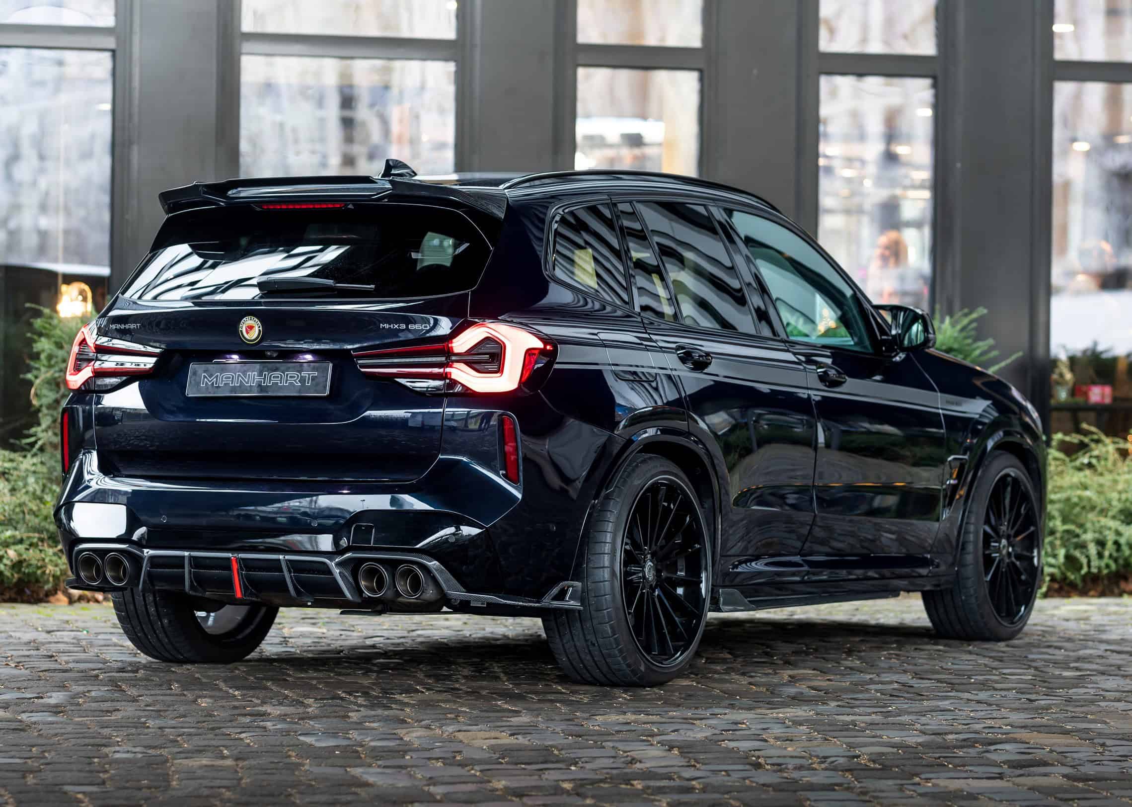 Aside from giving the twin-turbo engine a healthy boost, Manhart made other changes to this X3 M. For example, there’s a custom stainless steel exhaust system with carbon-coated quad tips. These 100-mm finishers can be optionally had with ceramic coating. The aftermarket specialist got rid of the OEM wheels to make room for its own 22-inch set. Those multi-spoke alloys with silver accents come wrapped in 255/35 ZR22 front and 295/30 ZR22 rear tires.