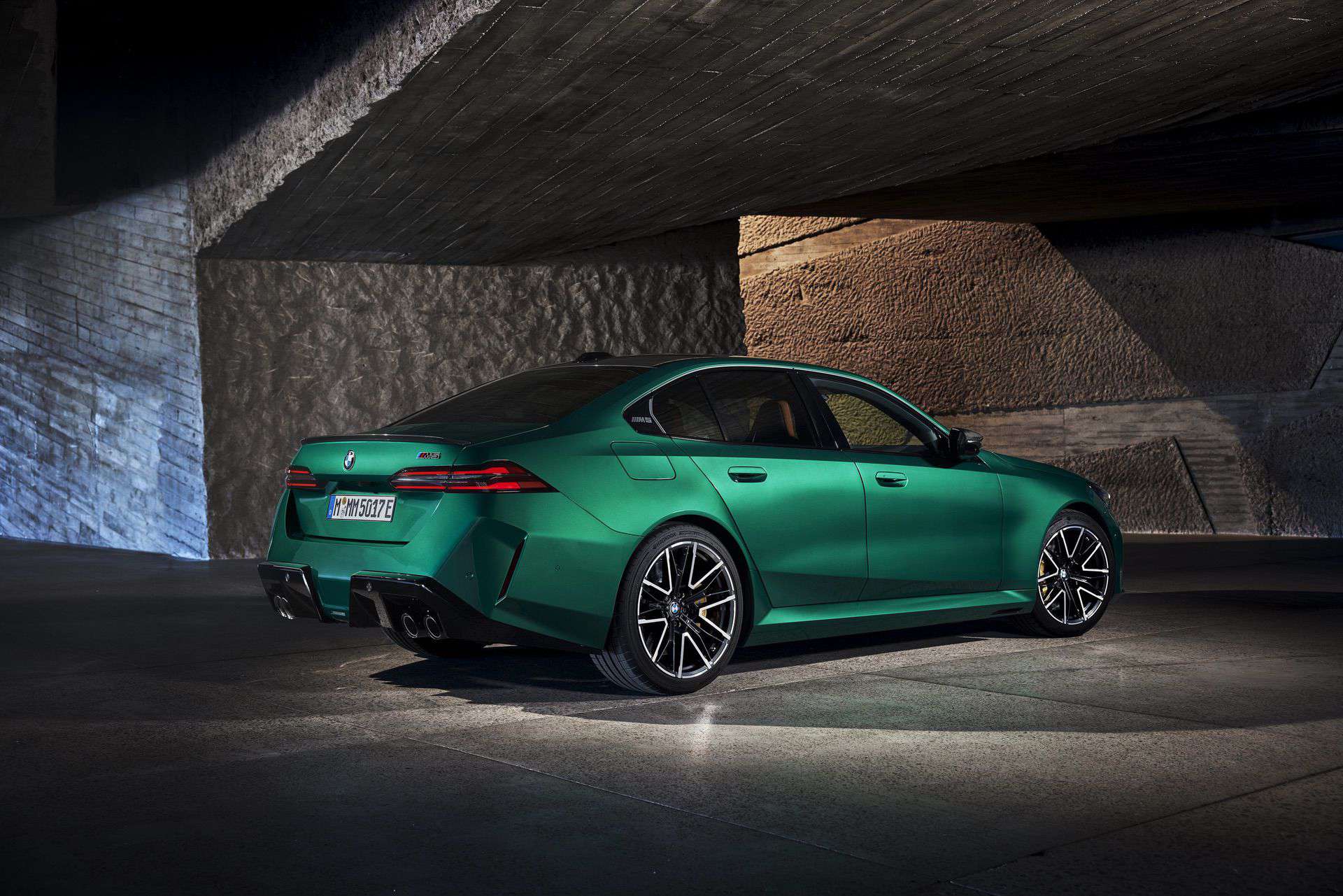 The 2025 BMW M5 rides on staggered wheels with 20-inch front and 21-inch rear alloys featuring 285/40 ZR20 and 295/35 ZR21 tires, respectively. They’re a size larger than before and come with performance rubber as standard. The compound brakes have 410-mm front discs whereas the carbon-ceramic setup brings bigger 420-mm discs. Both use perforated discs but only the upgraded set has the signature gold-painted calipers.