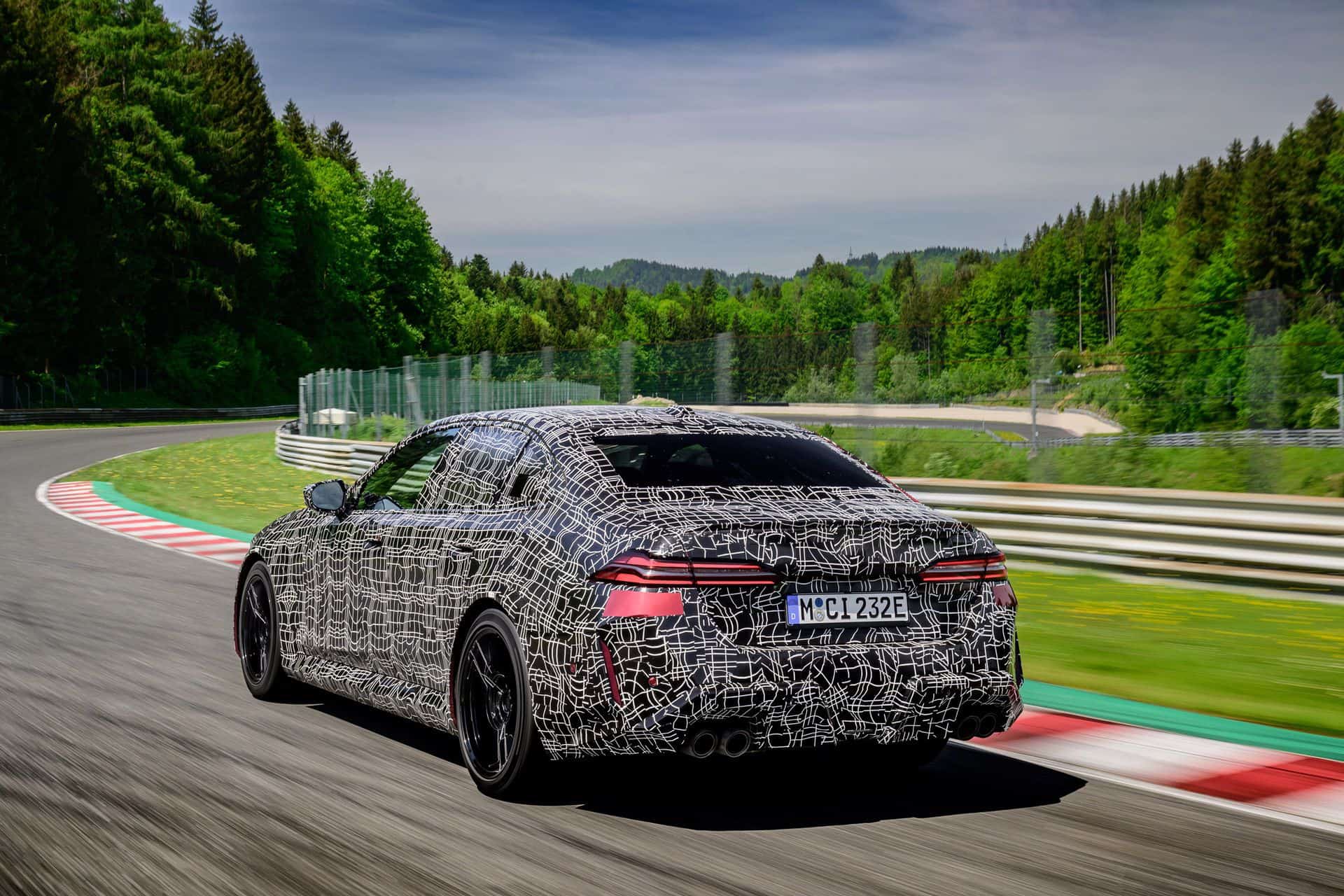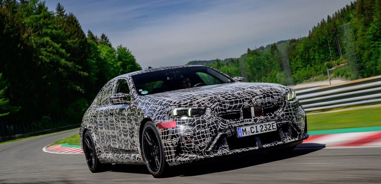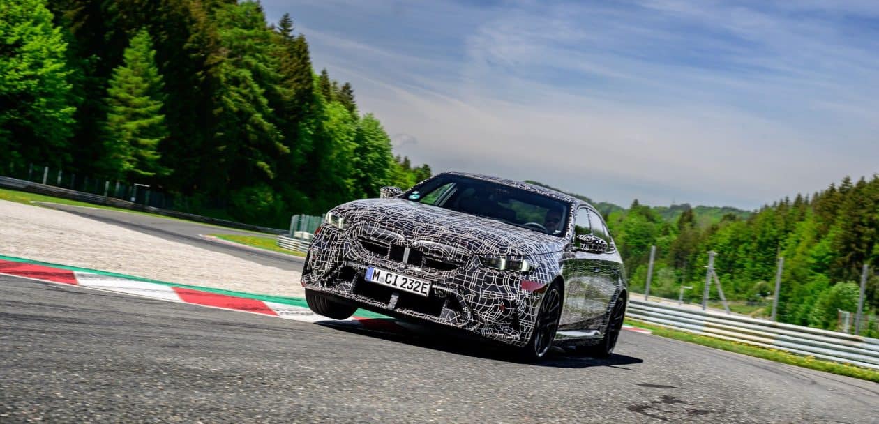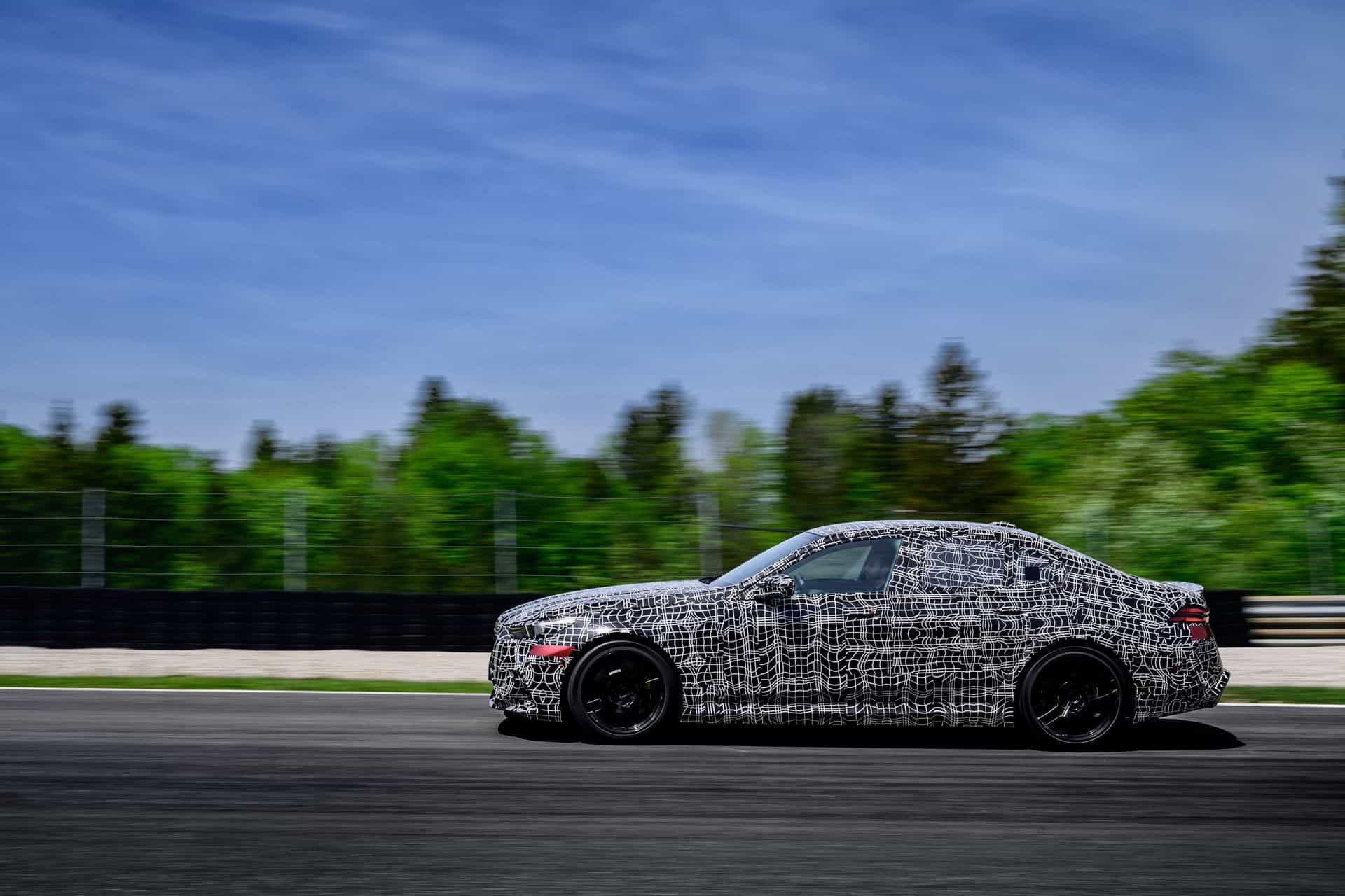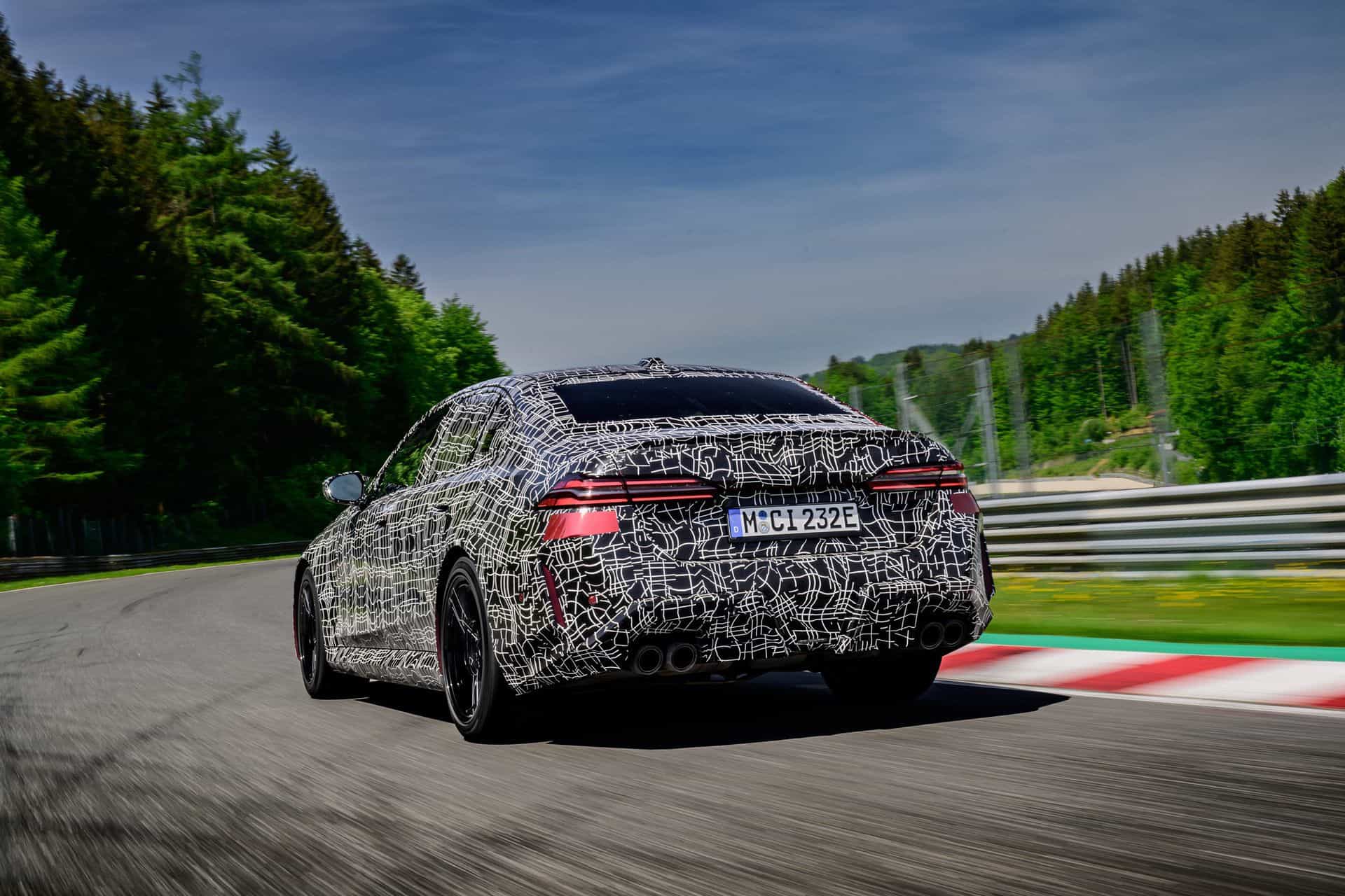 In May, BMW invited us to a track day at the iconic Salzburgring. At the time, the new M5 was still under wraps or hidden in a backroom where I had a chance to film it, but a camouflaged prototype was ready for us. The near-production-ready test mule featured the drivetrain we will see on the road this summer. By combining the S68 twin-turbo, 4.4-liter gas engine with an electric motor, the G90 M5 achieves a total system output of 717 horsepower and 738 pound-feet (1,000 Newton meters) of torque. The S68 combustion engine produces 577 hp and 553 lb-ft (750 Nm) of torque, with peak torque available between 1,800 and 5,400 rpm. The engine delivers its maximum output from 5,600 to 6,500 rpm and has a rev limit of 7,200 rpm. Built into the eight-speed automatic transmission, the e-motor generates 194 hp and 207 lb-ft (280 Nm) of torque.