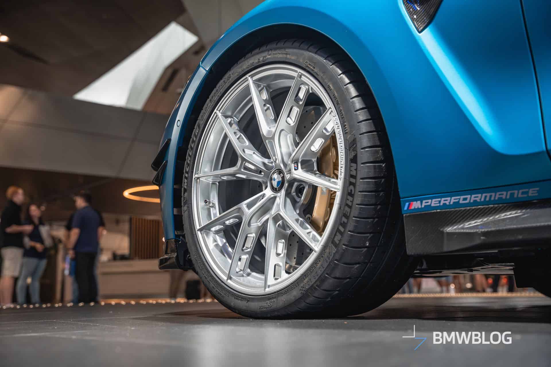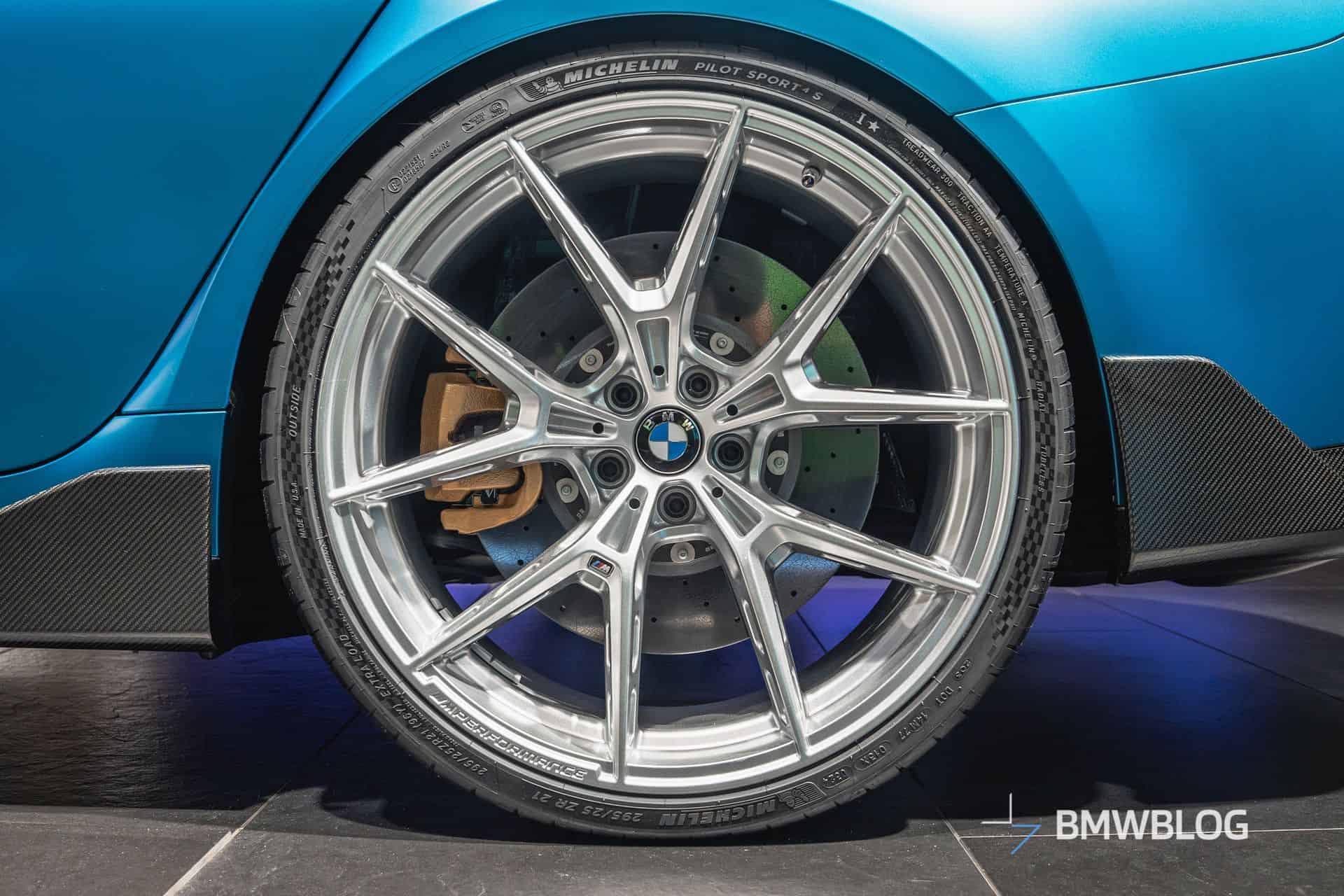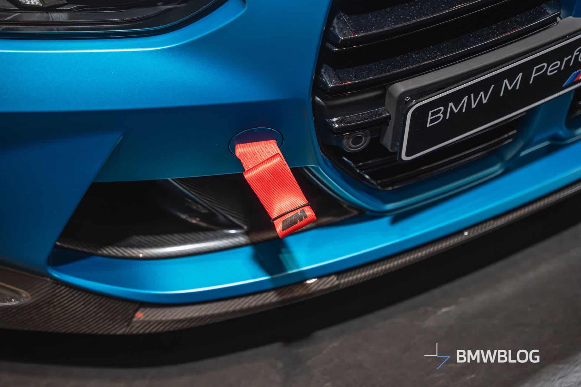 With beefy side skirts and carbon winglets, the car looks muscular from the side. We could do without the dual canards on the front bumper as we reckon those look the best on race cars. BMW went to town with the optional goodies, even fitting a red tow strap featuring “the world’s most powerful letter.” The M Performance decal behind the front wheels is surprisingly subtle.