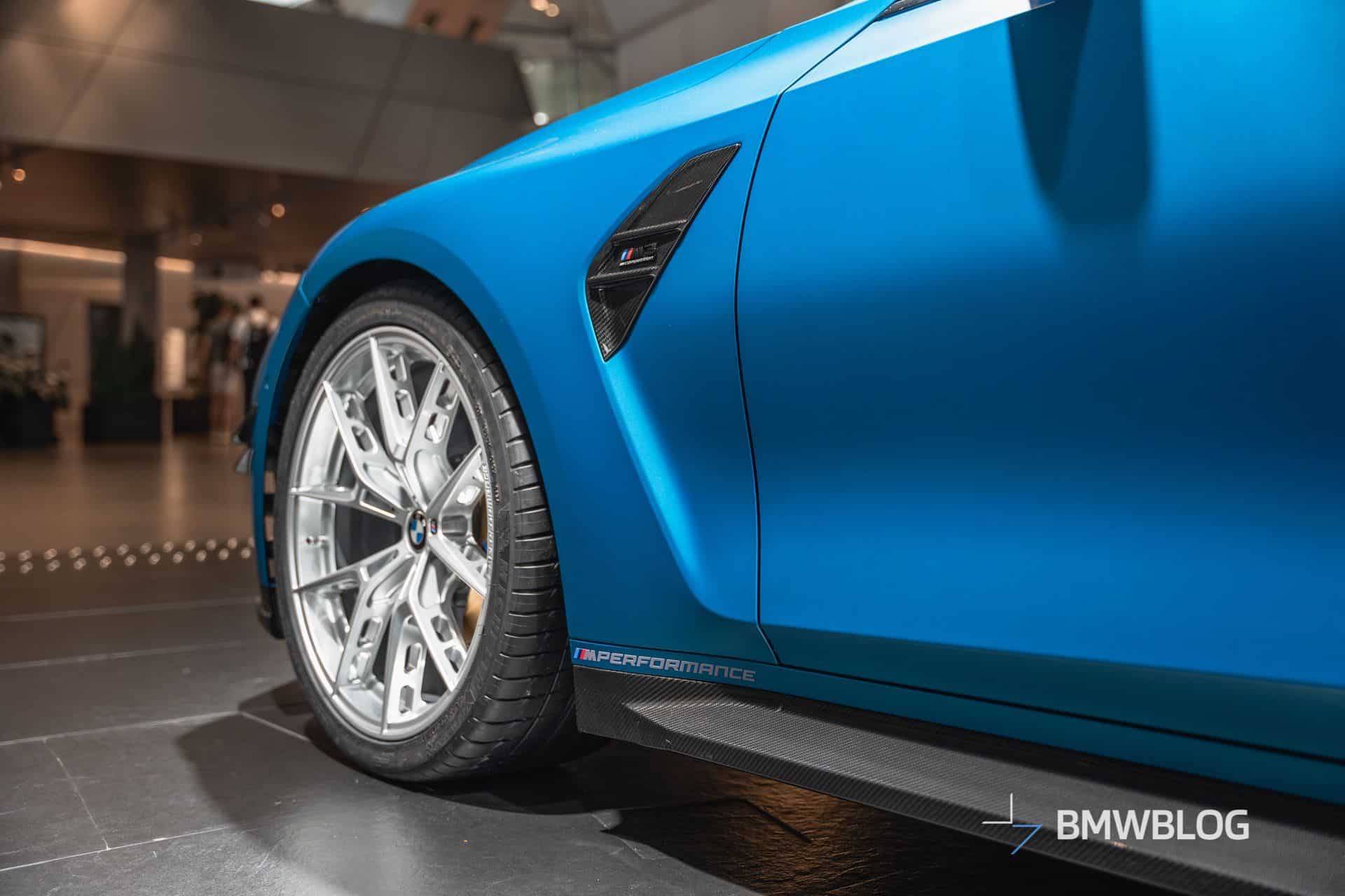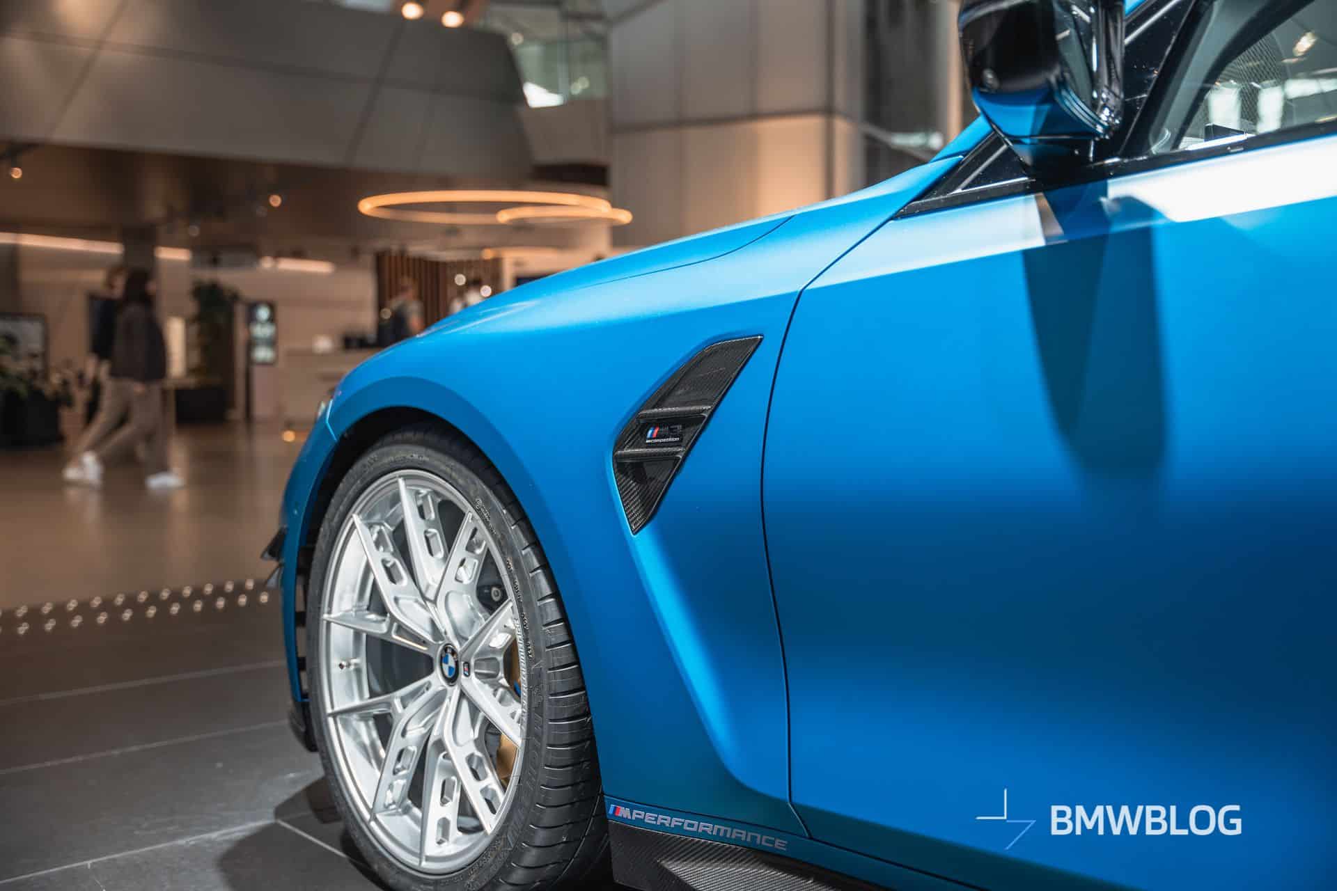 Frozen Tulum Blue is so rare that you can’t even find it on the dedicated BMW Individual Visualizer website. Codenamed P98, the matte color has been applied onto a 2025 M3 Competition Sedan that’s up on display at the BMW Welt. As if the paint job wasn’t special enough, this facelifted G80 is also brimming with M Performance Parts. It is missing the center-mounted quad exhaust, but maybe that’s for the better since the stacked tips look controversial.