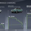 BMW was able to maximize their charging performance for a 400v architecture car. Once plugged in, the car quickly reached 205 kW charging speeds in under 30 seconds. In under a minute, the charging speeds hit 213 kW, higher than BMW’s claimed charging speeds, which was even more impressive given the lack of preconditioning. The charge rate stayed over 200 kW until after 25%. Then, it began to dip.
