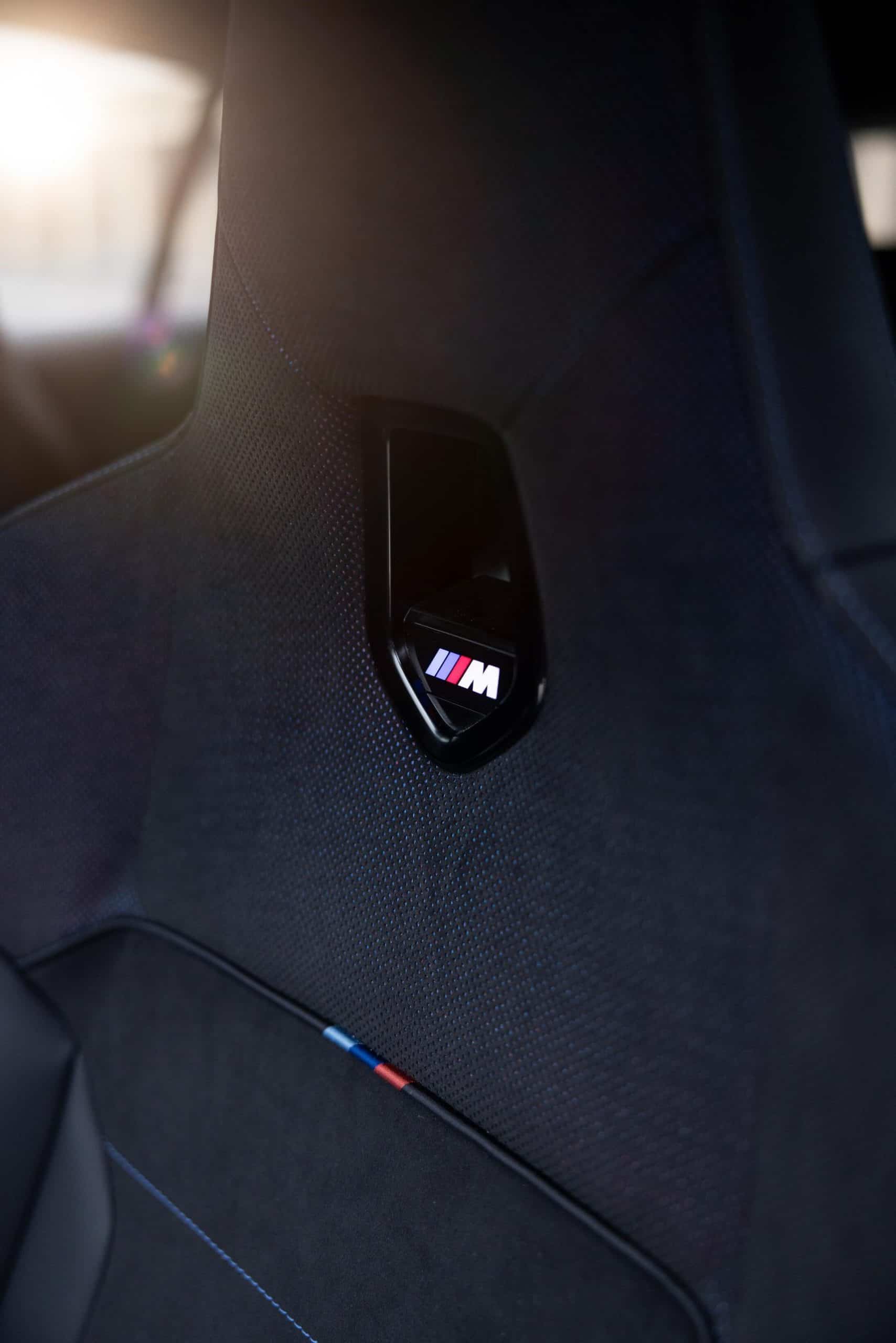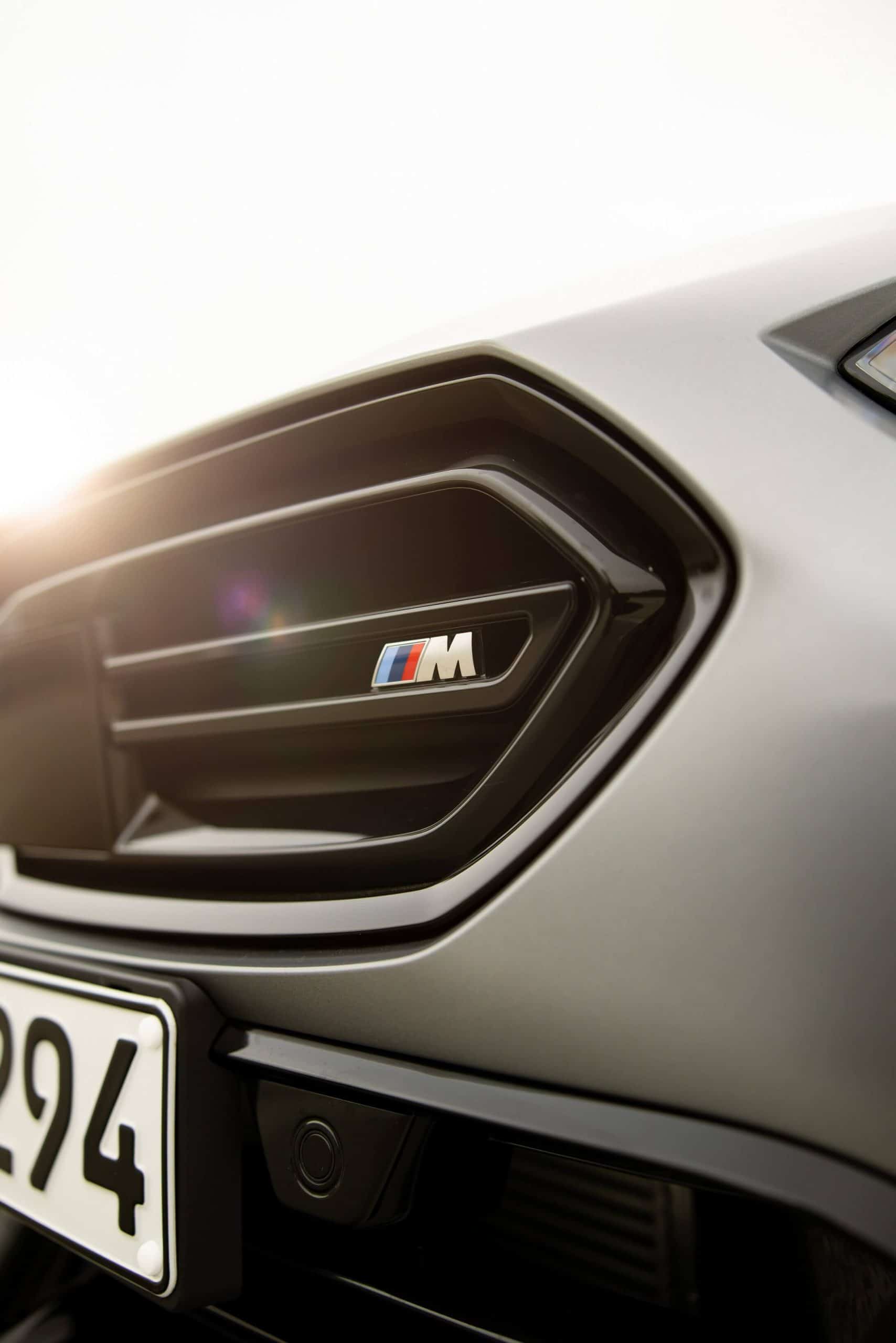 One questionable change is at the front where we’d honestly do without those glossy black add-on pieces. Perhaps the intent is to mimic canards but we’re not fans of those inserts. Extending to the sides of the car, the front spoiler lip is another upgrade from the M Performances Parts catalog. Rounding off the changes on the outside are the carbon shark fin antenna, chunkier side skirts, and branded decals. Oh, there’s also a red tow strap with M branding, of course.