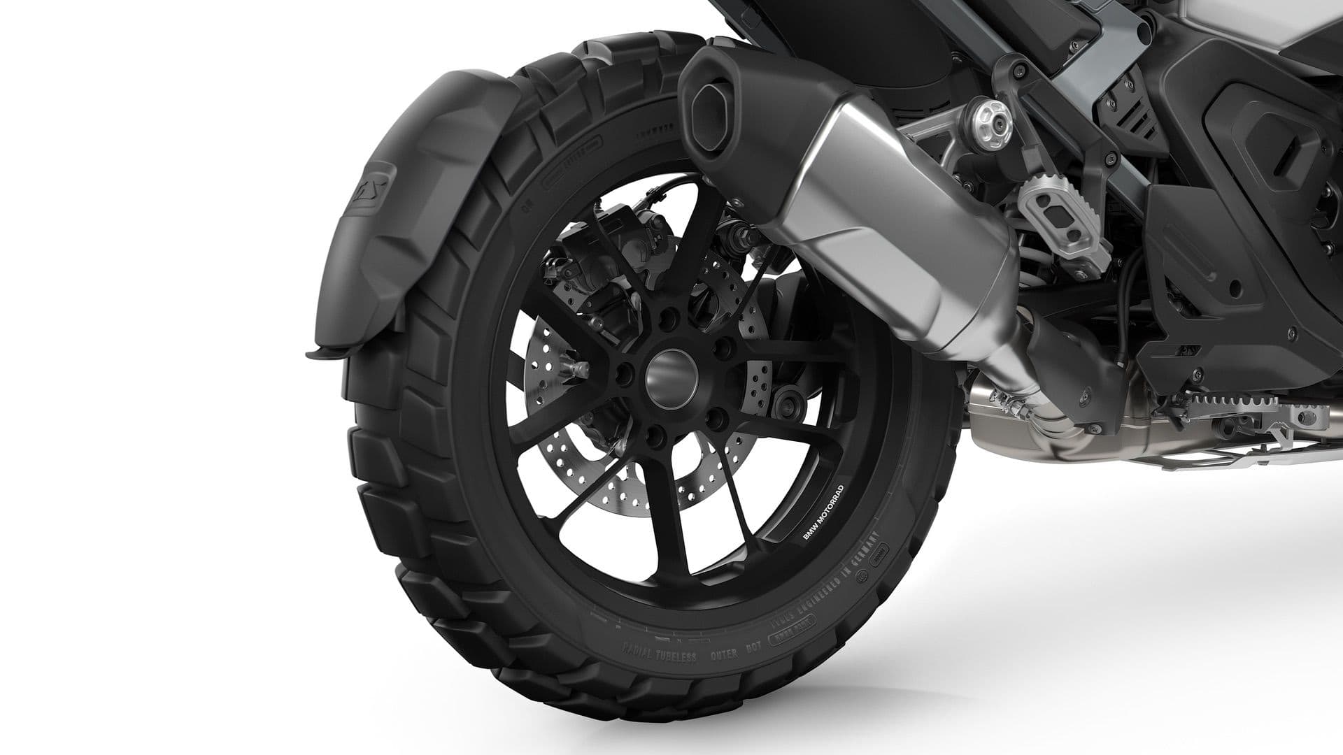 The R 1300 GS Adventure introduces a new steel sheet metal main frame and an aluminum rear frame, providing superior stiffness and modularity. The EVO Telelever front wheel guide and EVO Paralever rear wheel guide offer exceptional steering precision and ride stability, making it an ideal choice for both on-road and off-road adventures.
