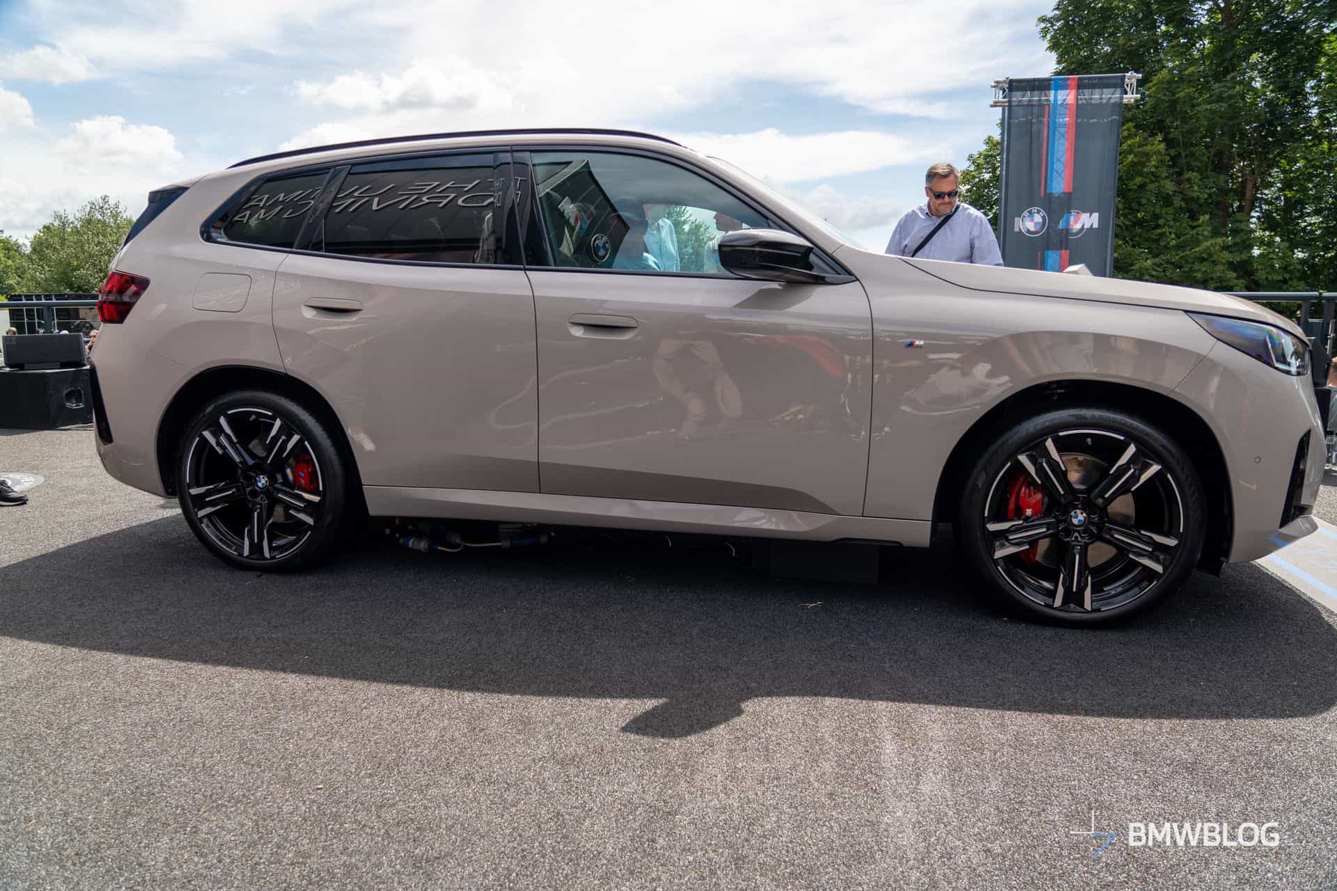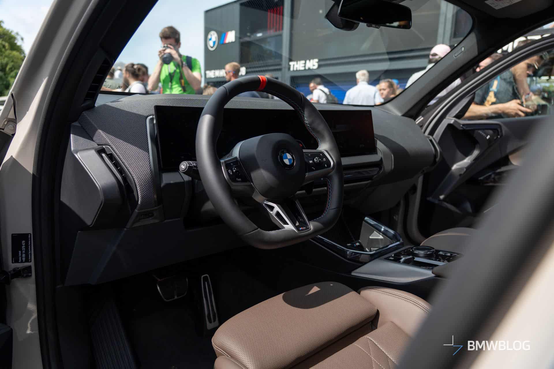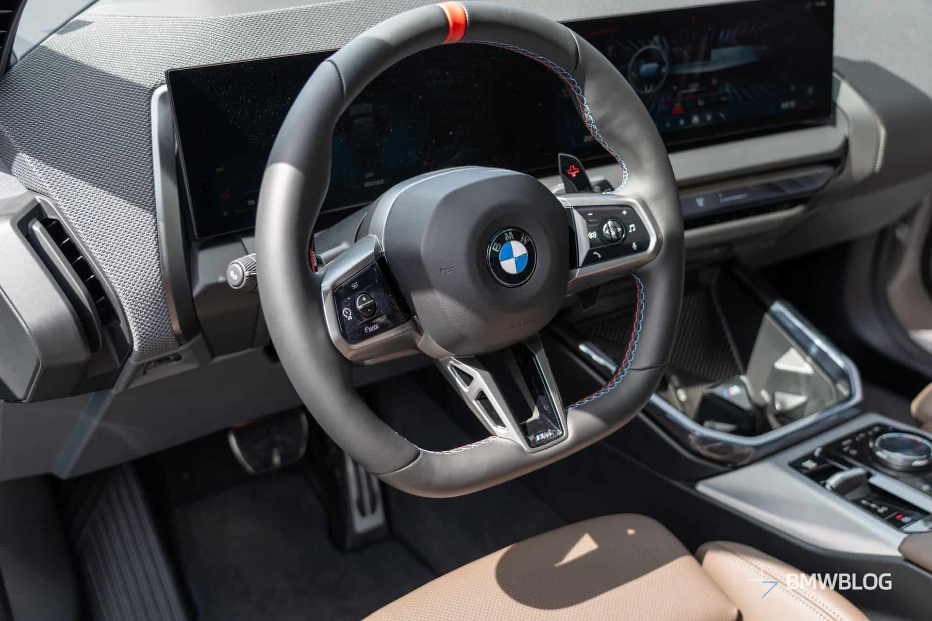 We couldn’t miss the opportunity to hop inside the new M Performance X3 and take a few shots. Complimenting the Dune Grey paint we mentioned is the Espresso Brown upholstery. Mind you, it’s not real leather. BMW calls it Veganza, which is marketing jargon for vegan leather. Unlike all the other models with the iDrive 9 infotainment, you still get the rotary knob inside. Praise be!