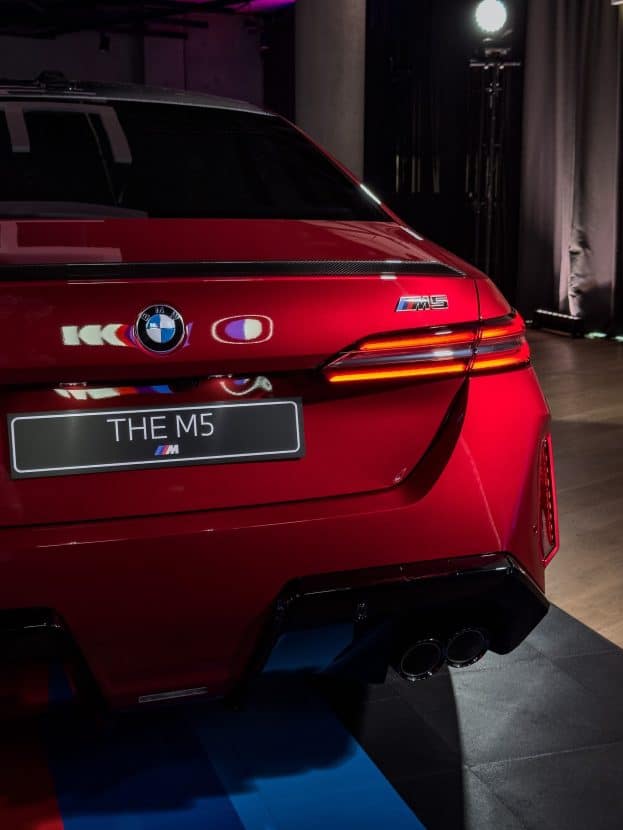 If you’re like us, you can’t get enough of the new M5. Thankfully, we’re here to deliver the goods by sharing fresh imagery of the long-awaited G90. BMW’s latest super sedan poses for the camera in Fire Red, an eye-catching color known as Vegas Red in the United States. This particular car is also a good opportunity to see the AMG E63 rival with two-tone wheels instead of the usual all-black alloys.