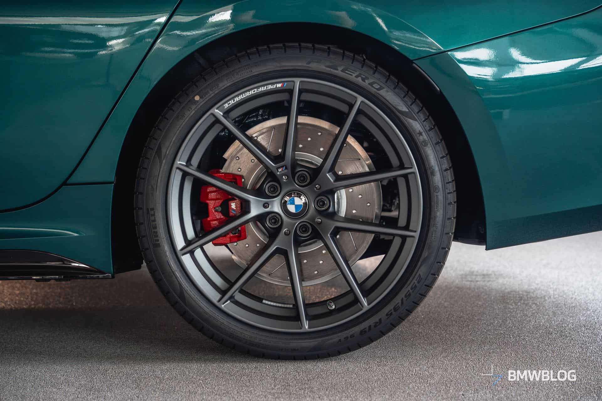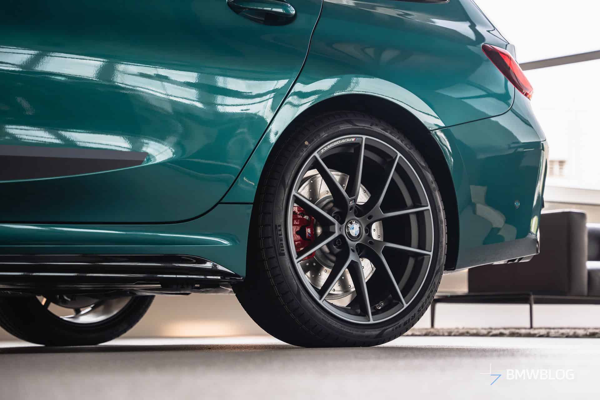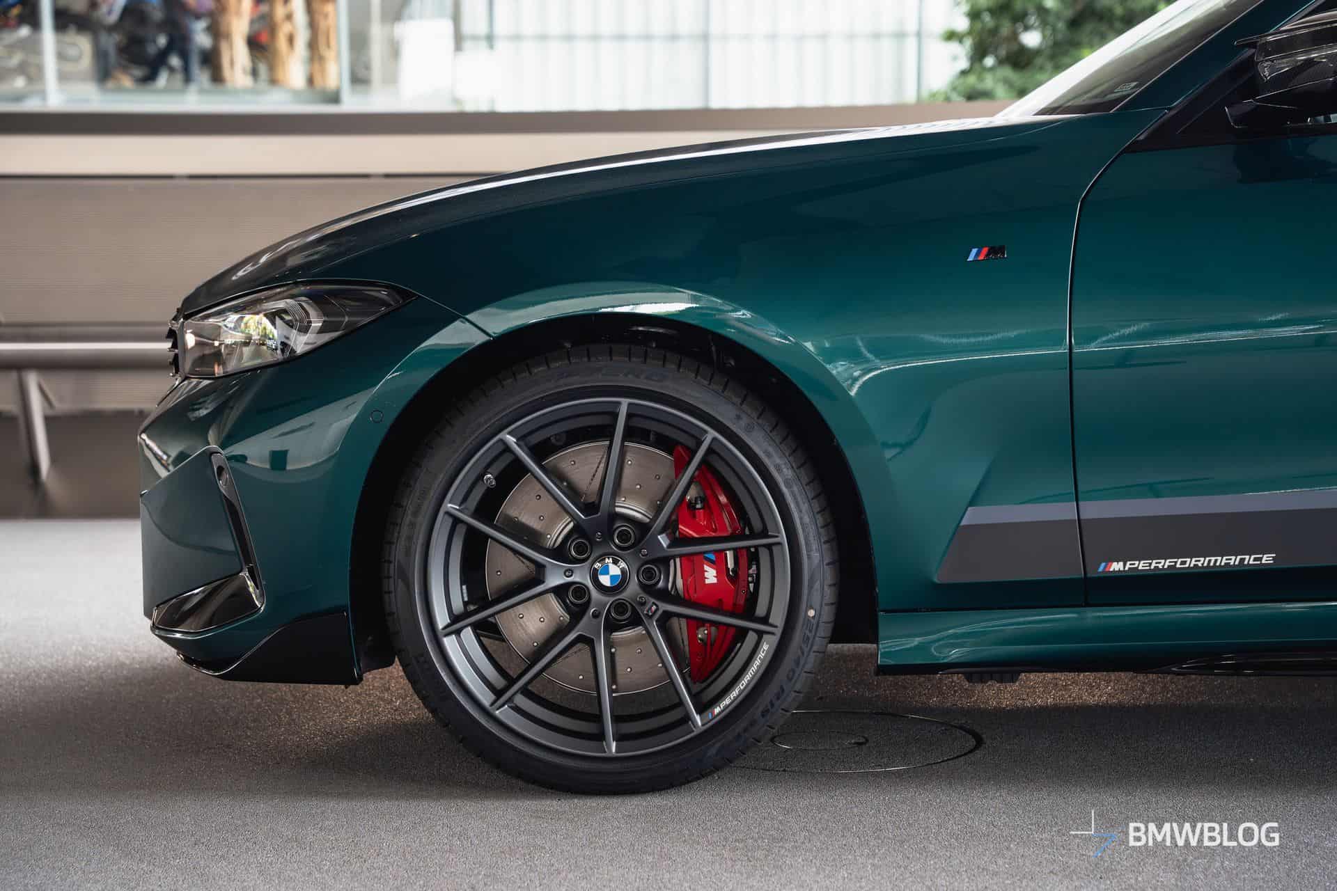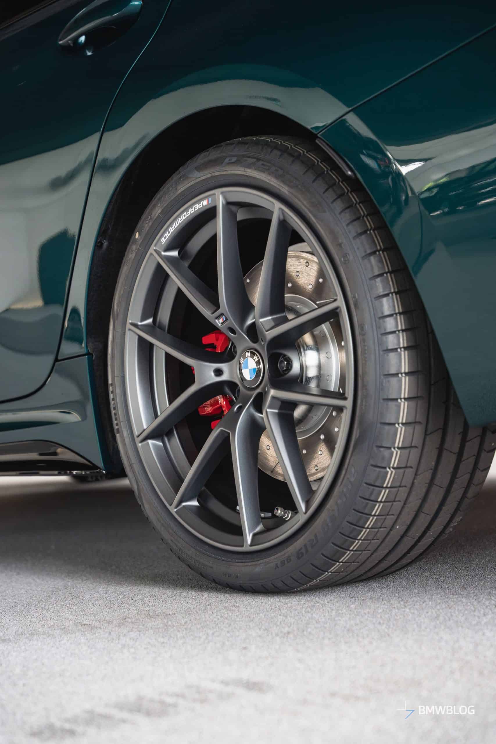 We spotted the desirable wagon in Munich at the BMW Welt. It has a discreet body kit with a carbon fiber kidney grille and a not-so-subtle red tow strap with M branding. At the rear, it flaunts a blacked-out M340i badge and a carbon diffuser with three vertical fins. The body decals are not the only change noticeable on the sides since the 19-inch wheels are also an upgrade from the M Performance Parts catalog.