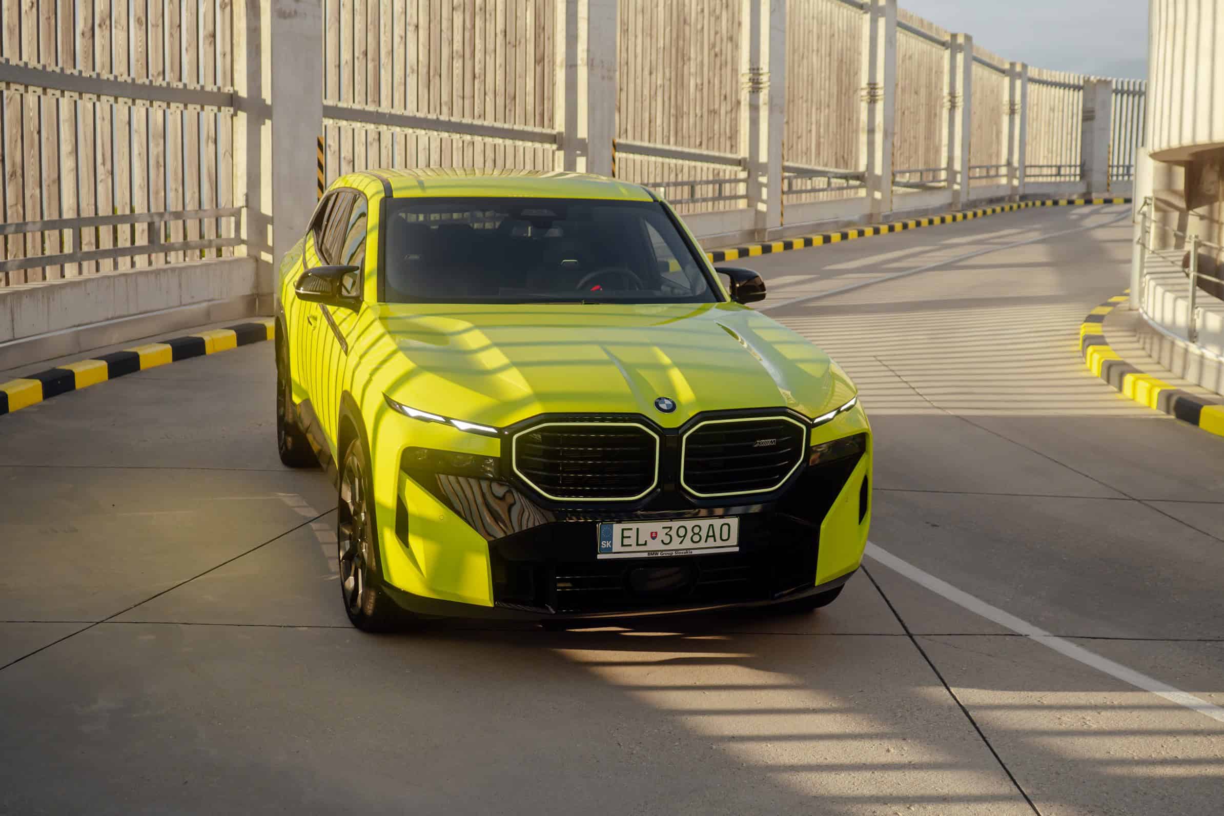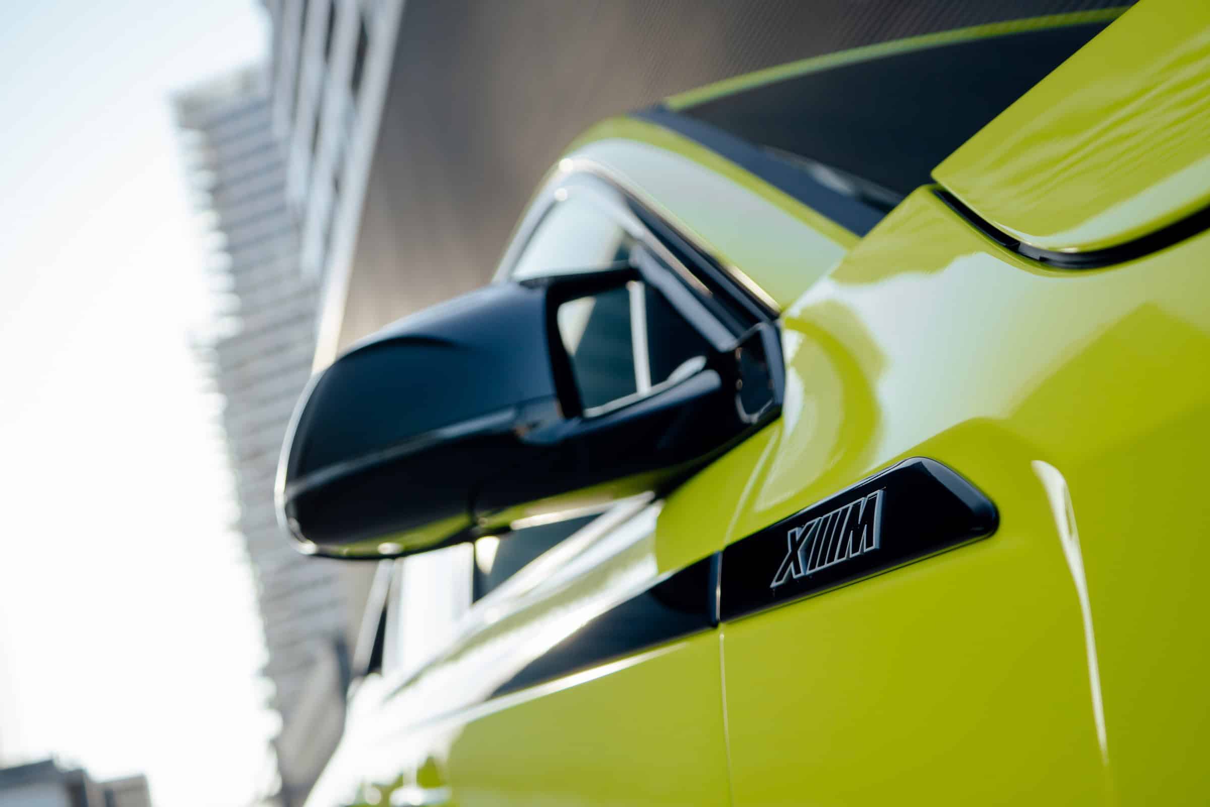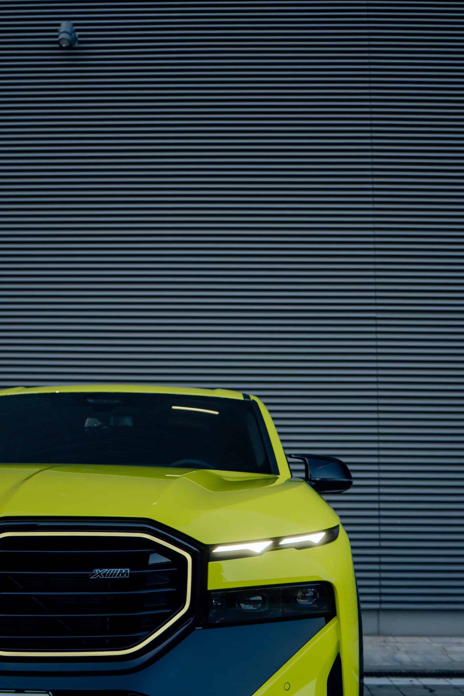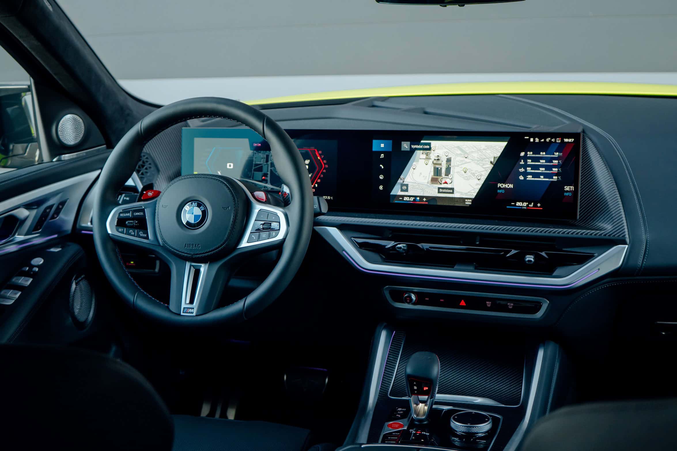 Finished in Sao Paulo Yellow, the XM 50e rides on 23-inch wheels – the largest alloys ever offered from the factory by BMW. The interior is just as striking since the dedicated M model has blue Merino leather with Deep Lagoon upholstery. Unlike the new M5 with its small gear selector, the mechanically related electrified SUV has the old bulky transmission lever.