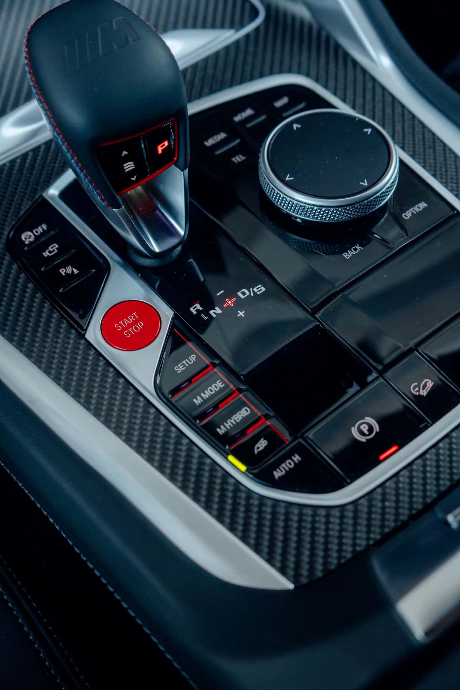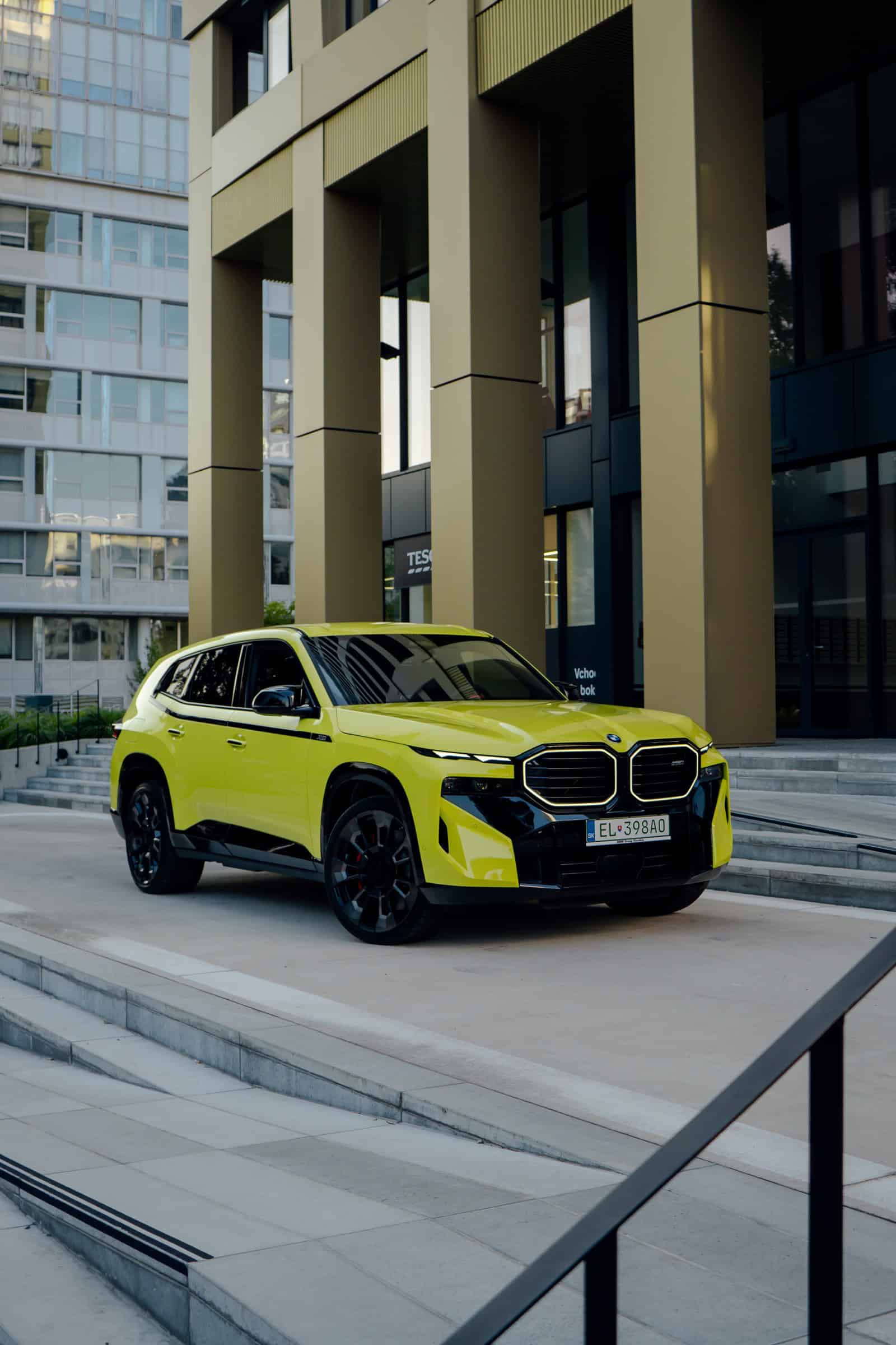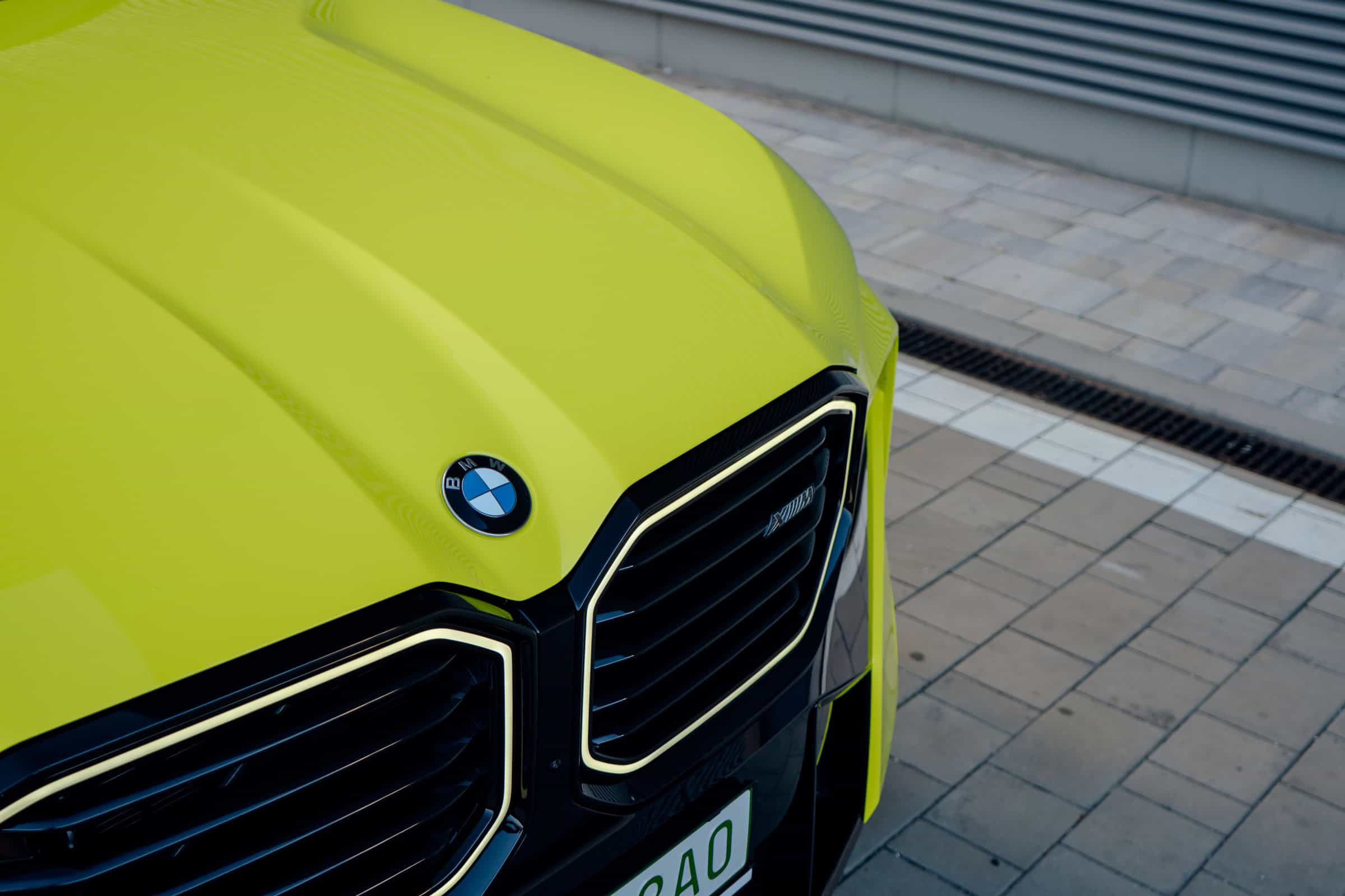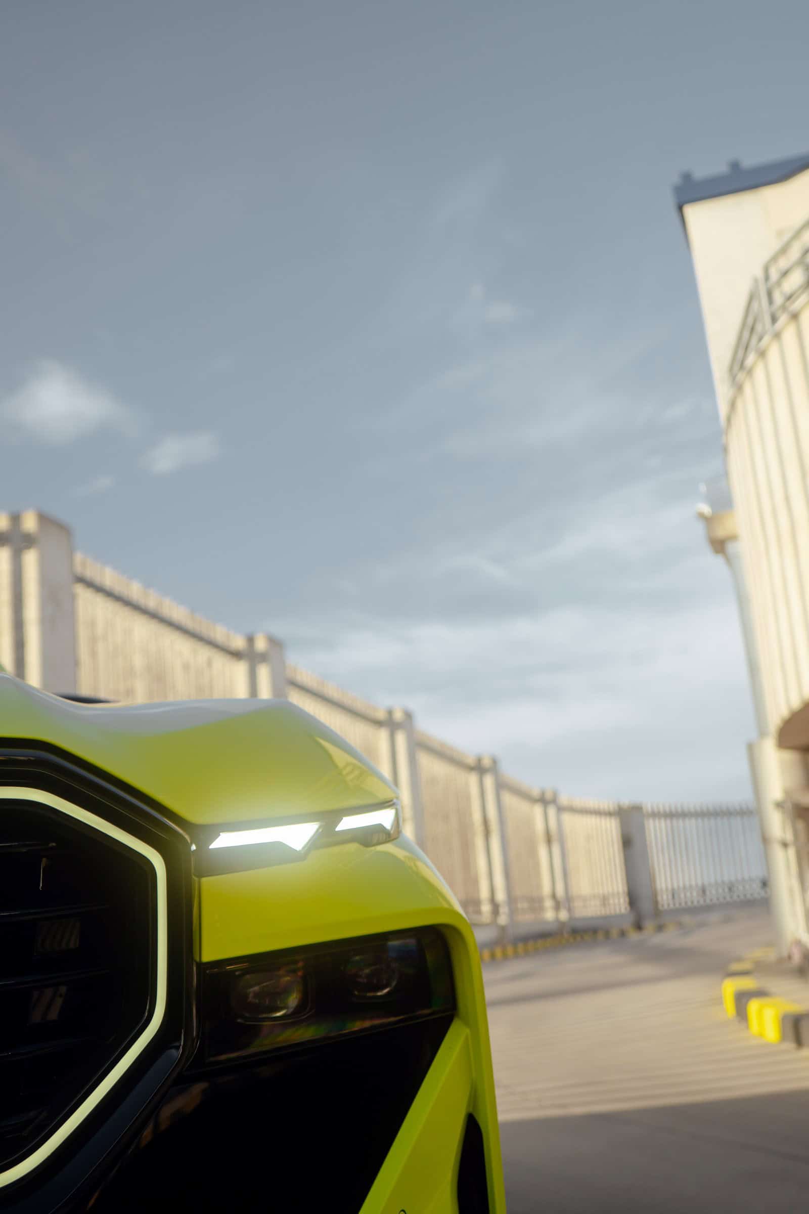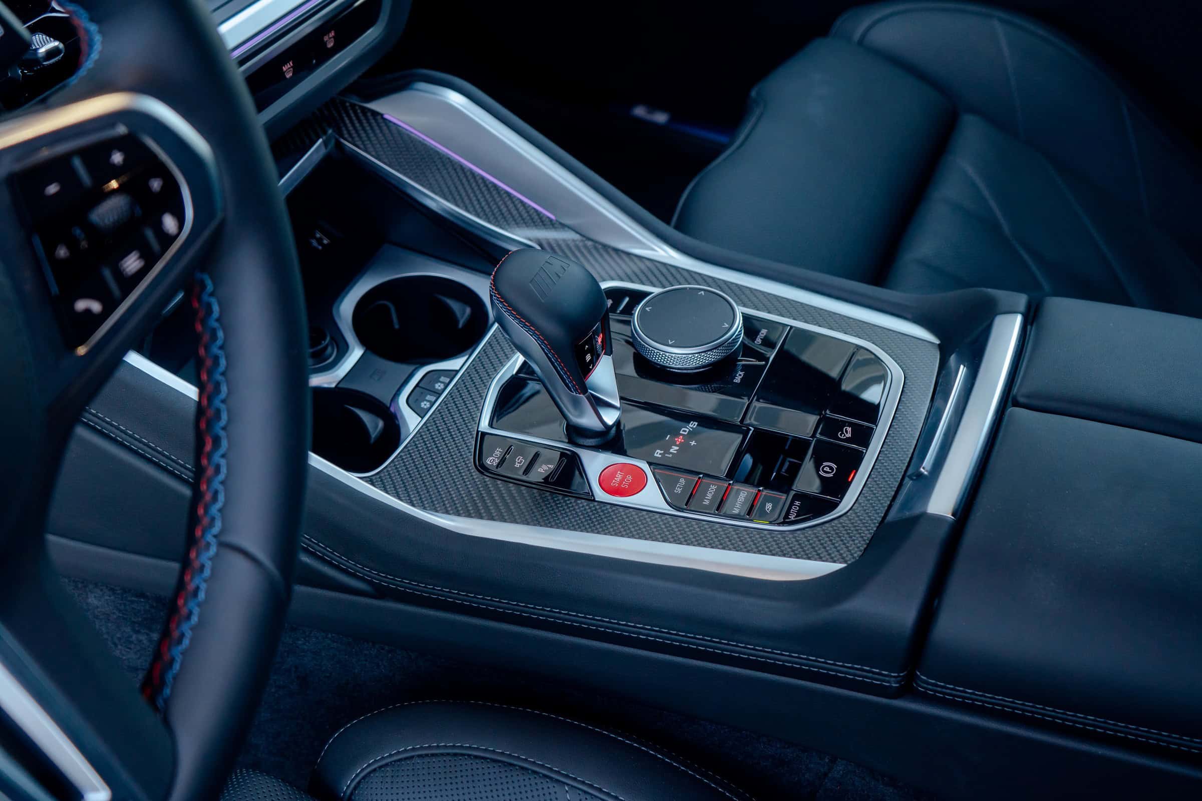 Finished in Sao Paulo Yellow, the XM 50e rides on 23-inch wheels – the largest alloys ever offered from the factory by BMW. The interior is just as striking since the dedicated M model has blue Merino leather with Deep Lagoon upholstery. Unlike the new M5 with its small gear selector, the mechanically related electrified SUV has the old bulky transmission lever.