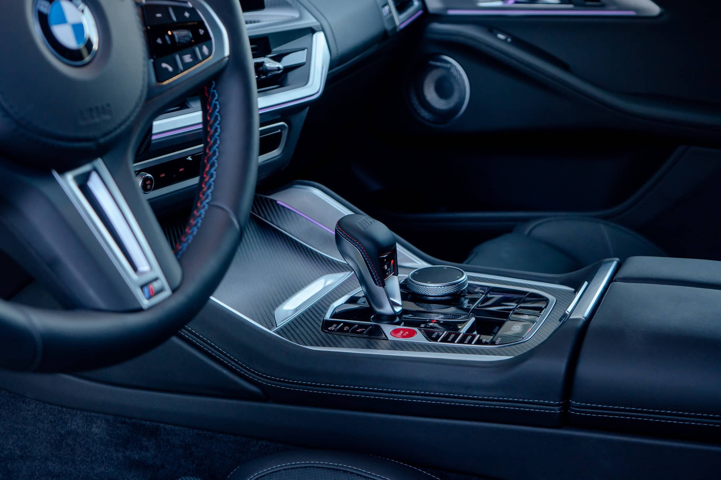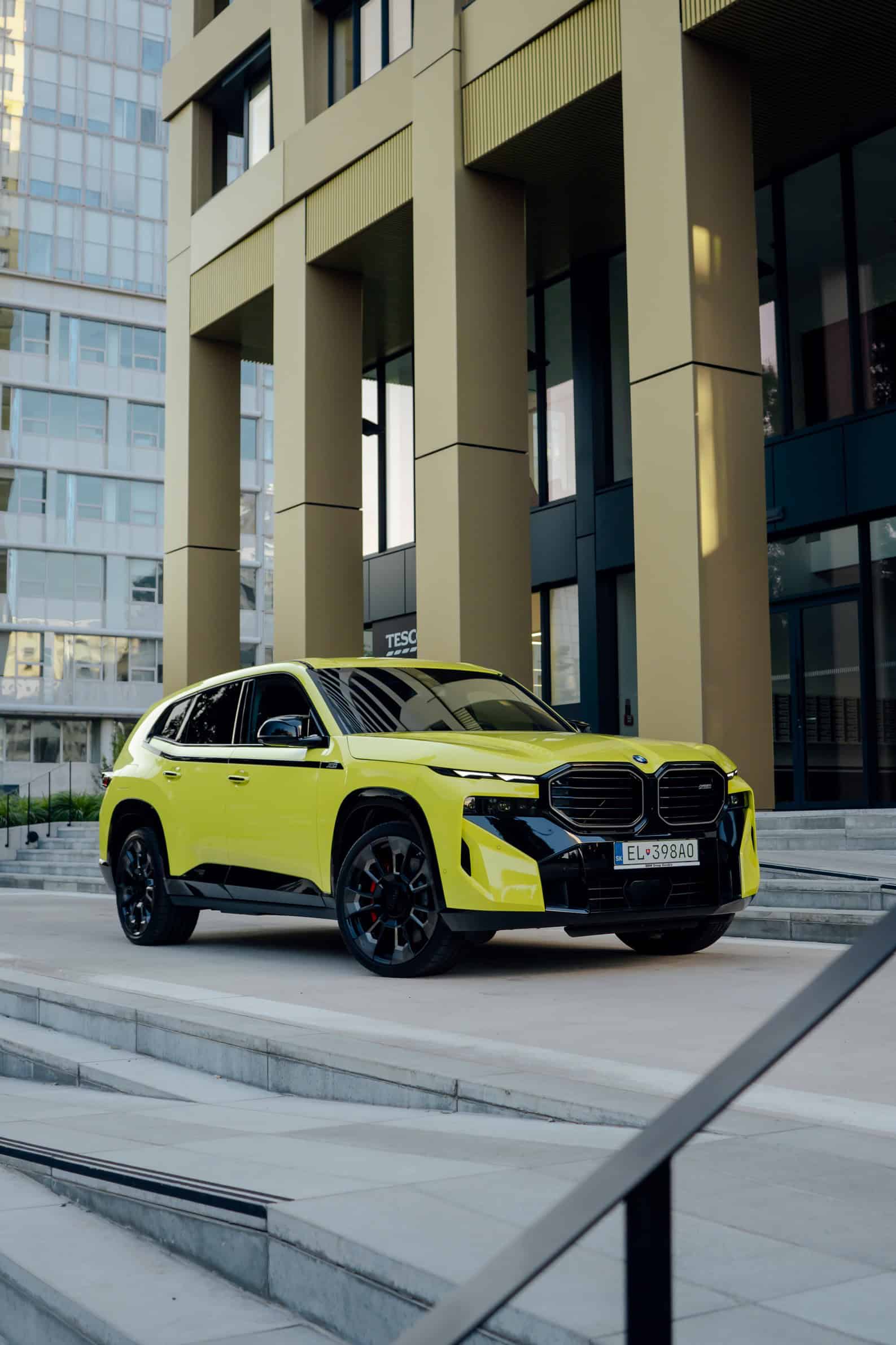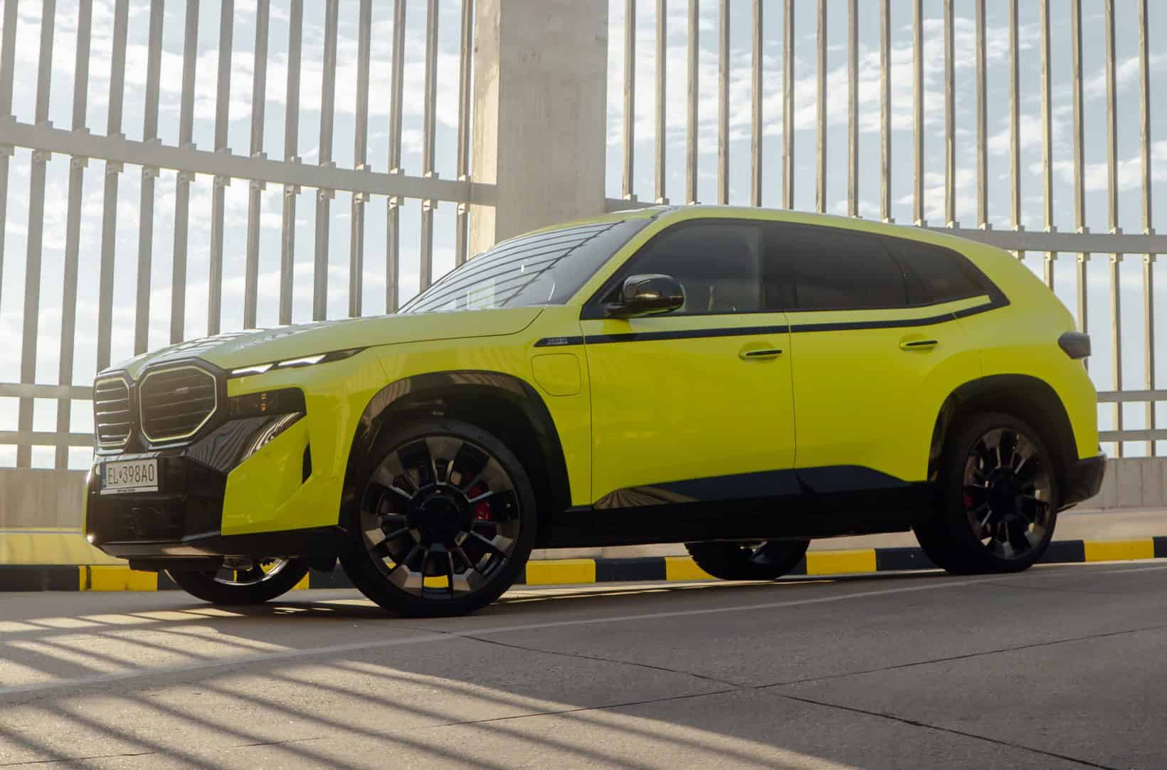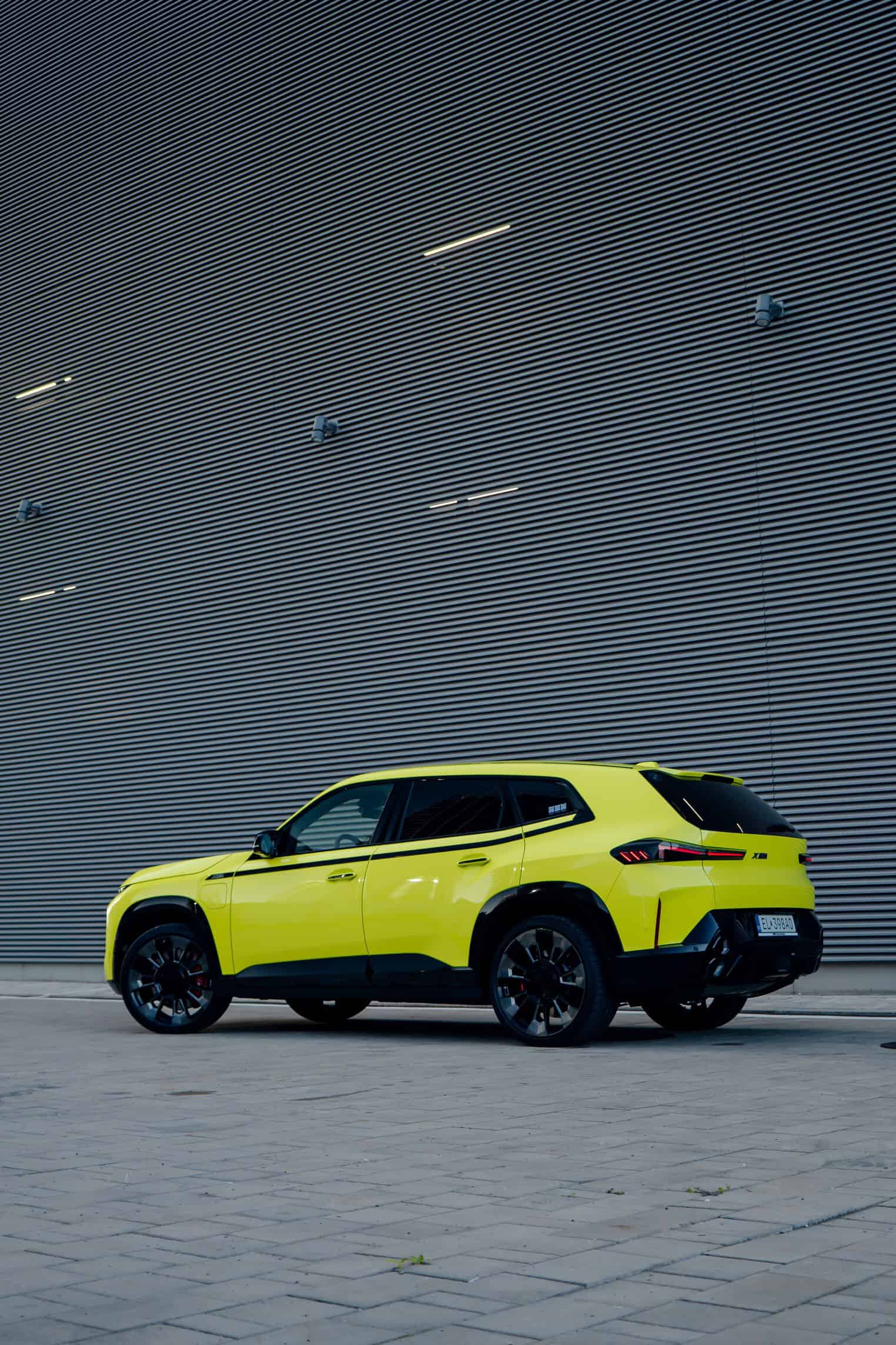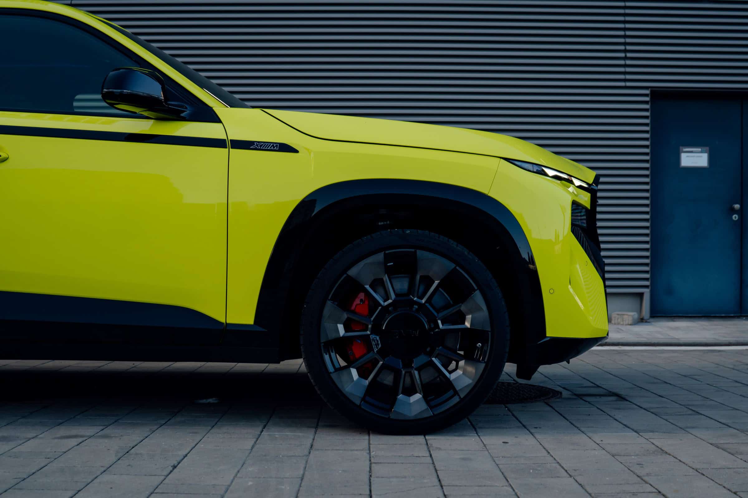 Finished in Sao Paulo Yellow, the XM 50e rides on 23-inch wheels – the largest alloys ever offered from the factory by BMW. The interior is just as striking since the dedicated M model has blue Merino leather with Deep Lagoon upholstery. Unlike the new M5 with its small gear selector, the mechanically related electrified SUV has the old bulky transmission lever.