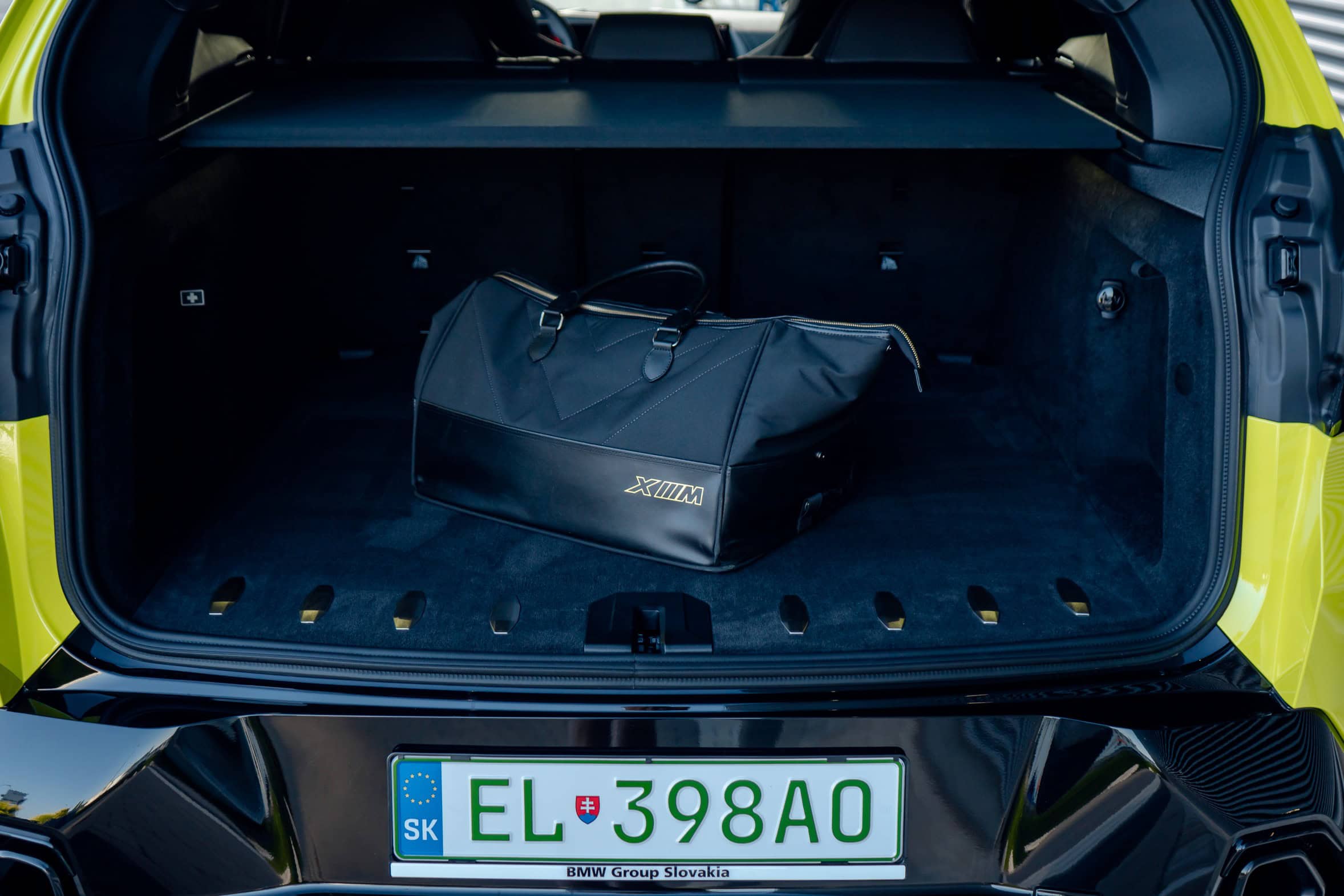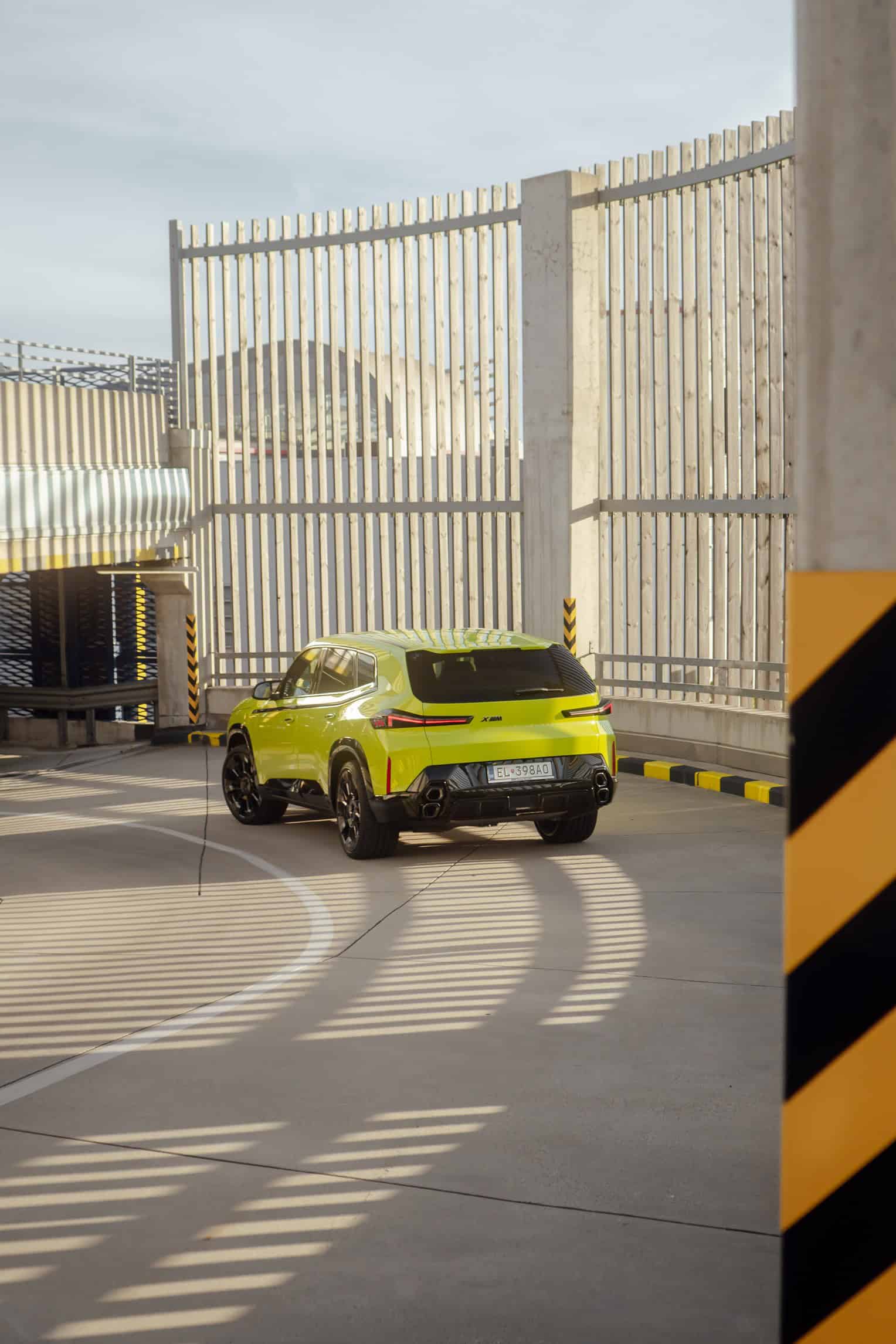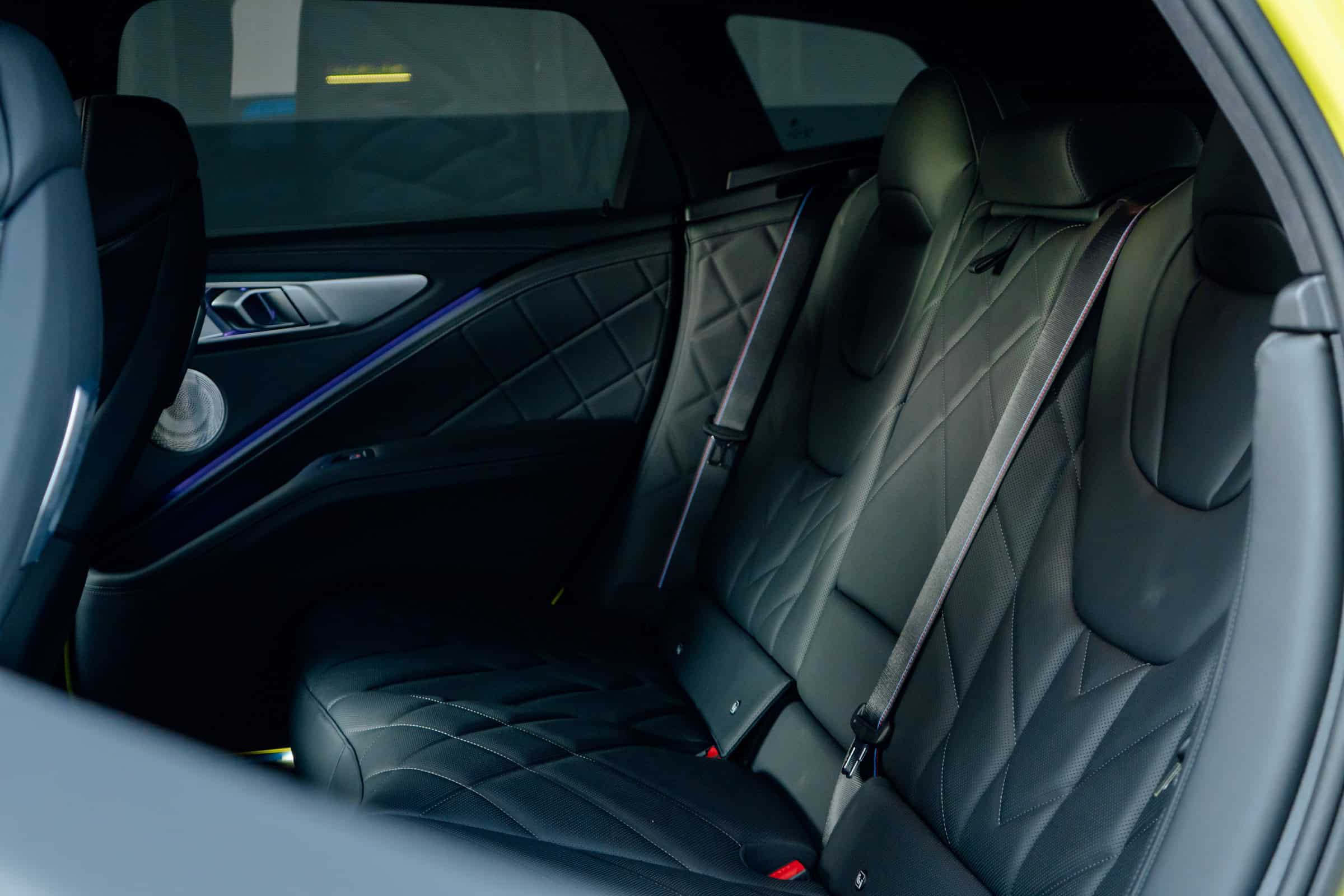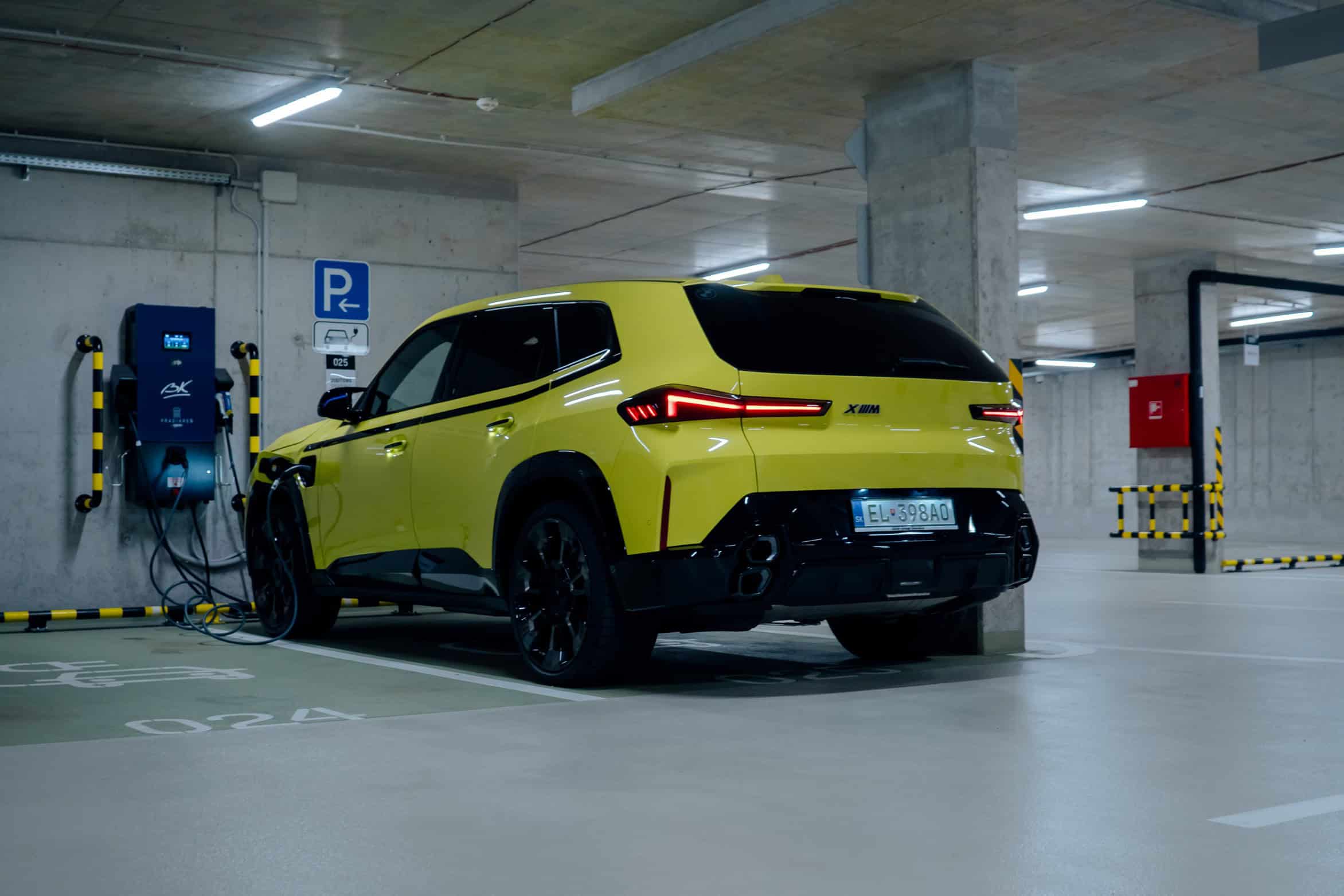 Finished in Sao Paulo Yellow, the XM 50e rides on 23-inch wheels – the largest alloys ever offered from the factory by BMW. The interior is just as striking since the dedicated M model has blue Merino leather with Deep Lagoon upholstery. Unlike the new M5 with its small gear selector, the mechanically related electrified SUV has the old bulky transmission lever.