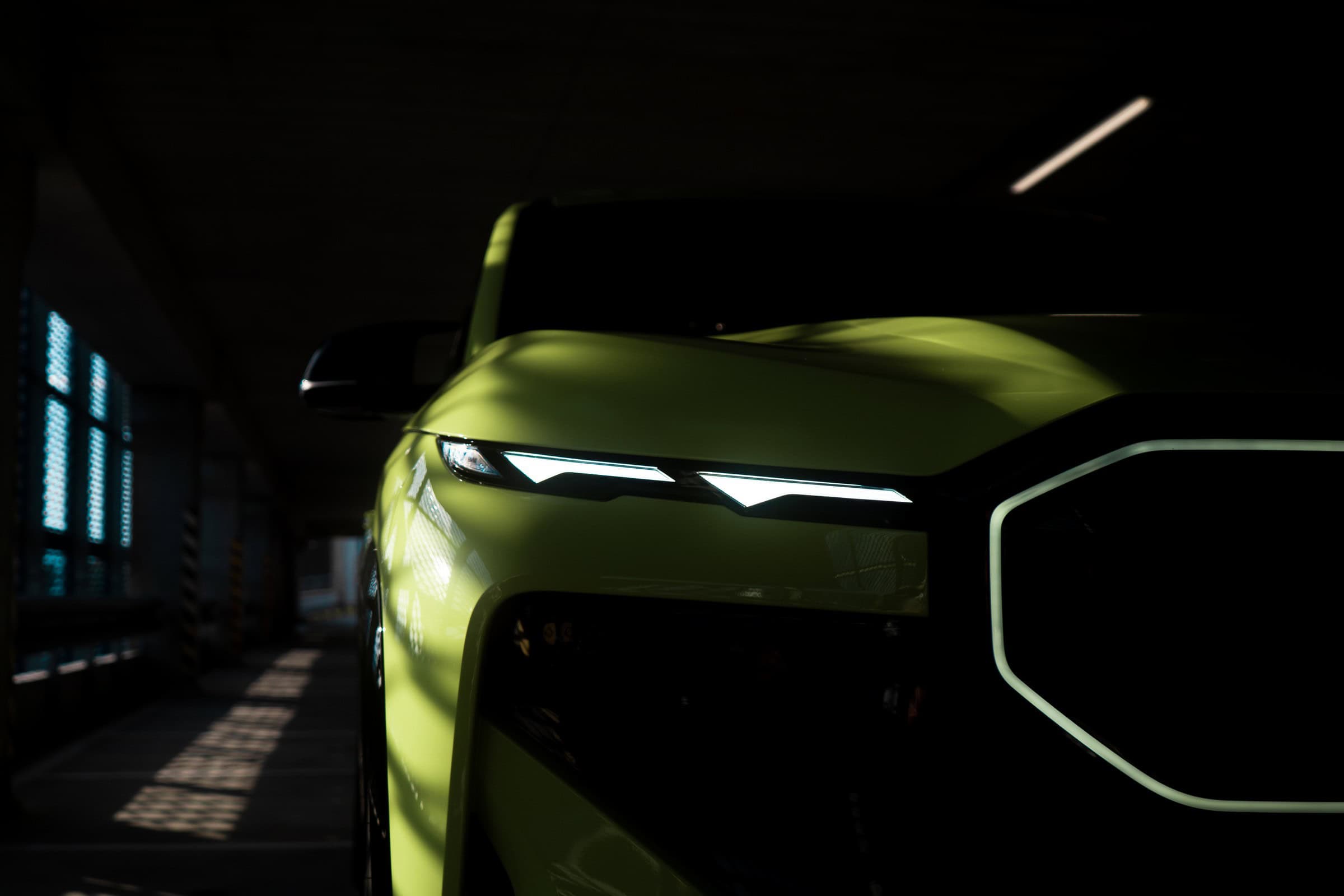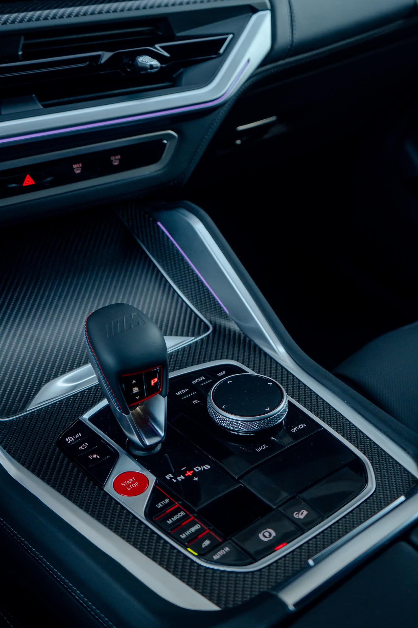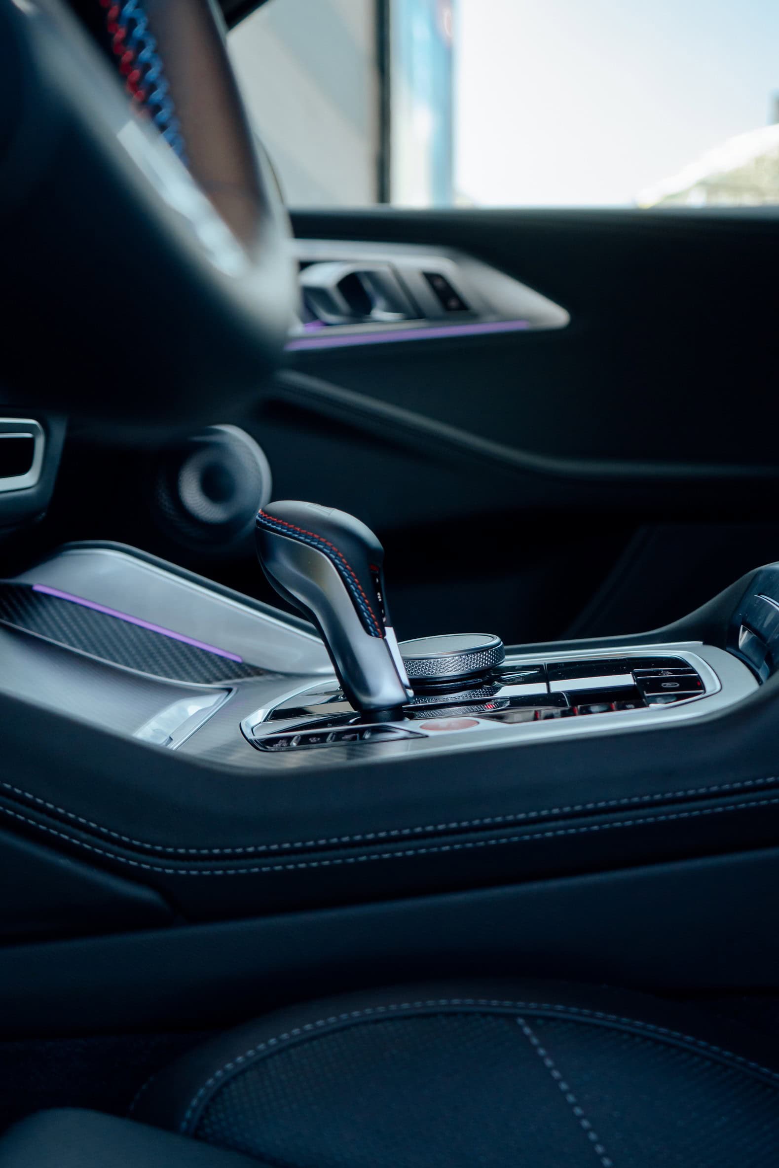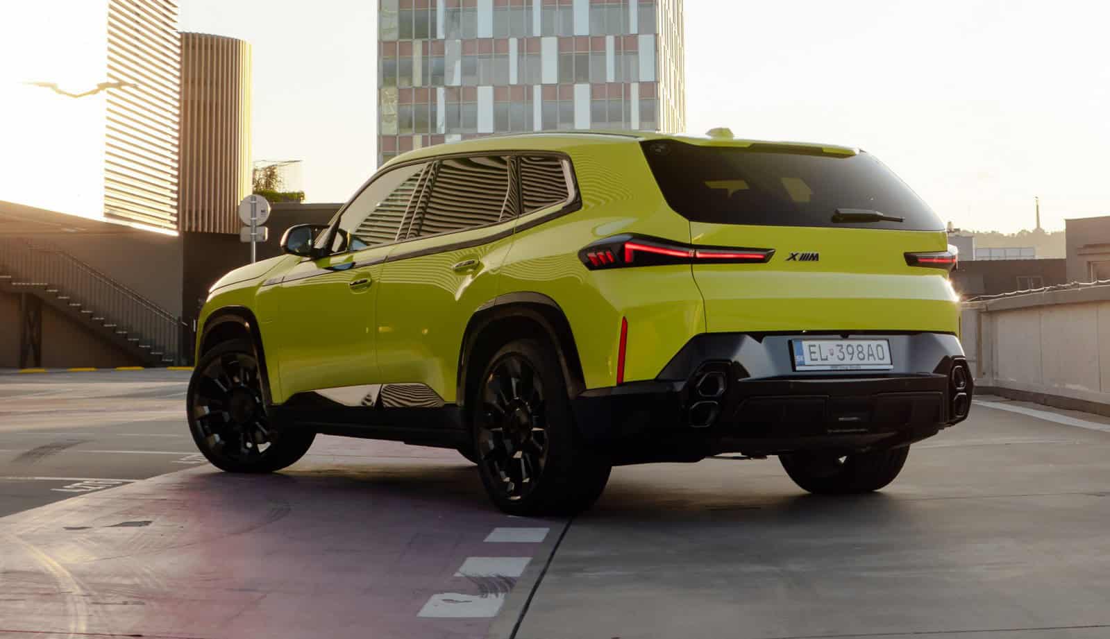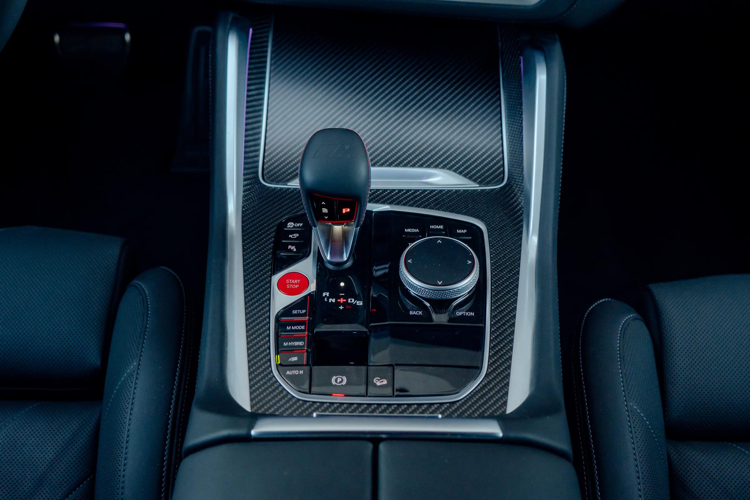 Finished in Sao Paulo Yellow, the XM 50e rides on 23-inch wheels – the largest alloys ever offered from the factory by BMW. The interior is just as striking since the dedicated M model has blue Merino leather with Deep Lagoon upholstery. Unlike the new M5 with its small gear selector, the mechanically related electrified SUV has the old bulky transmission lever.