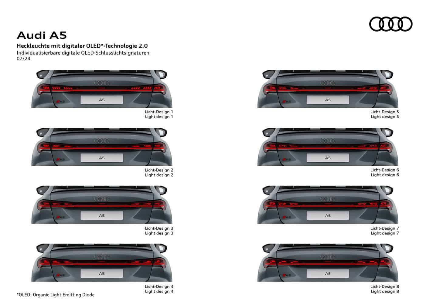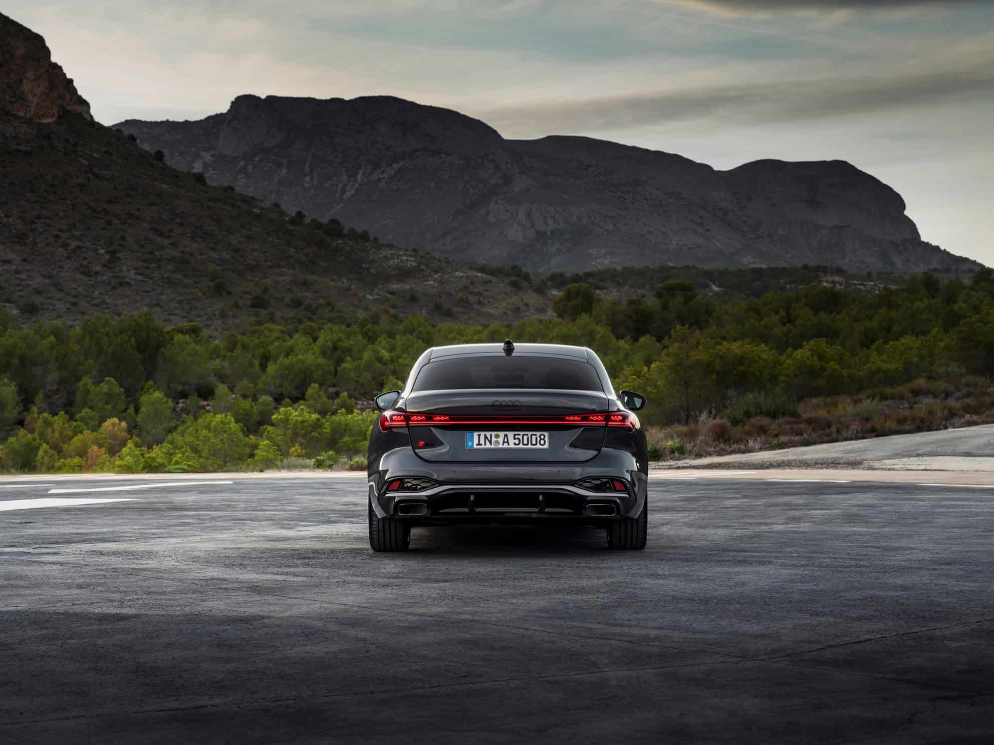 With slim headlights and configurable OLED taillights, the new Audi A5 looks modern and sleek. For the new generation, Audi has opted for a flatter and wider iteration of its singleframe grille. The rear light bar has eight patterns to choose from, while wheel sizes vary from 17 to 20 inches. Thankfully, the dread fake exhaust tips of the old car are dead.